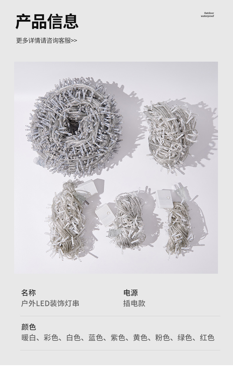 10.1m модель с подключаемым светом без хвостовой заглушки; 10.1m модель светового плагина с хвостовой заглушкой; 20.2m модель с подключаемым светом без хвостовой заглушки; 20.2m модель светового плагина с хвостовой заглушкой; 30.3m модель с подключаемым светом без хвостовой заглушки; 30.3m модель светового плагина с хвостовой заглушкой; 50.4m модель с подключаемым светом без хвостовой заглушки; 50.4m Лампа «папа» и «мама» — можно подключить последовательно 600m; 100.1m модель с подключаемым светом без хвостовой заглушки