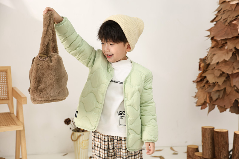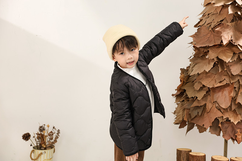 Утепленная легкая детская куртка из нового национального стандарта 90/10 с наполнителем из белого утиного пуха для ношения под одеждой, подходит для детей маленького, среднего и большого размера.