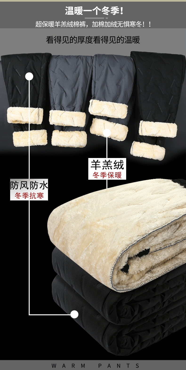 Трансграничные зимние хлопчатобумажные плюшевые ветрозащитные теплые повседневные свободные брюки кашемир трехслойные композитные хлопчатобумажные брюки мужчины