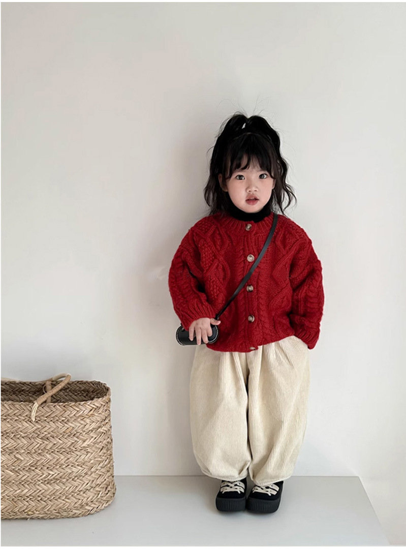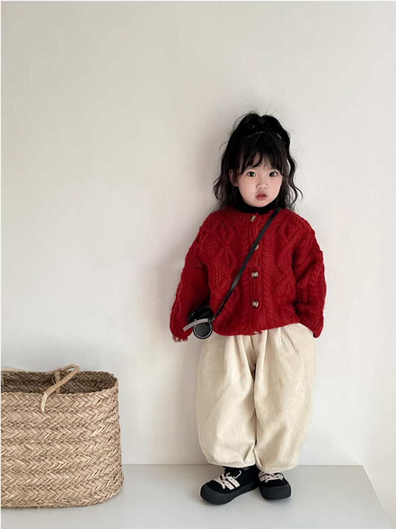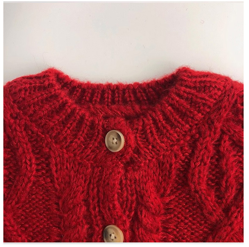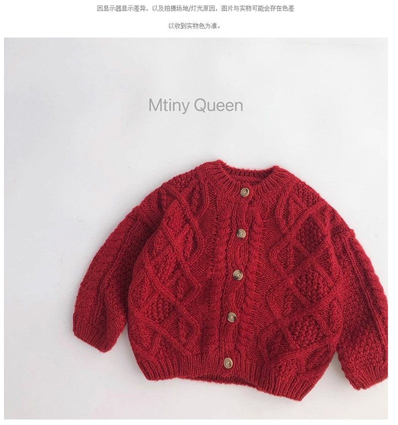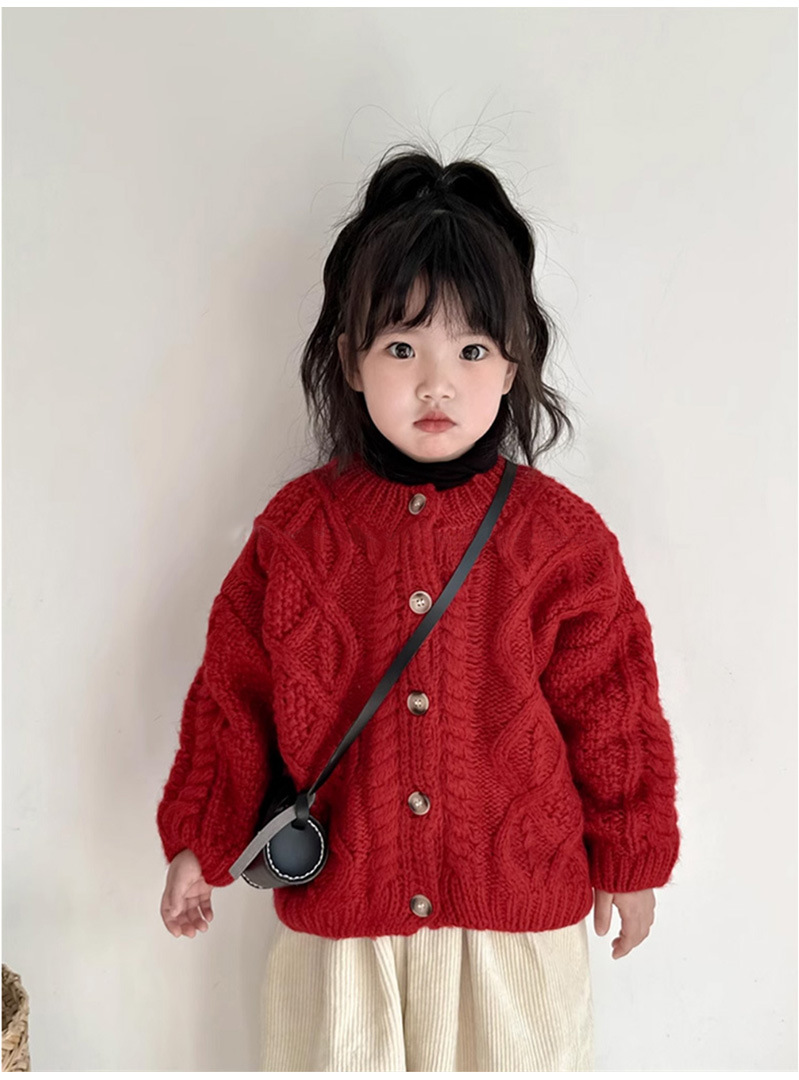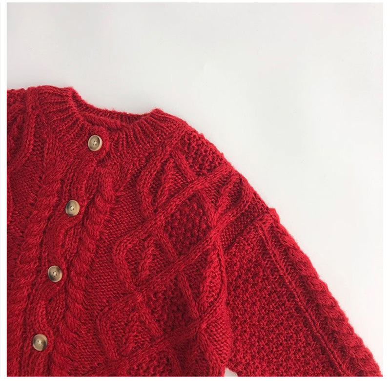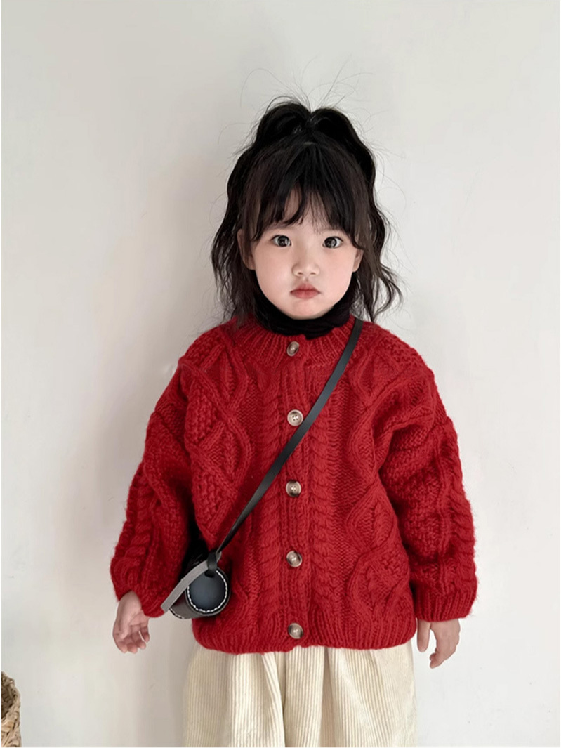 Новогодняя одежда, верхняя одежда для девочек, осенние и зимние детские красные праздничные трикотажные изделия, стильные кардиганы с воротником-стойкой для мальчиков.