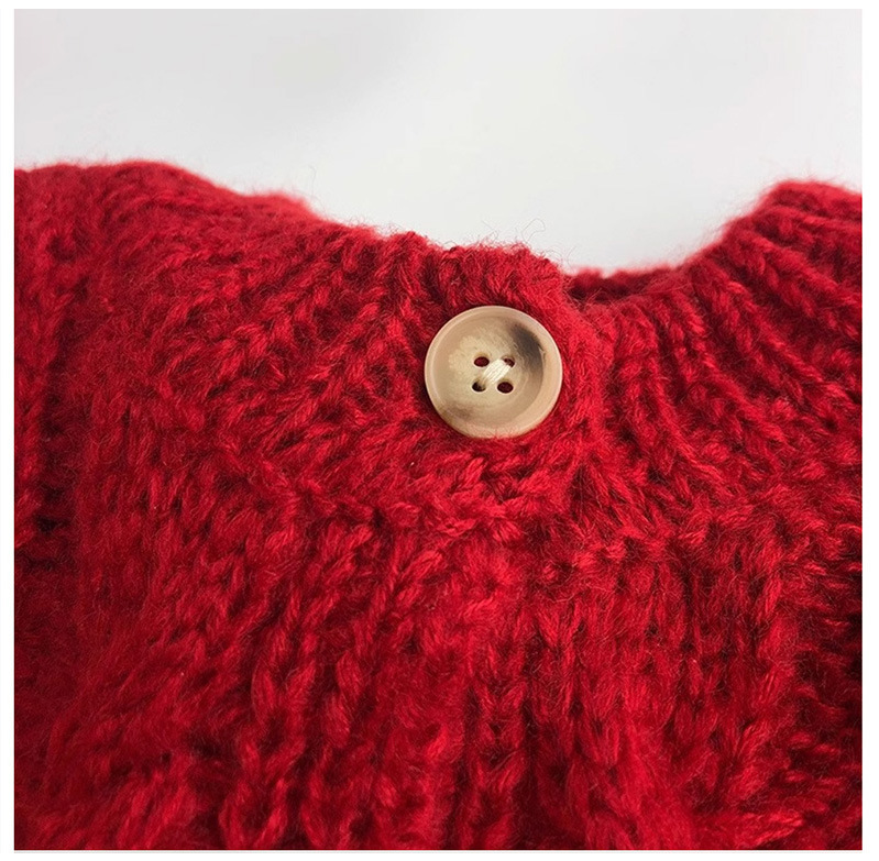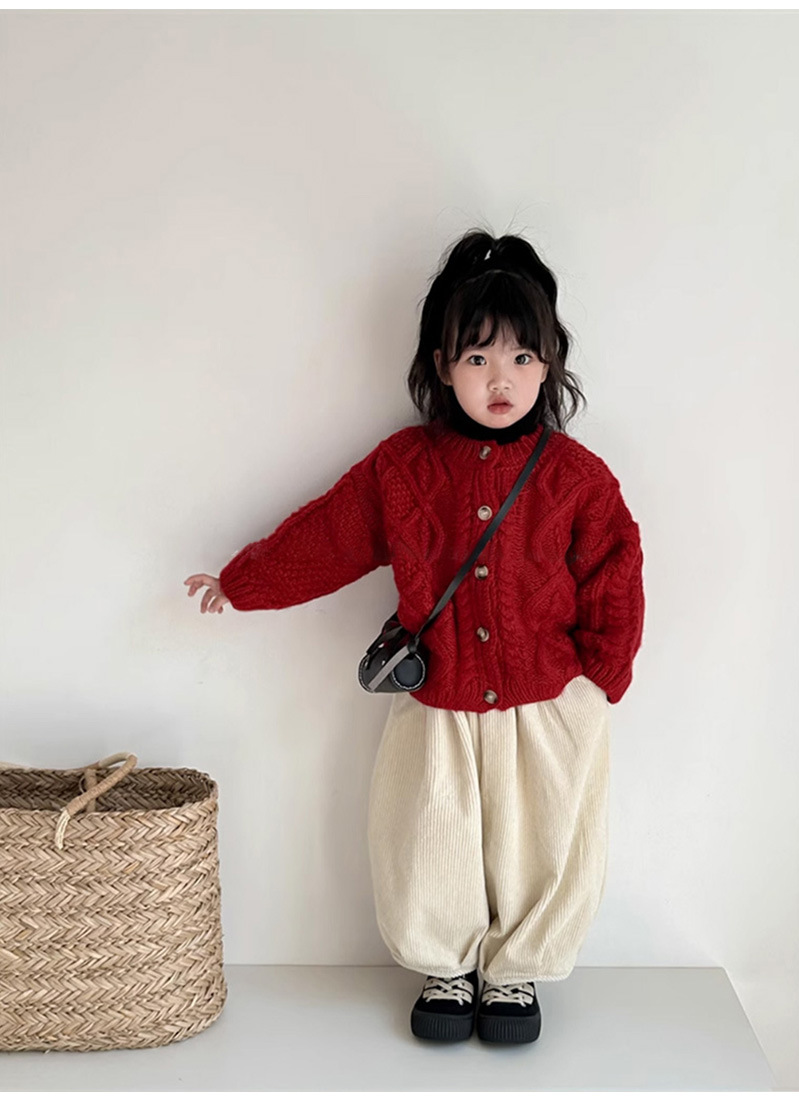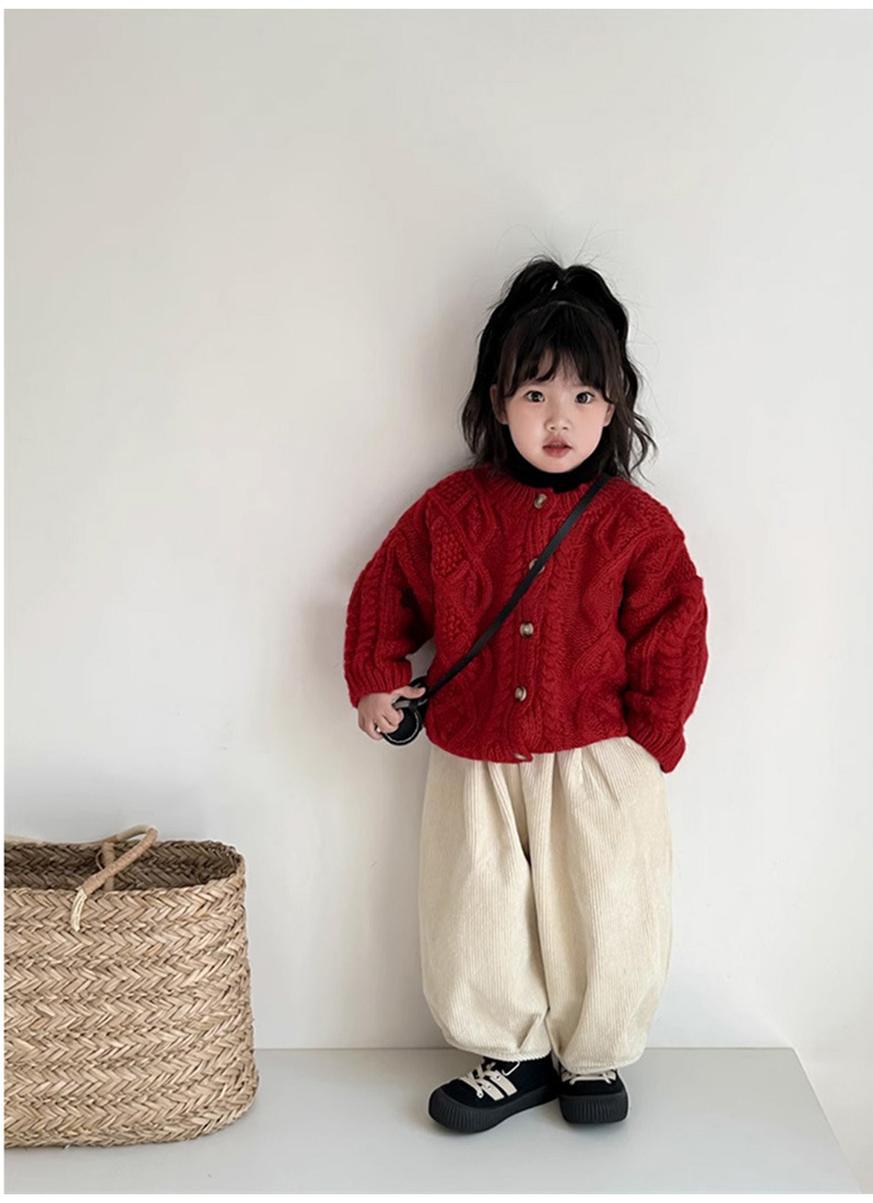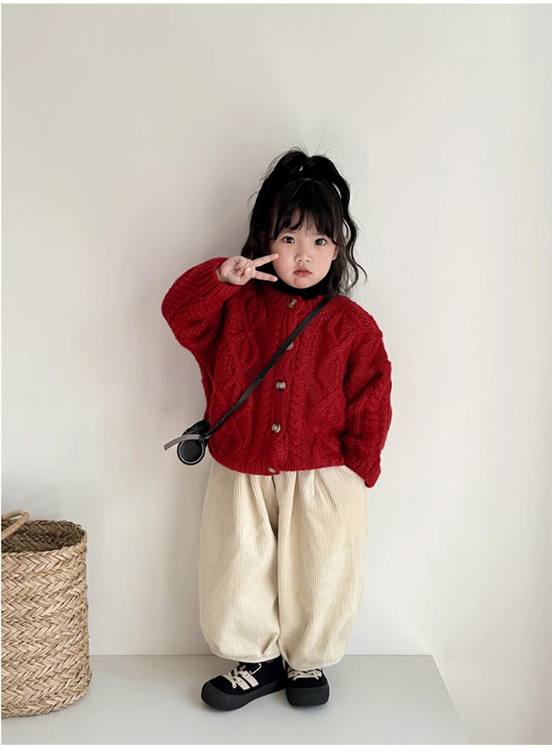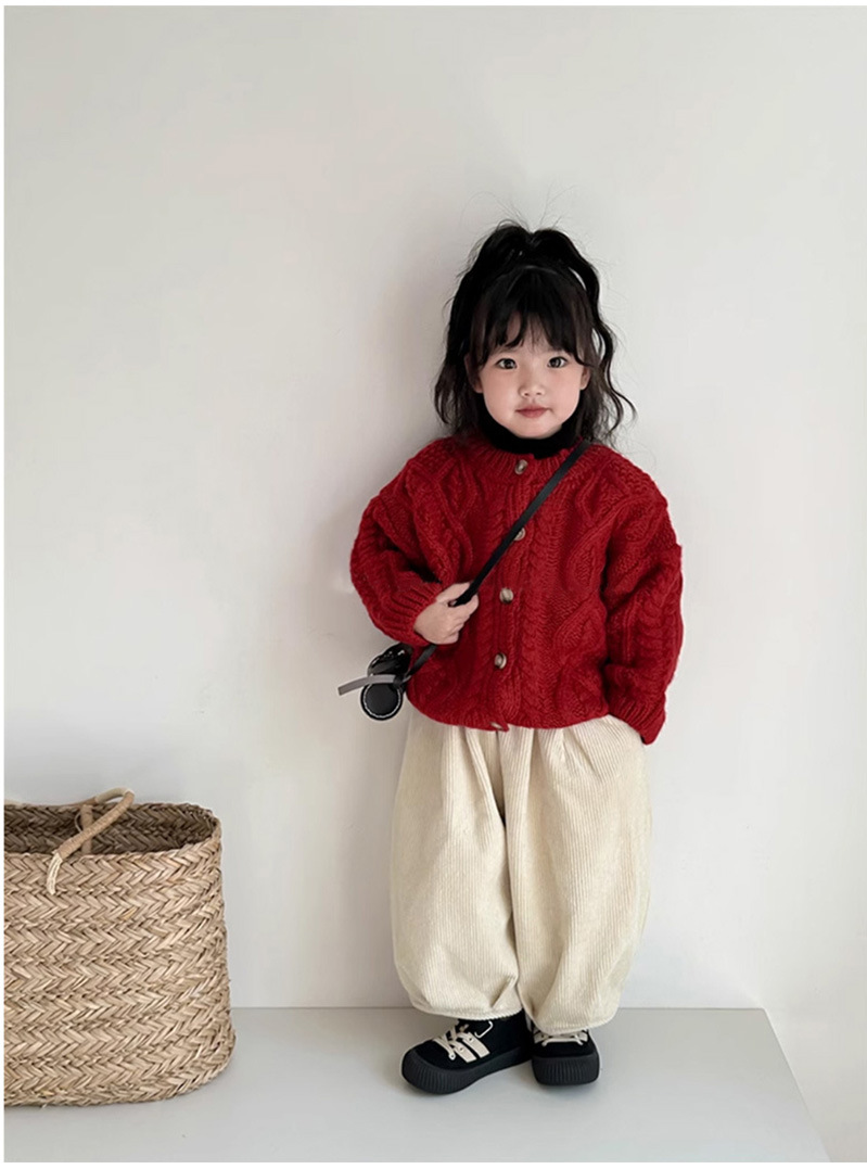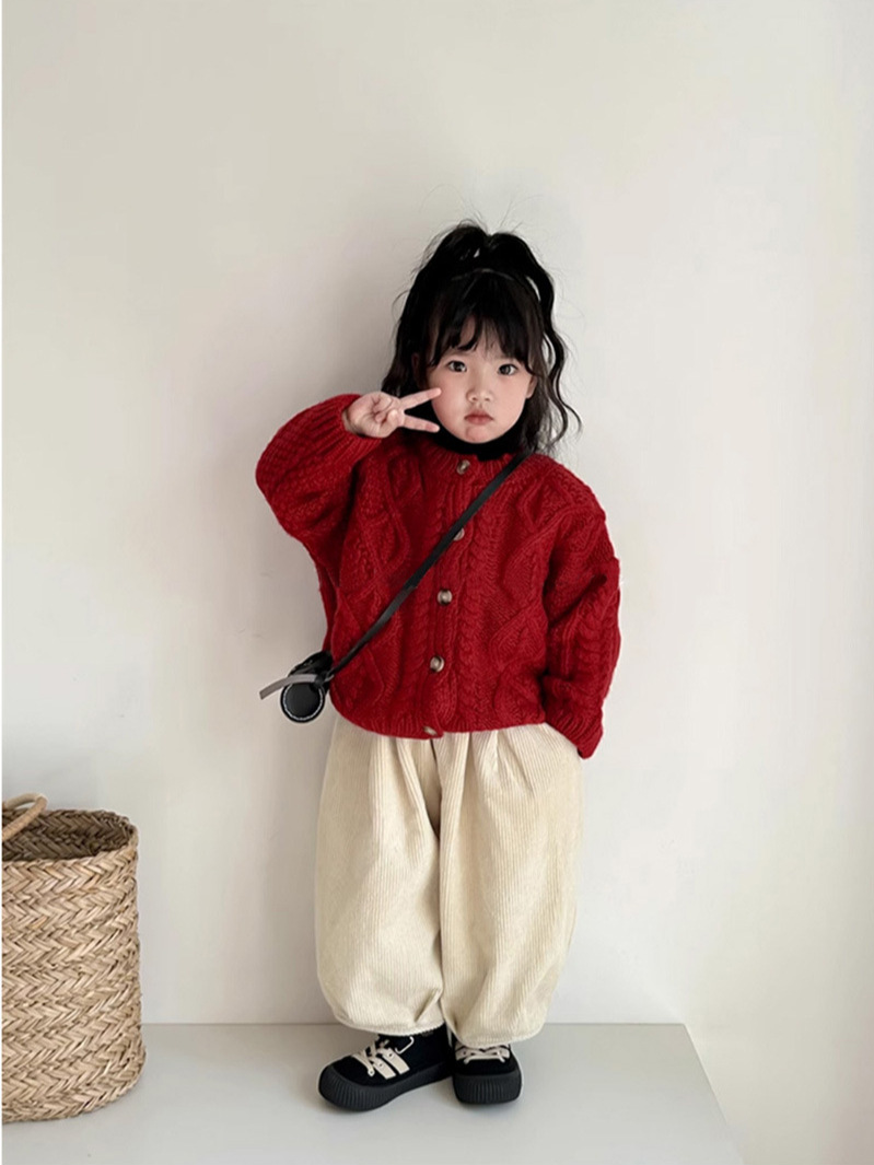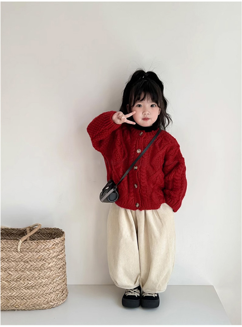 Новогодняя одежда, верхняя одежда для девочек, осенние и зимние детские красные праздничные трикотажные изделия, стильные кардиганы с воротником-стойкой для мальчиков.