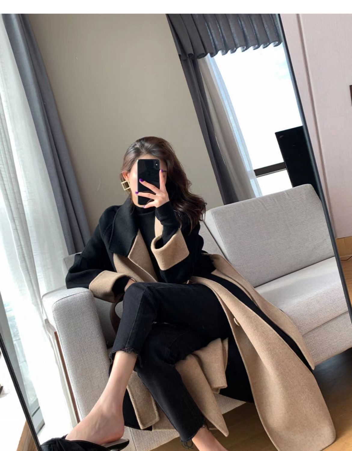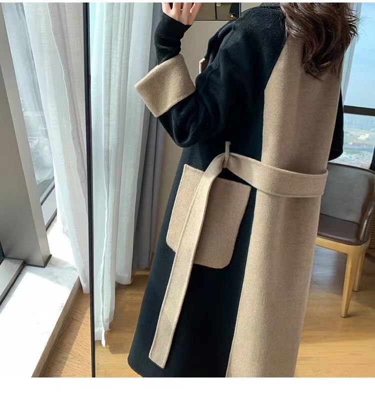 Шерстяное пальто женское длинное 2024 зимнее новое двухстороннее шерстяное шерстяное цветное цветное темперамент Hепберн стиль тонкое пальто