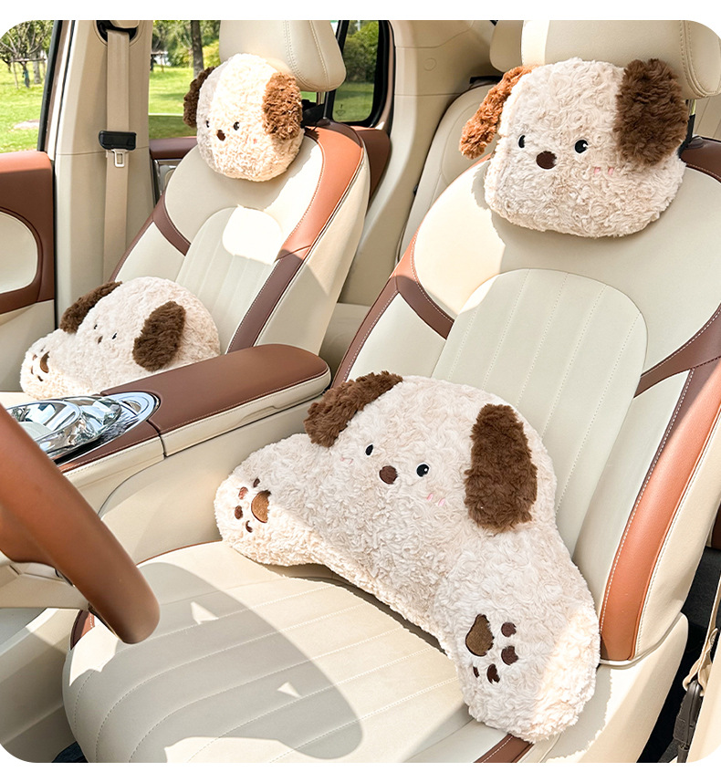 Плюшевая подушка для подголовника и поясничной поддержки в автомобиль, мультяшная удобная автомобильная подушка, подушка для шеи, милая автомобильная подушка, аксессуары для интерьера