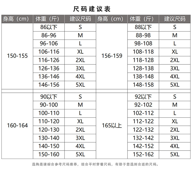 S; M; L; XL; 2XL; 3XL; 4XL; 5XL