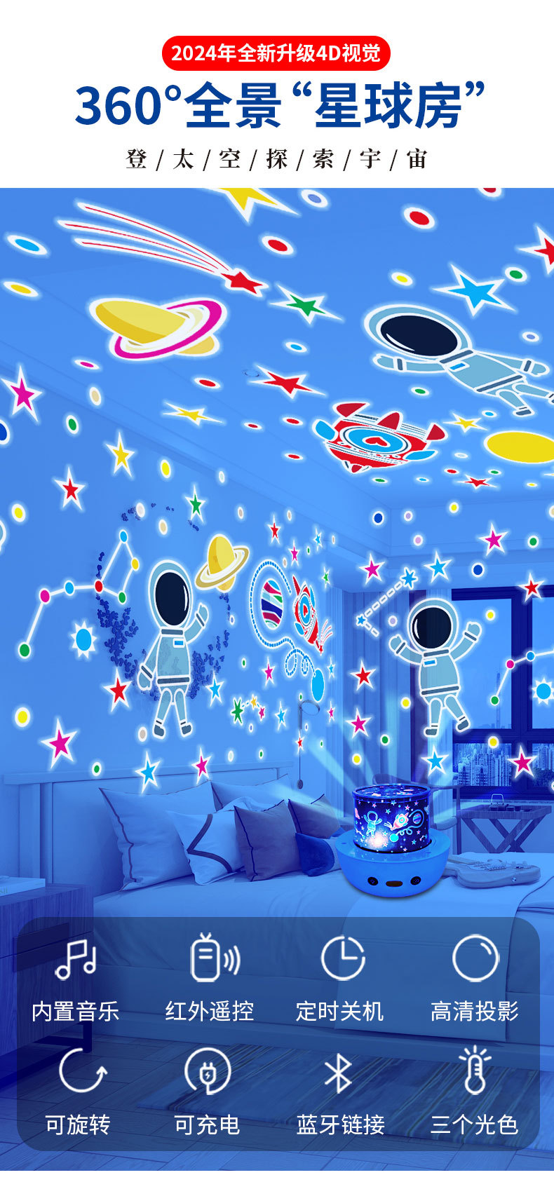 Лампа для проектора звездного неба, восемь музыки, Bluetooth, ночник, фэнтезийный подарок, вращающаяся зарядка, прикроватный светильник для спальни, Amazon