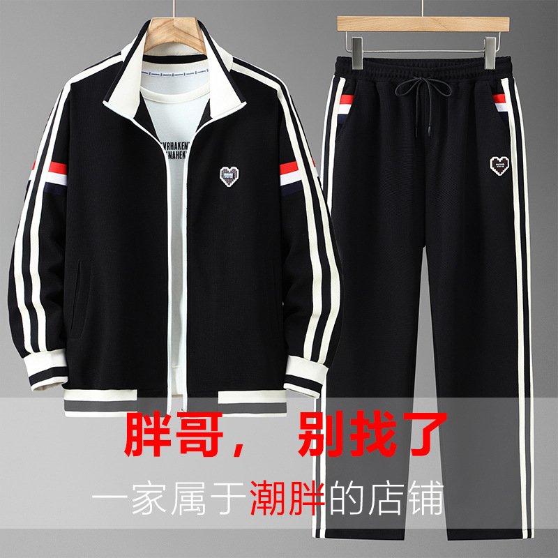 Большой размер толстый человек спортивный костюм мужской осенний ожирение мужской свиток плюс жир