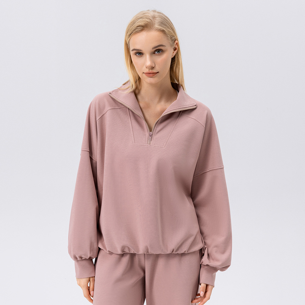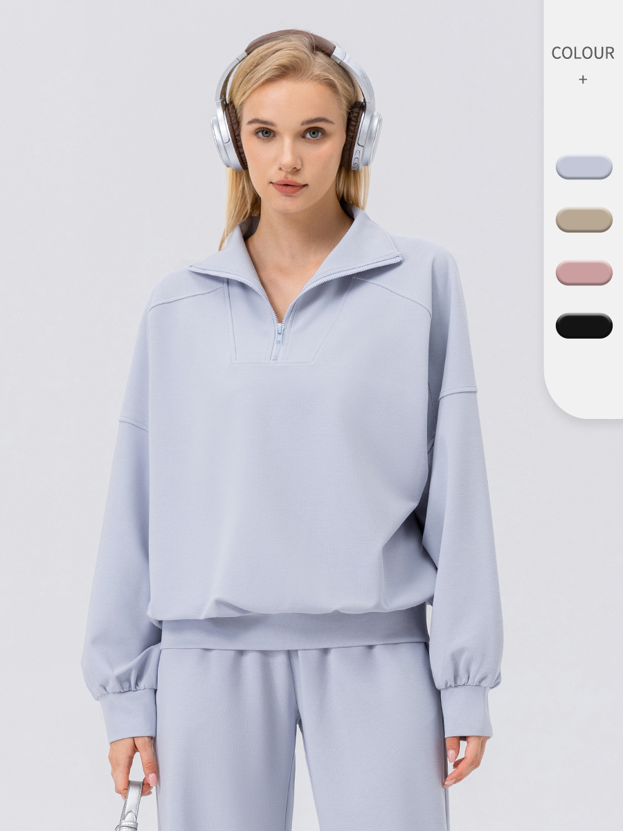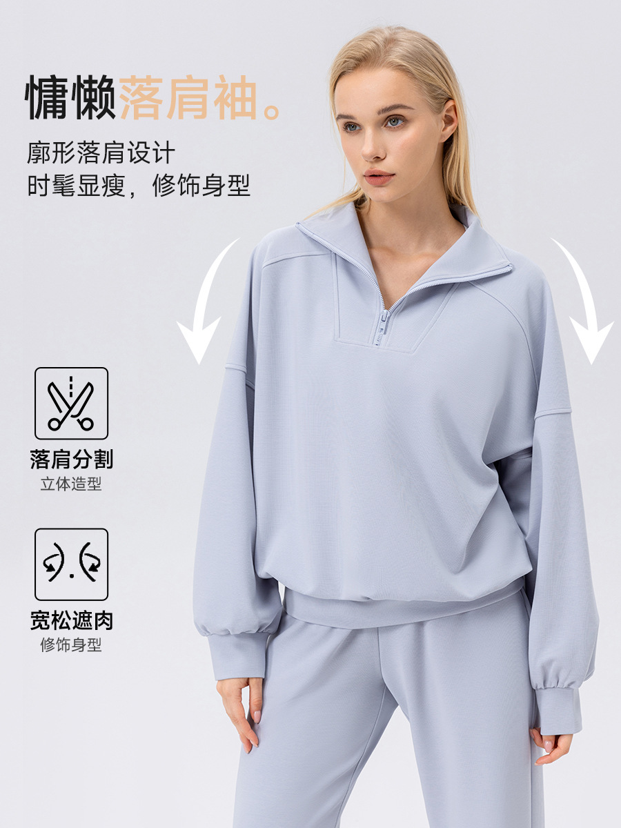 Европейский и американский осенний и зимний спортивный свитер женский пол-молния фитнес с длинными рукавами свободный отдых на открытом воздухе бег спортивная одежда куртка