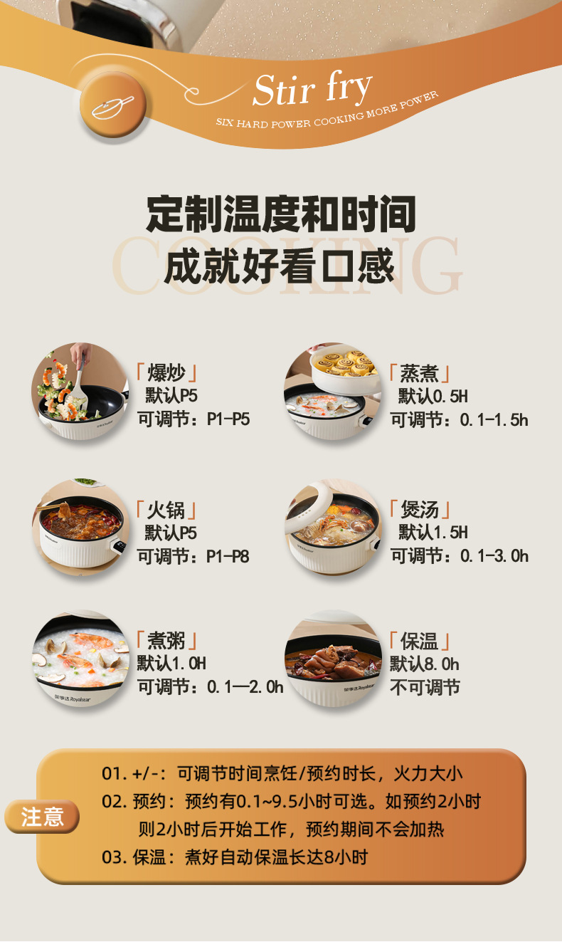 Royalstar электрический вок бытовой электрический горячий горшок умный электрический горшок вок Чжуншань кухонный электрический подарок оптовая продажа пароварка