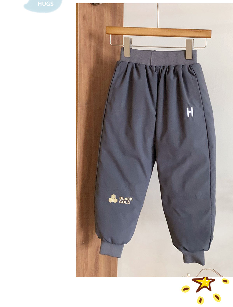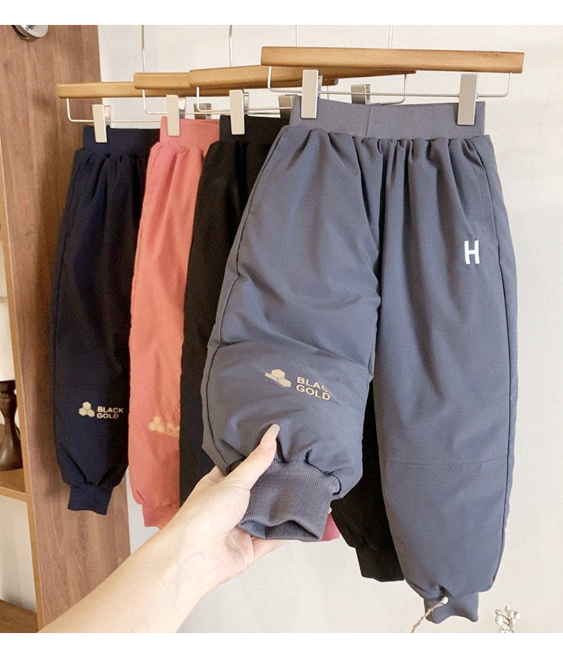 Зимние новые мальчики и девочки дети среднего и старшего возраста толстые черные золотые повседневные пуховые брюки длинные на внешней одежде брюки теплые брюки