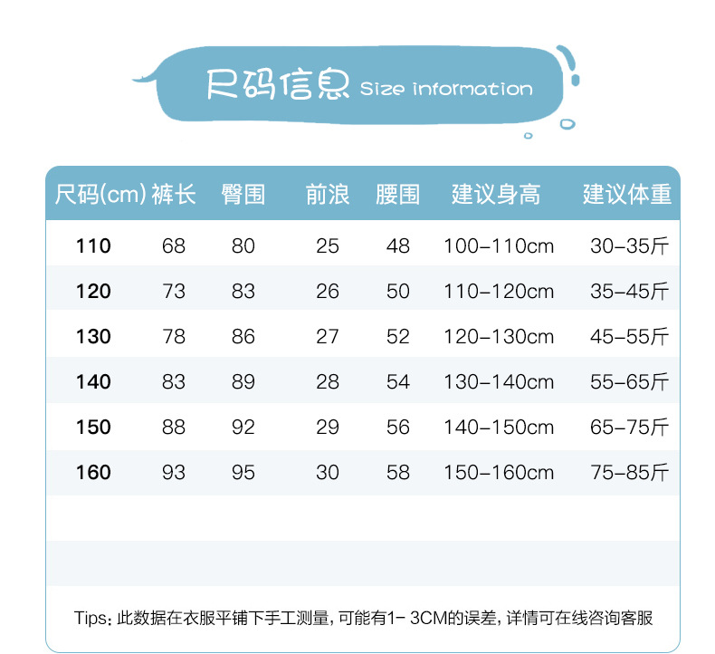110cm; 120cm; 130cm; 140cm; 150cm; 160cm
