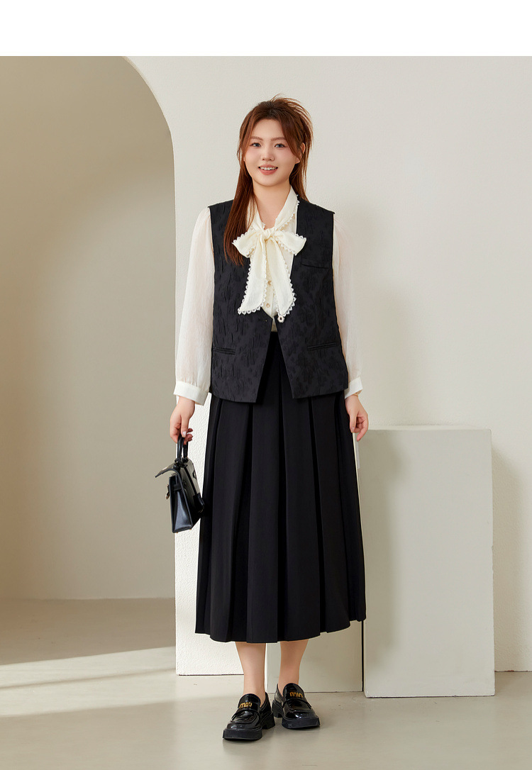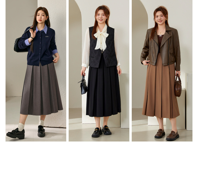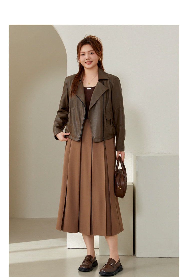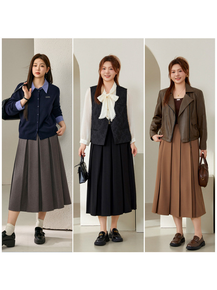 Полноцветное шоу большого размера женская мода темперамент дикий плиссированный плиссированный полуюбка жирный mm2024 осенний костюм новый