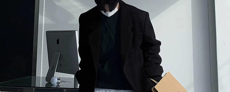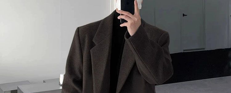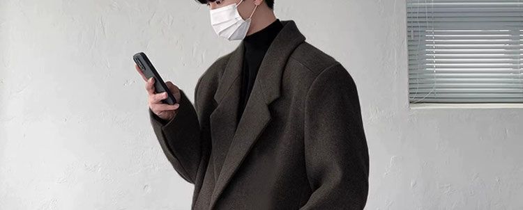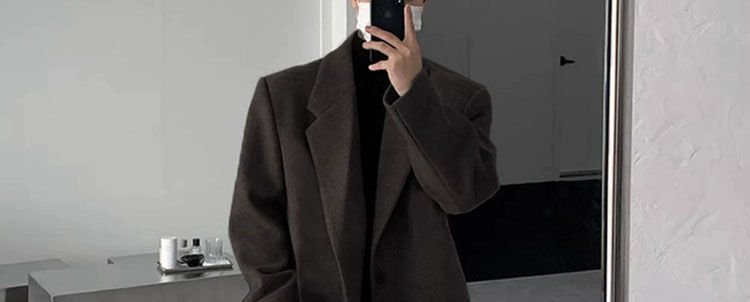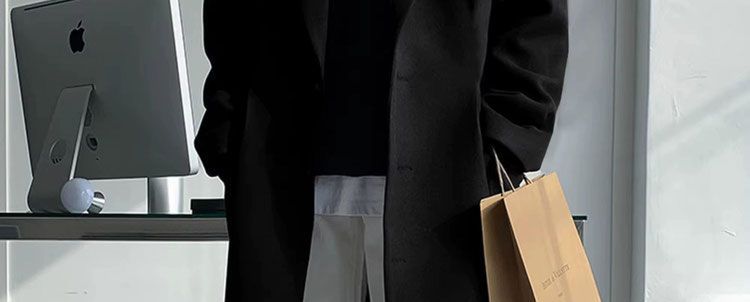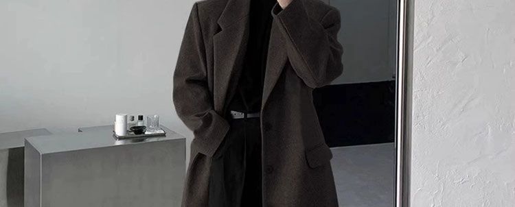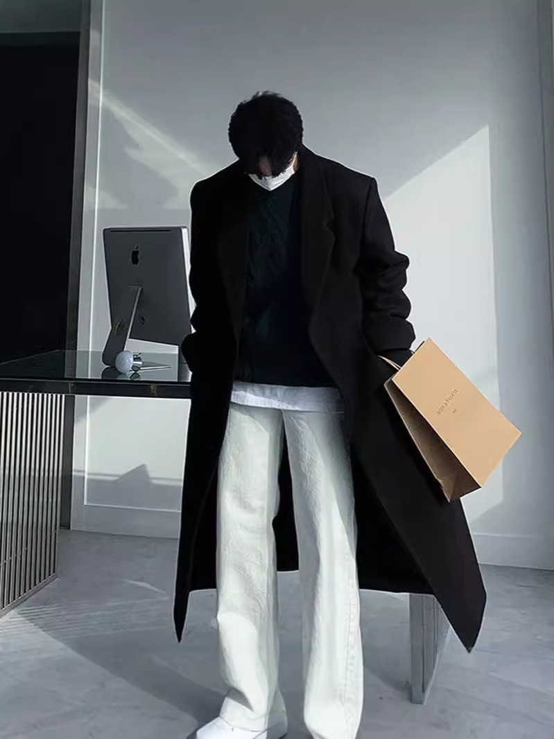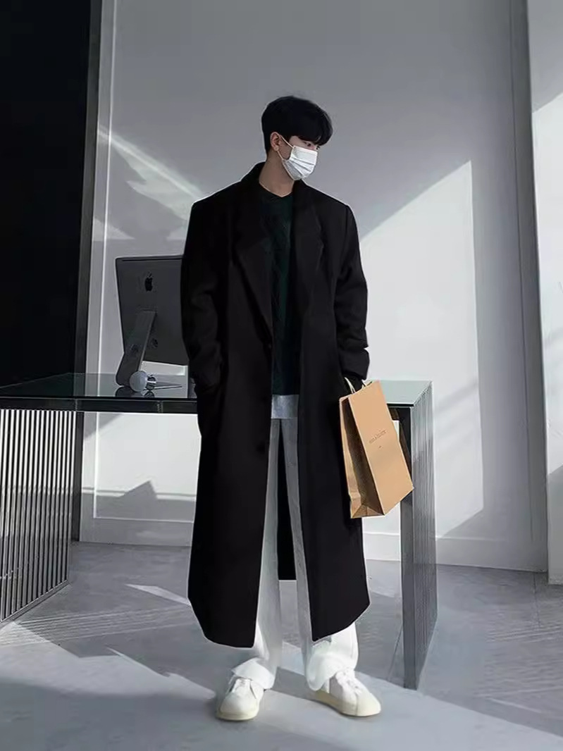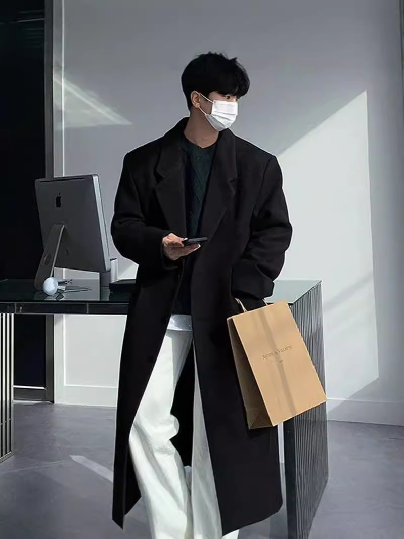 Шерстяное пальто мужского среднего и длинного колена черное свободное шерстяное пальто осенью и зимой