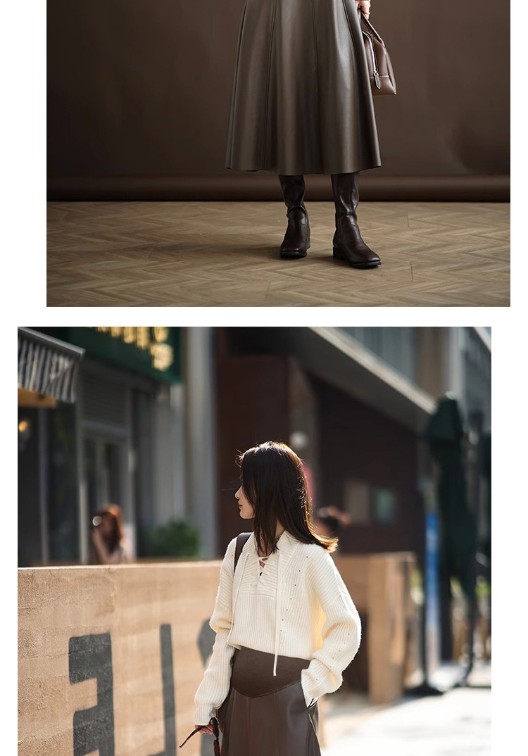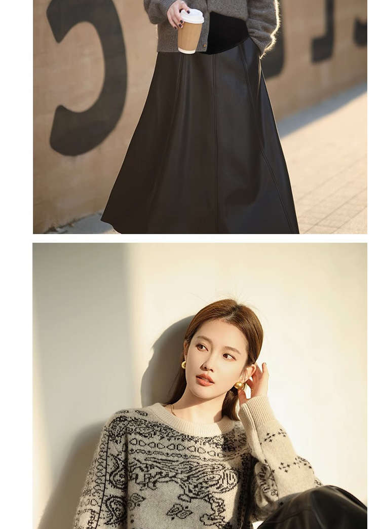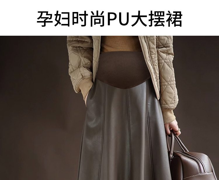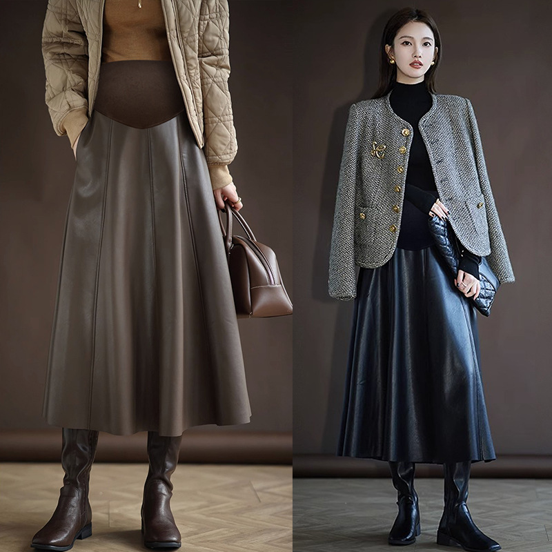 Tmall Качество беременные осенне-зимняя кожаная юбка плиссированная юбка A-образная юбка карманы