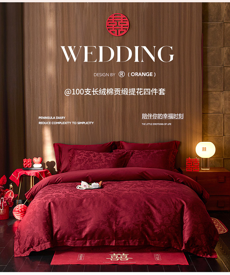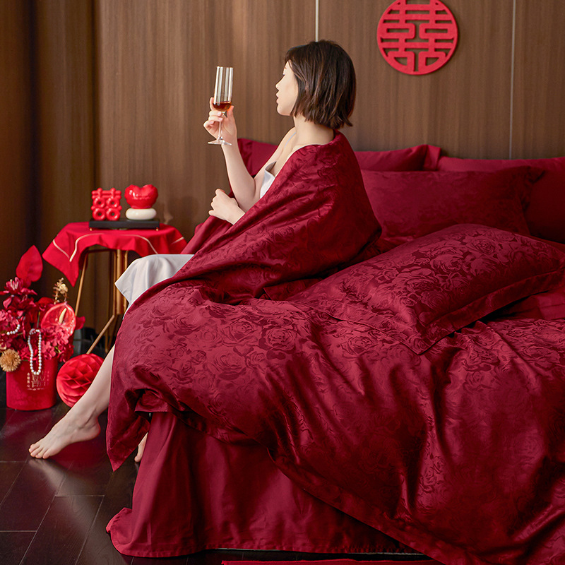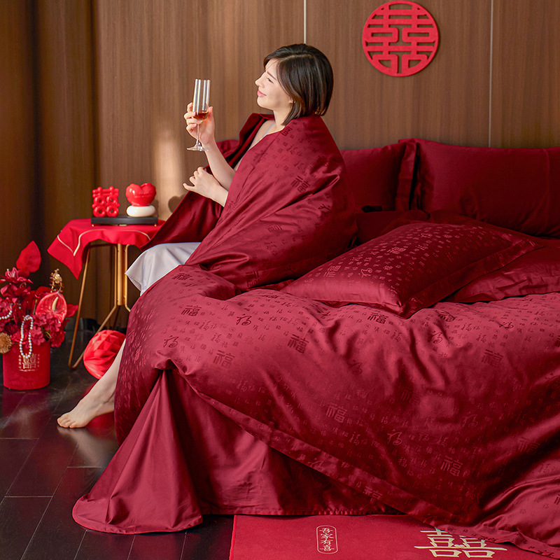 Комплект постельного белья для свадьбы из чистого хлопка, 100 нитей, длинноволокнистый хлопок, жаккард, легкая роскошь, высококачественный, свадебное постельное белье, в подарочной упаковке