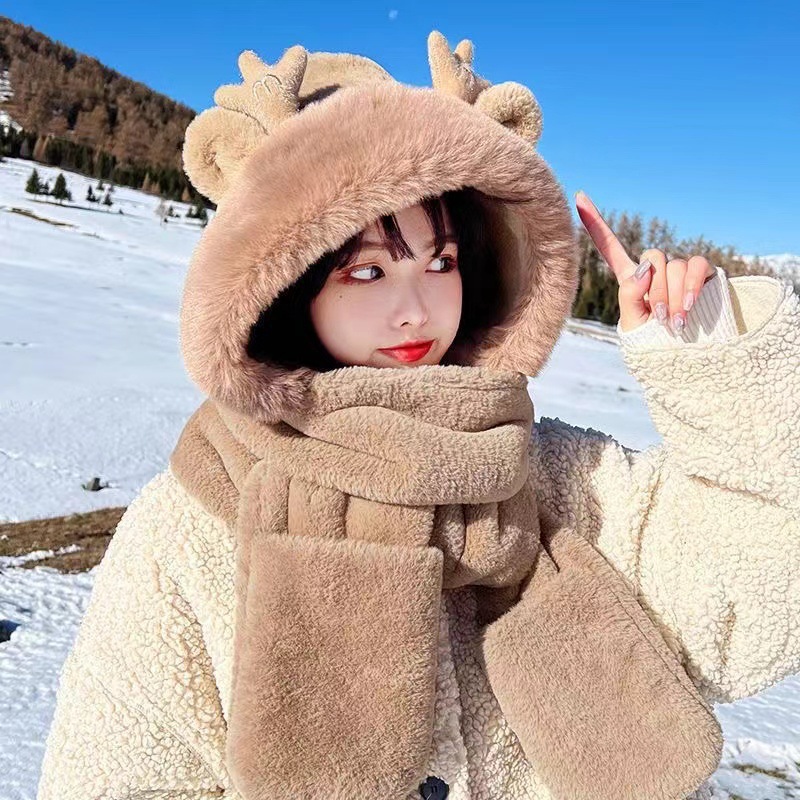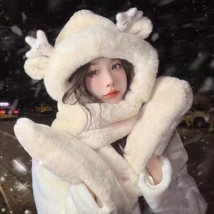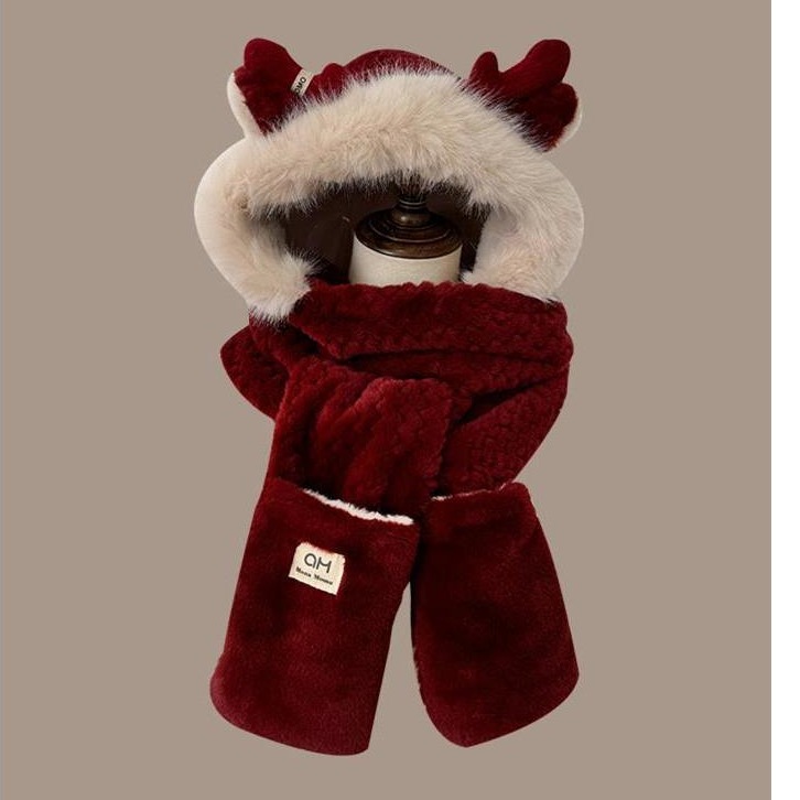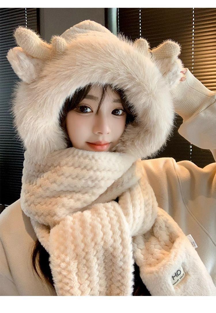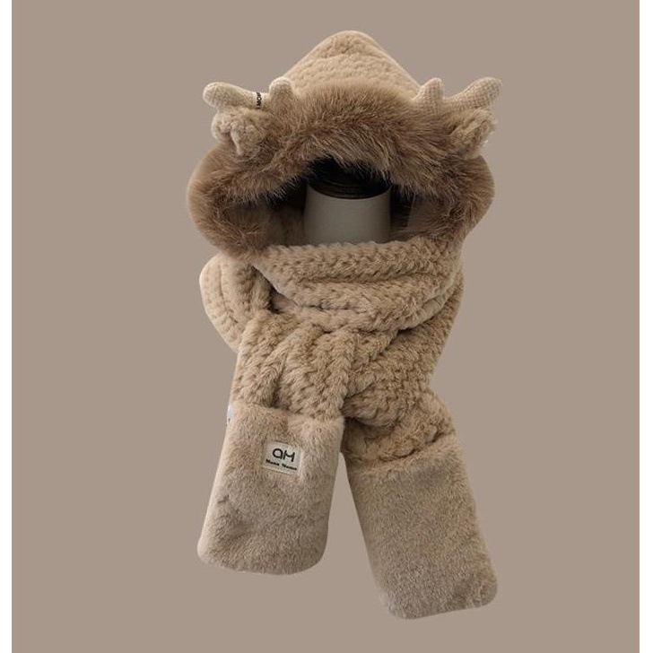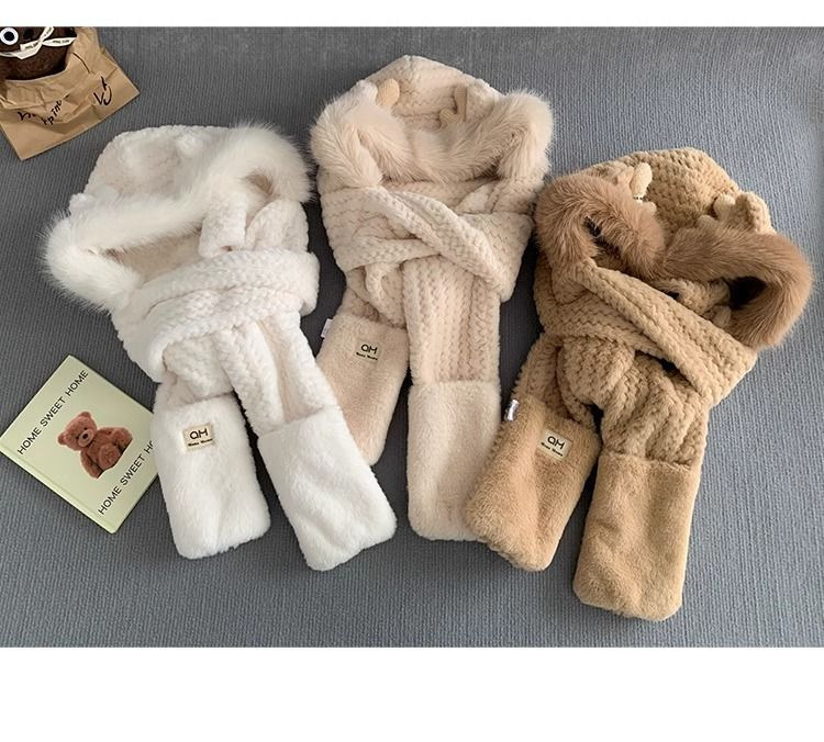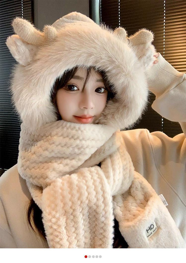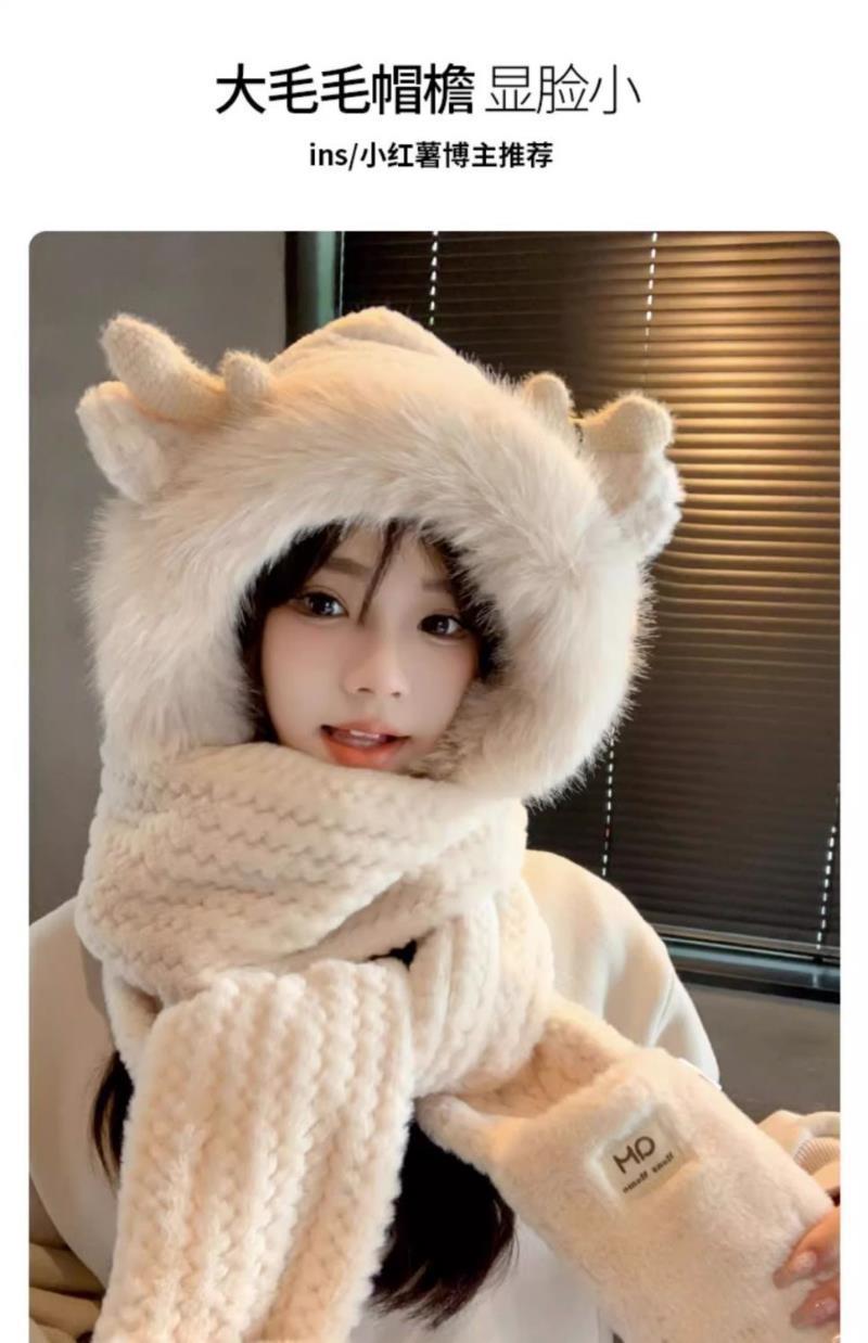 Шляпа с рогом дракона, шарф и перчатки, цельный утолщенный плюшевый шарф, комплект из трех предметов Longbao, осенне-зимний артефакт для защиты от холода на открытом воздухе.