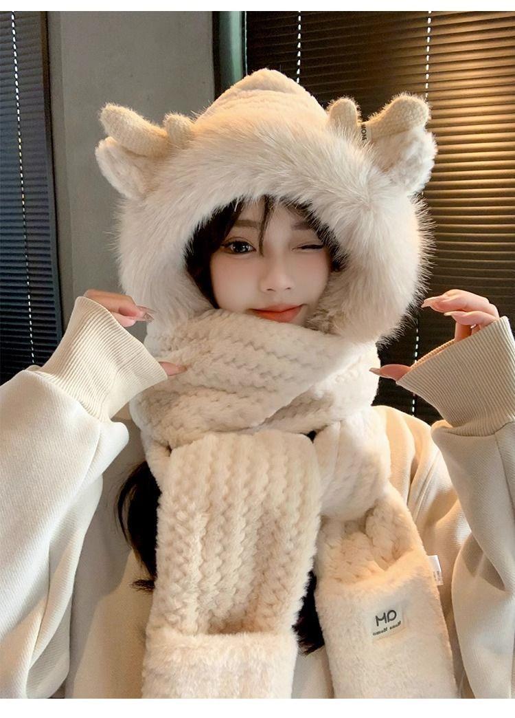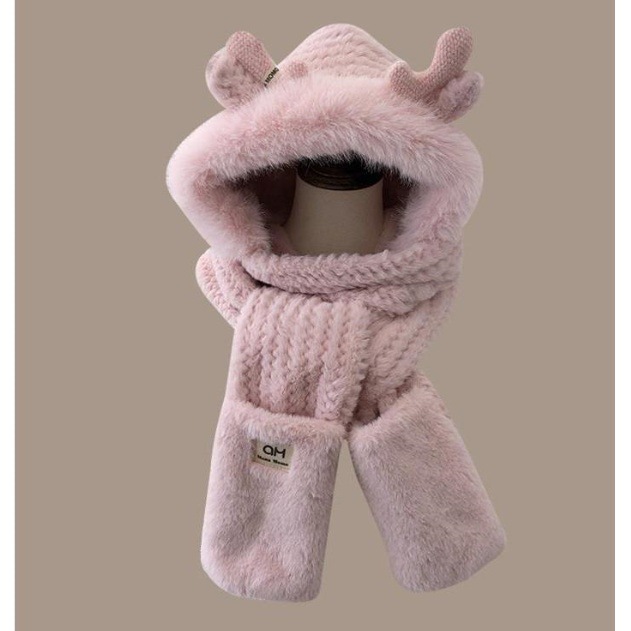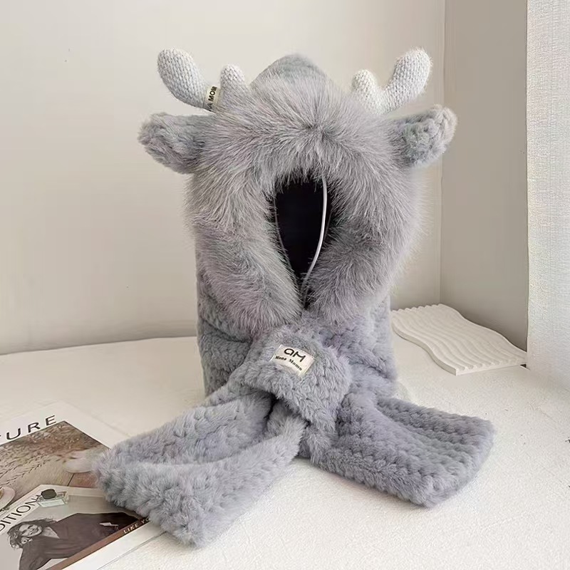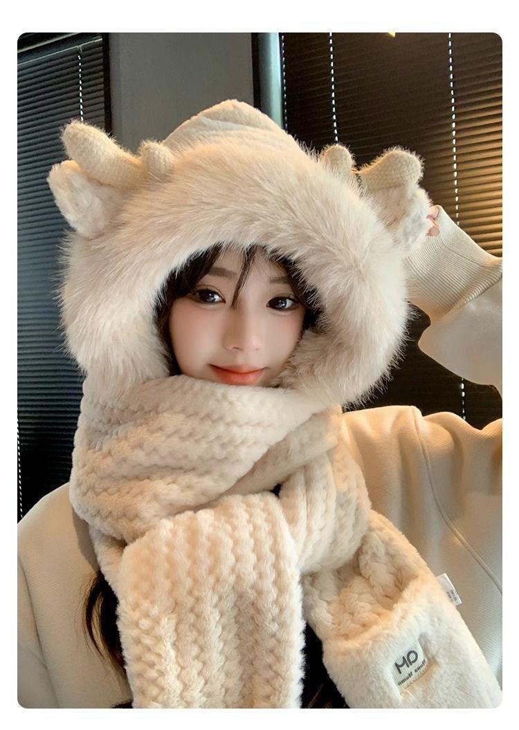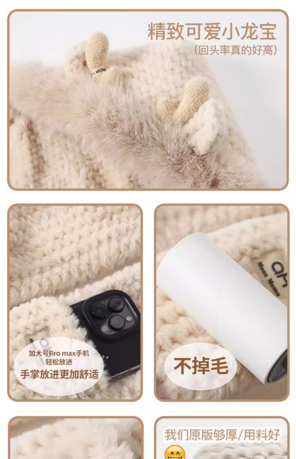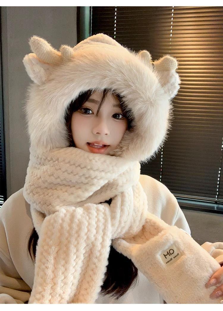 Шляпа с рогом дракона, шарф и перчатки, цельный утолщенный плюшевый шарф, комплект из трех предметов Longbao, осенне-зимний артефакт для защиты от холода на открытом воздухе.