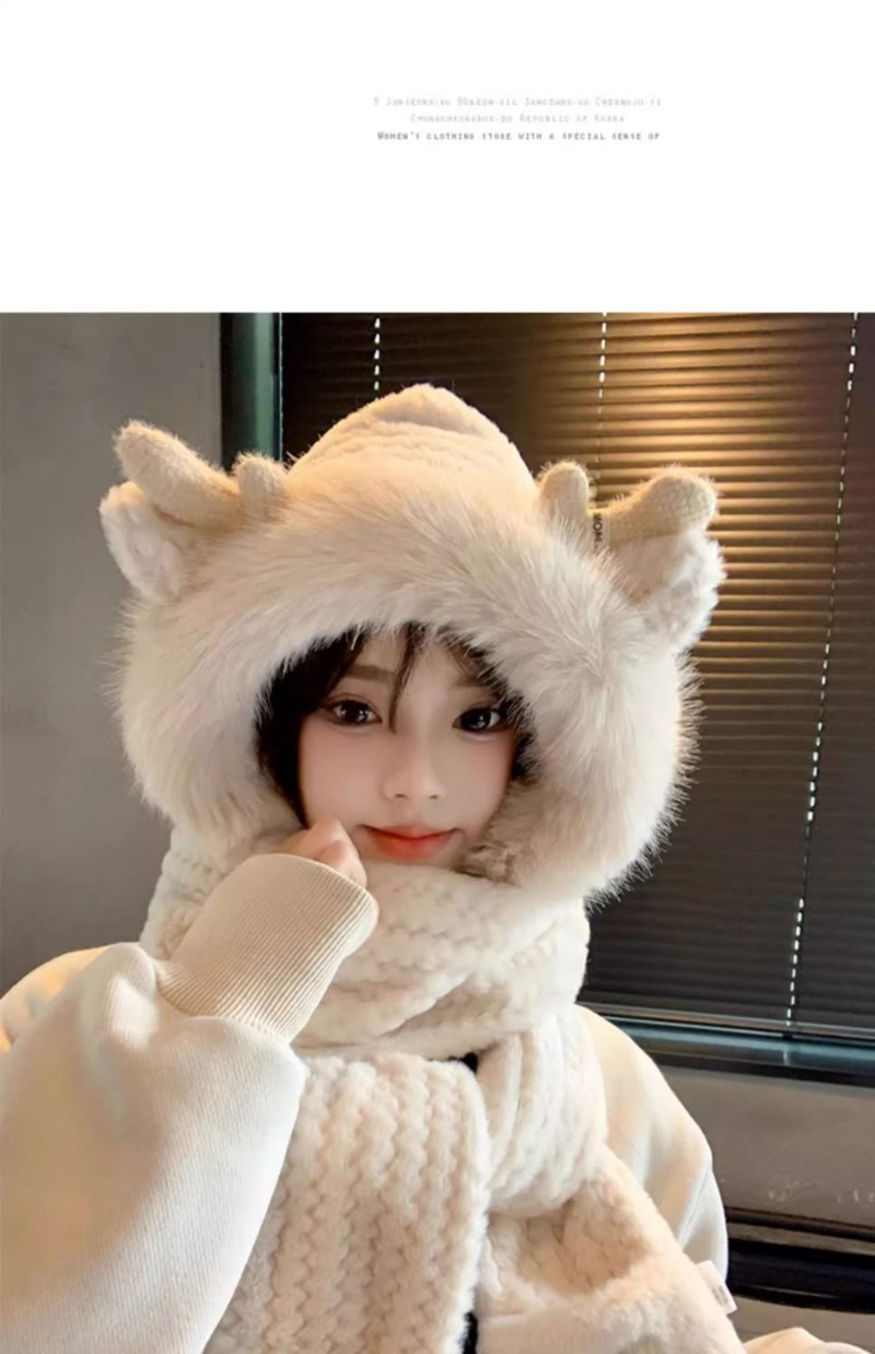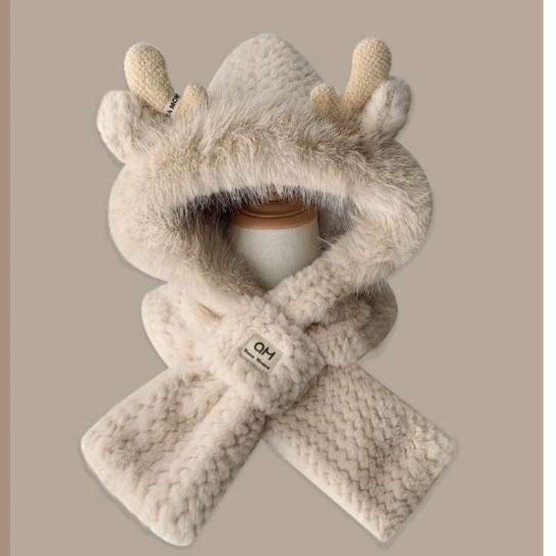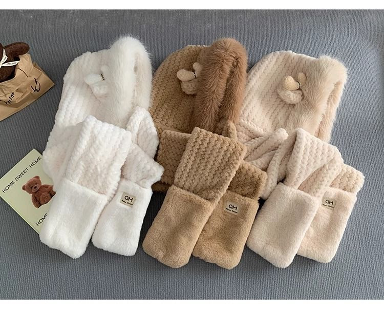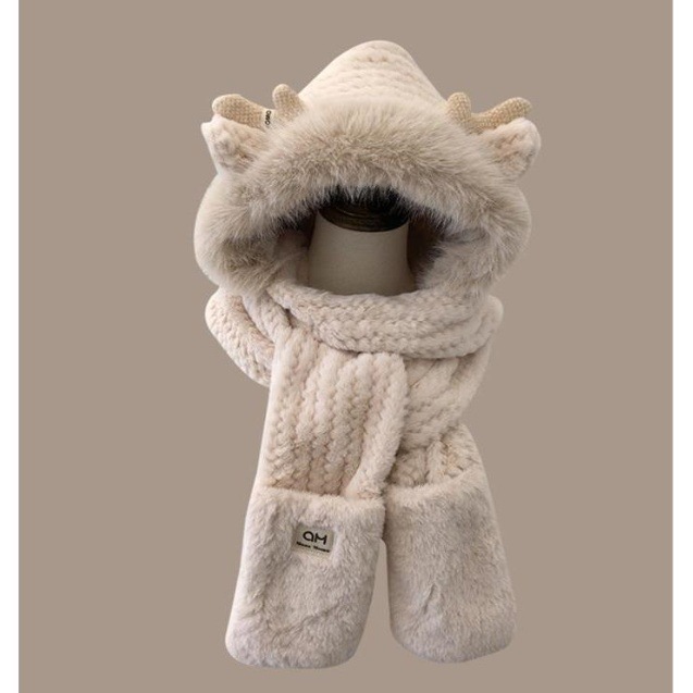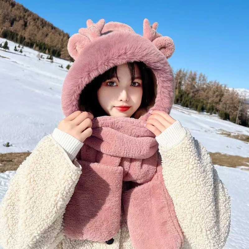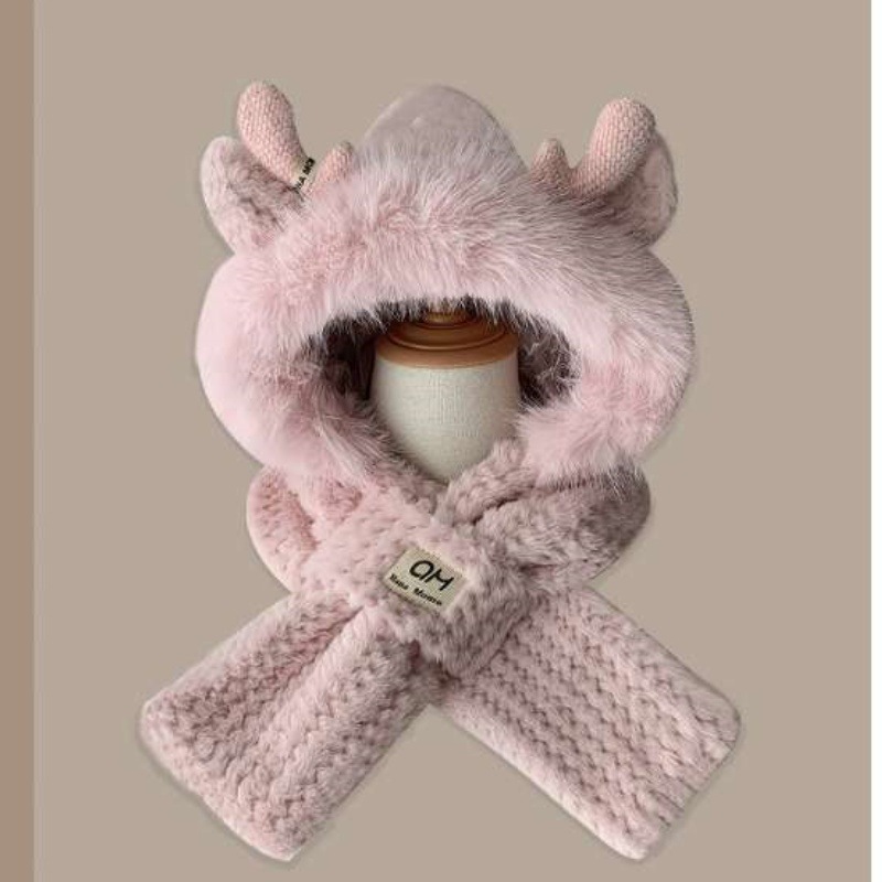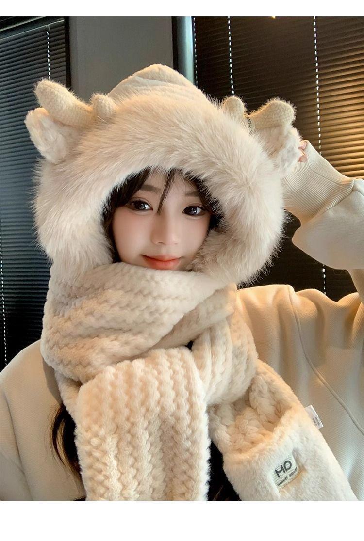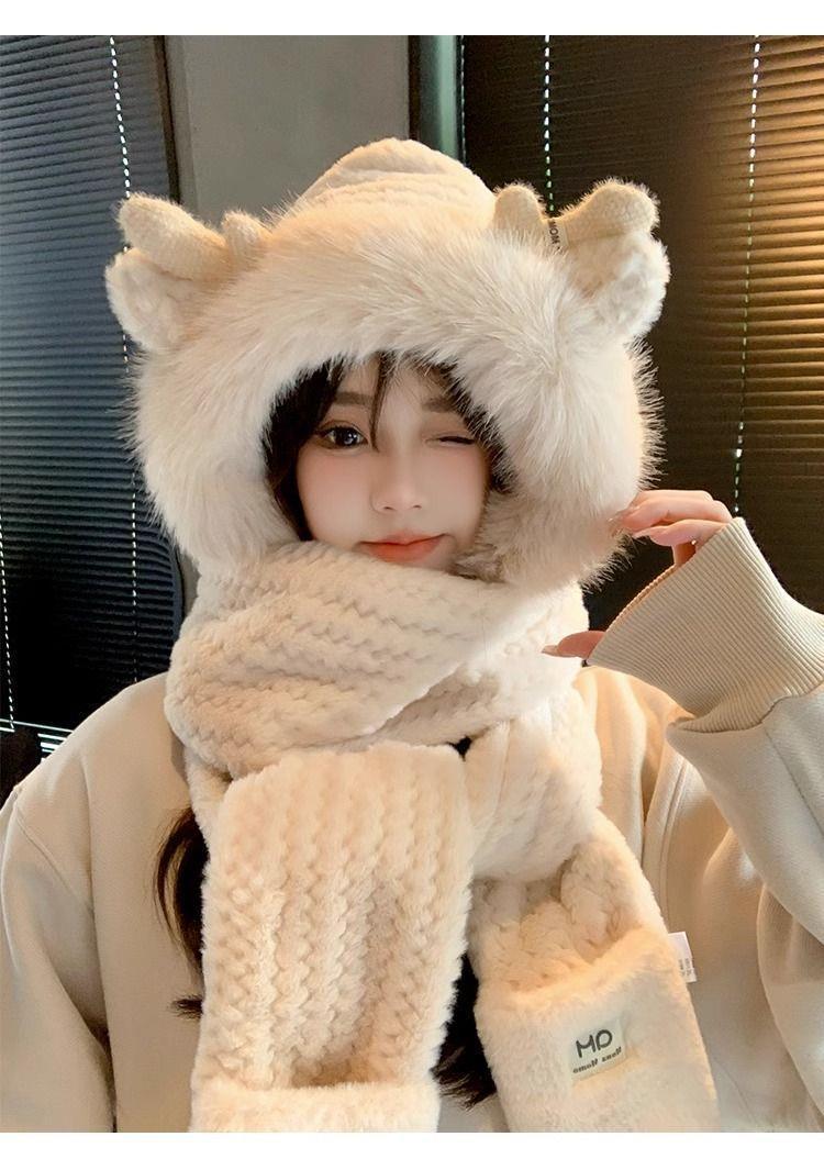 Шляпа с рогом дракона, шарф и перчатки, цельный утолщенный плюшевый шарф, комплект из трех предметов Longbao, осенне-зимний артефакт для защиты от холода на открытом воздухе.
