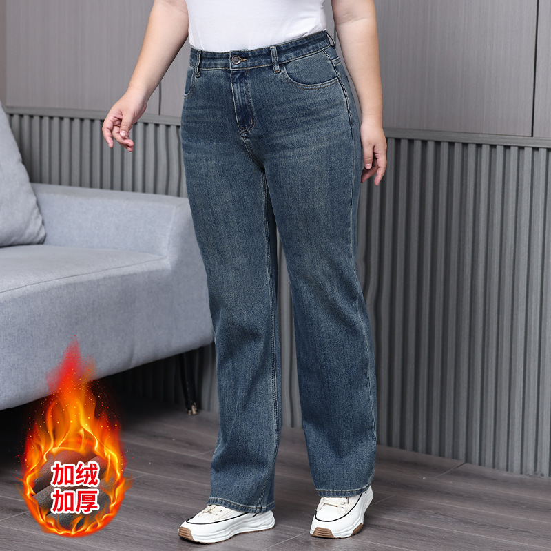 Джинсы женские с высокой талией, эластичные, больших размеров, для женщин весом до 90 кг, новая зимняя коллекция 2025 года, оптовая продажа джинсов для международной торговли, женская одежда