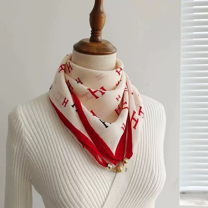 Новый шелковый платок с магнитной застежкой для женщин 2025 года, маленький квадратный платок для осени и зимы, теплый и морозостойкий, модный и универсальный, декоративный шейный платок в корейском стиле.
