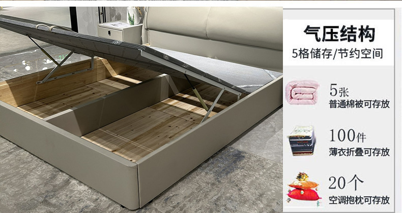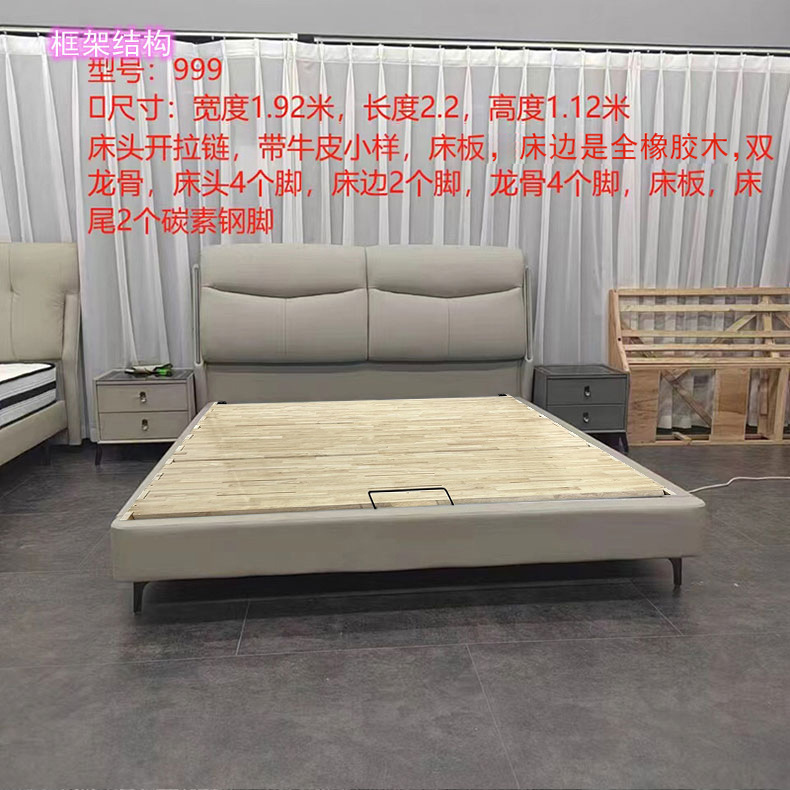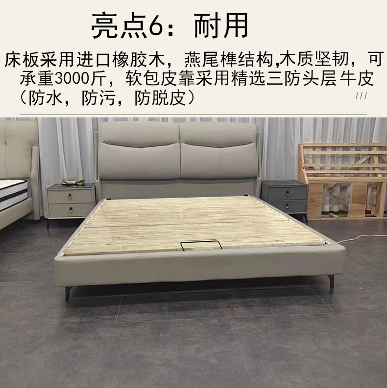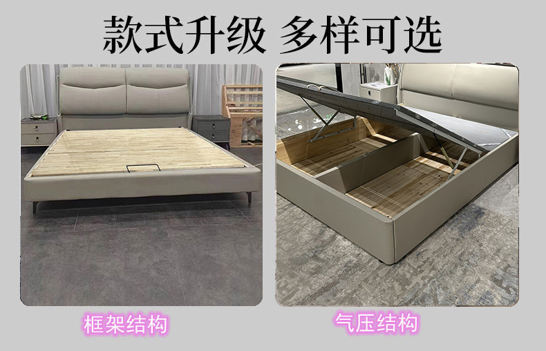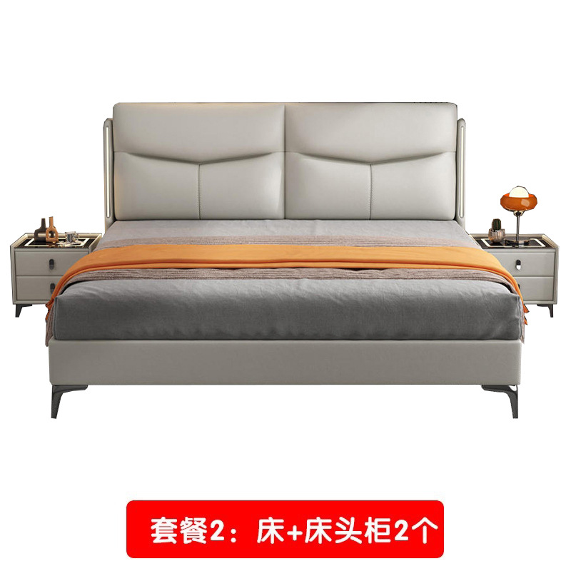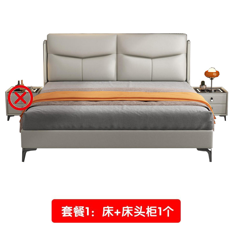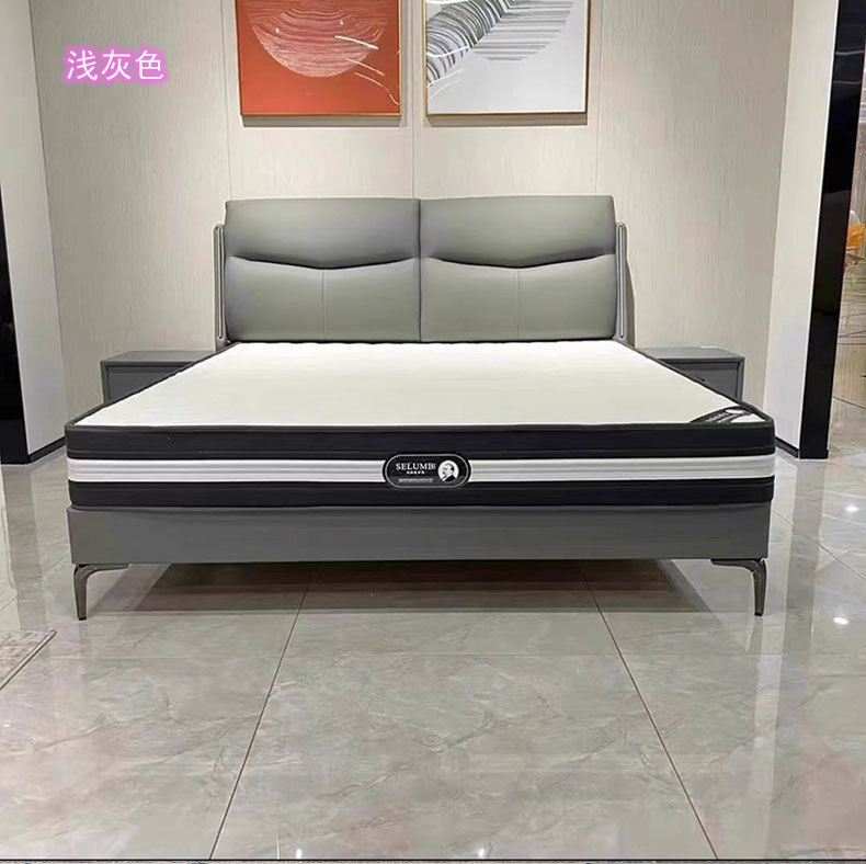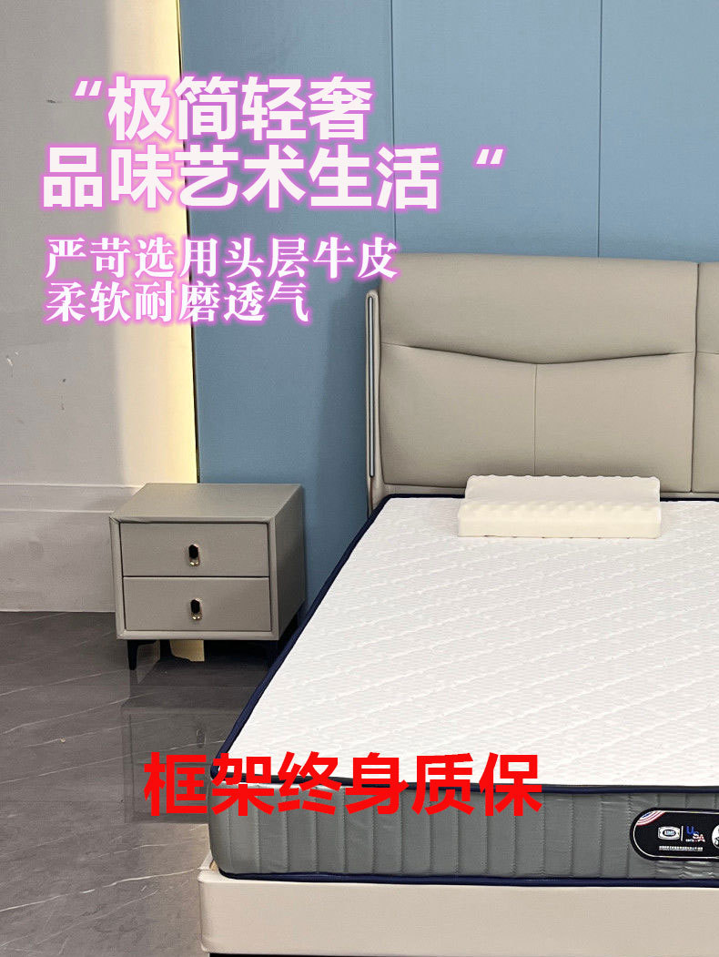 Кожаная двуспальная кровать первый слой коровьей кожи бренд легкий, минималистский минималистский, минималистский, мягкая кровать Современное минималистичное программное обеспечение для спальни