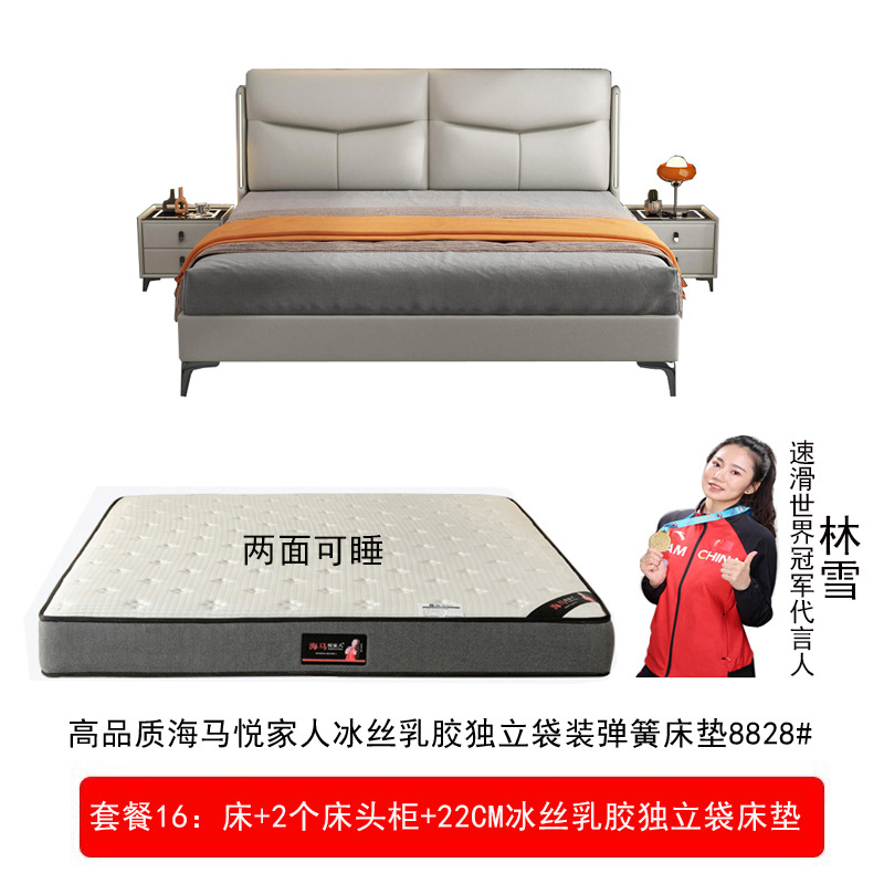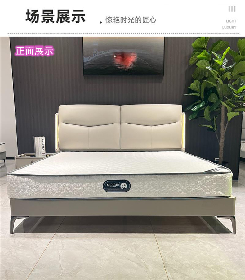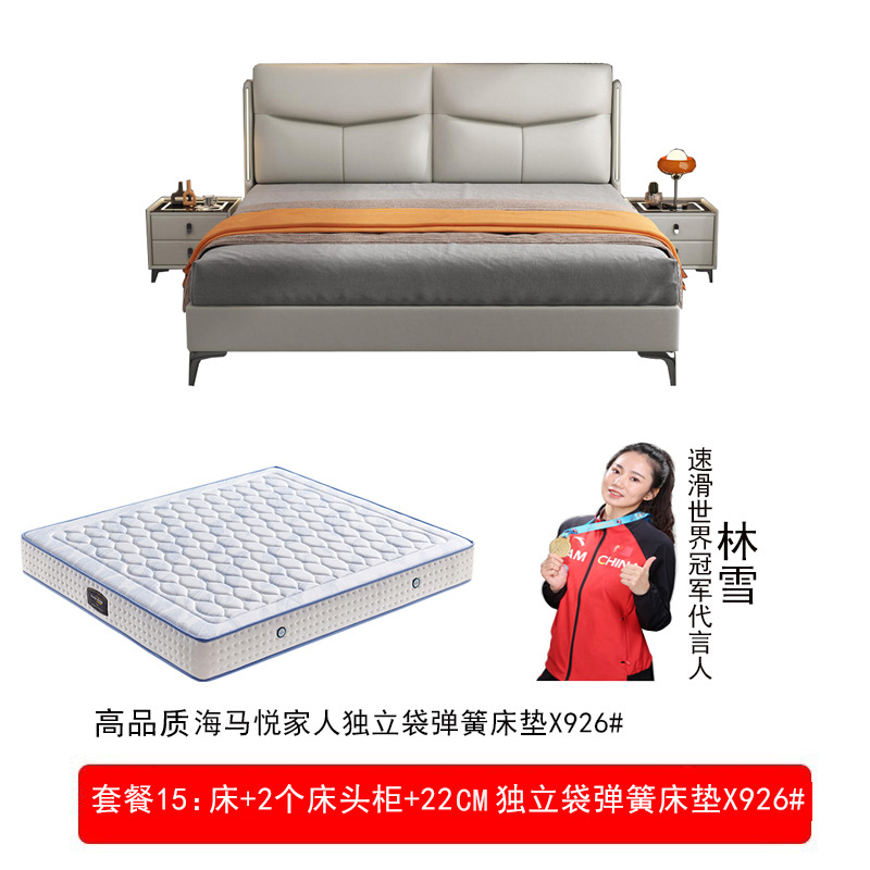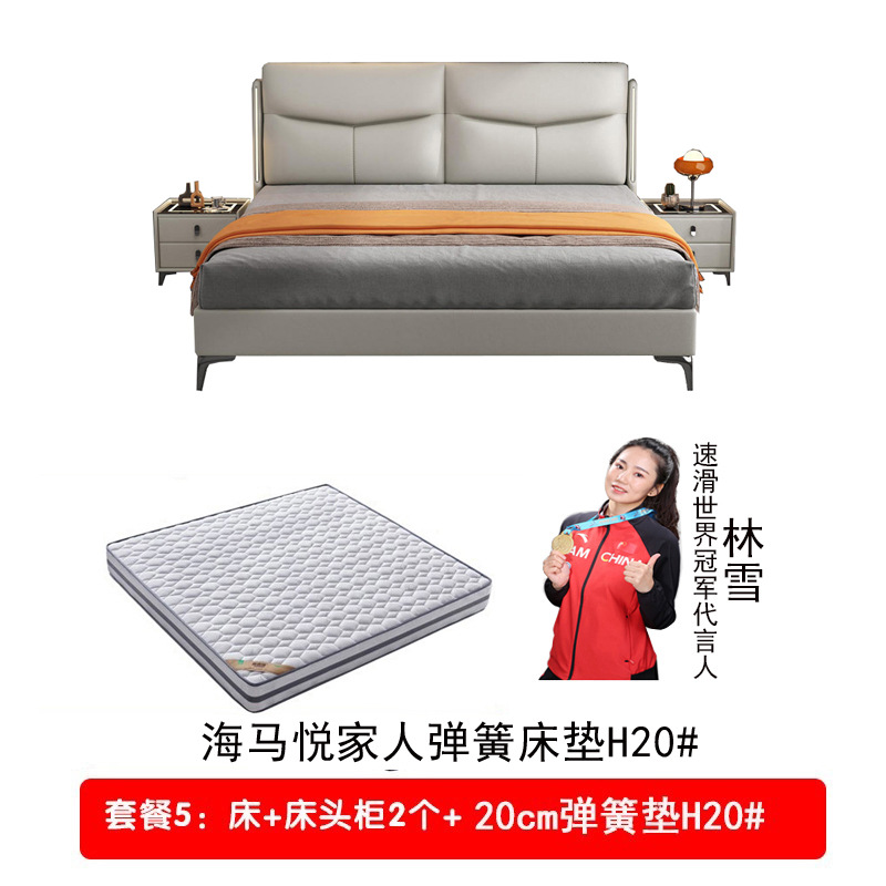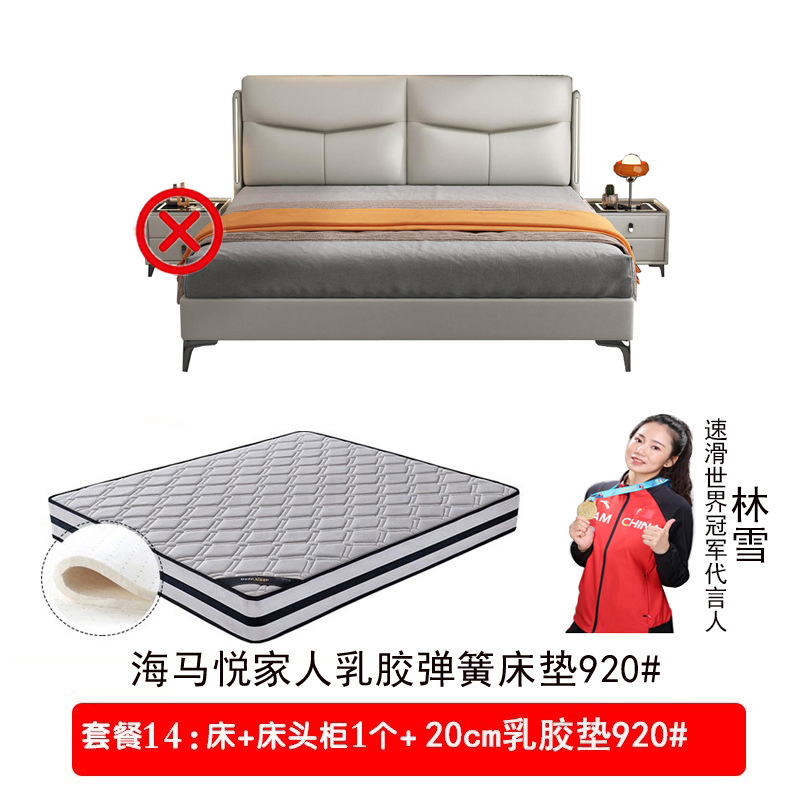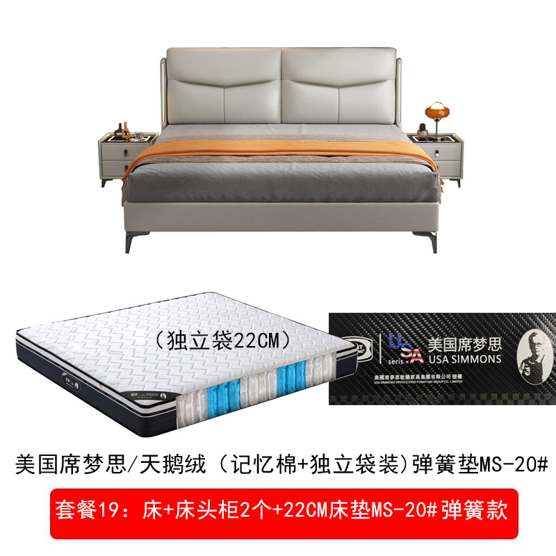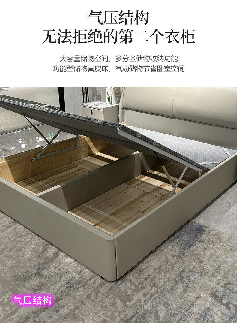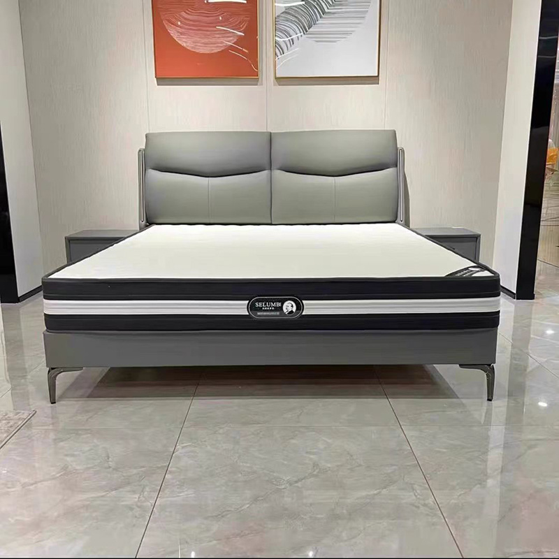 Кожаная двуспальная кровать первый слой коровьей кожи бренд легкий, минималистский минималистский, минималистский, мягкая кровать Современное минималистичное программное обеспечение для спальни