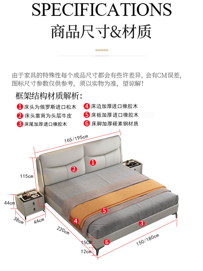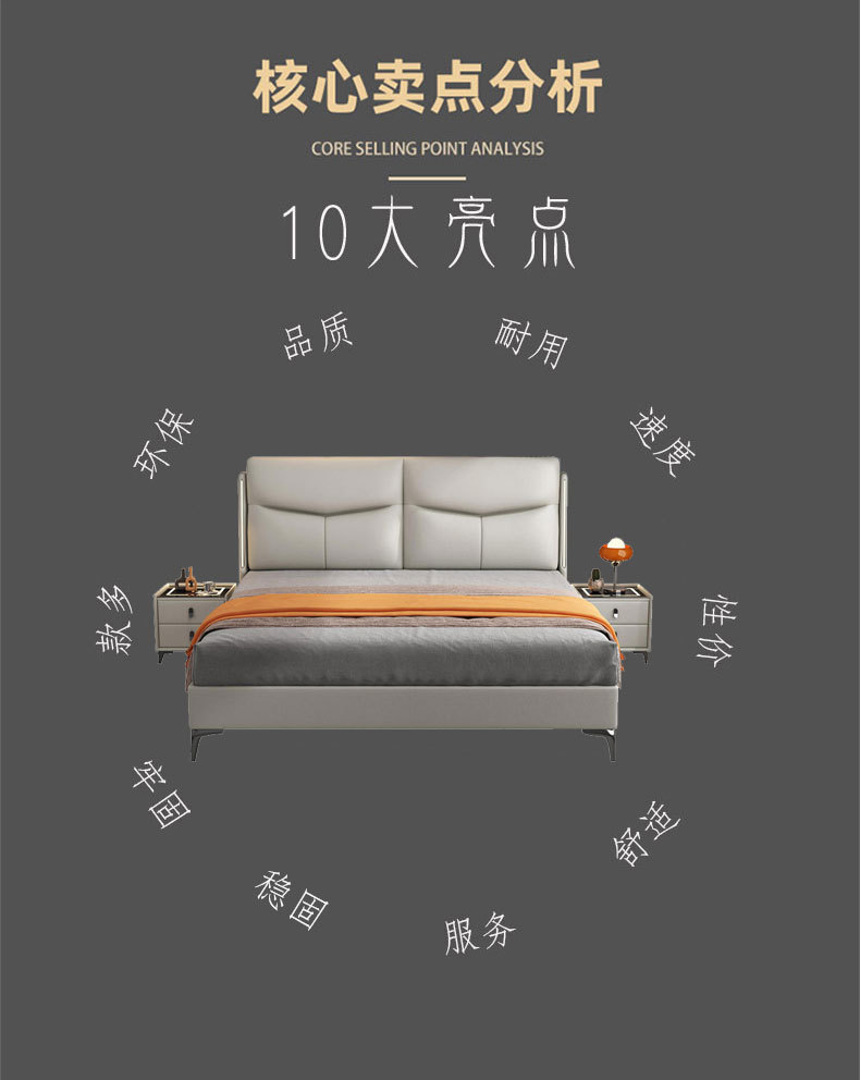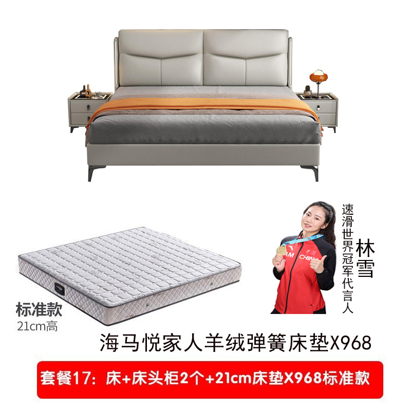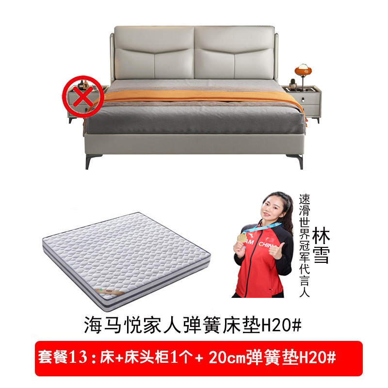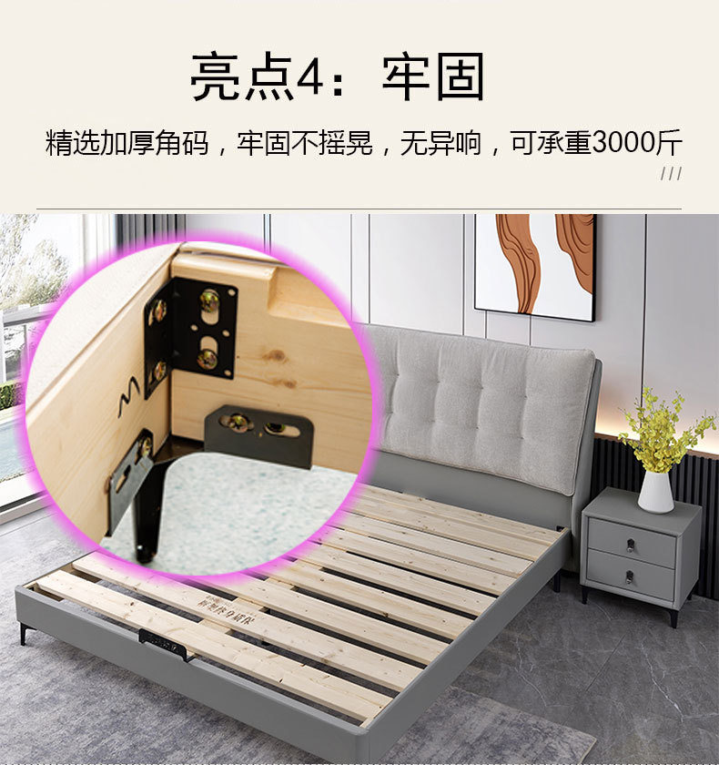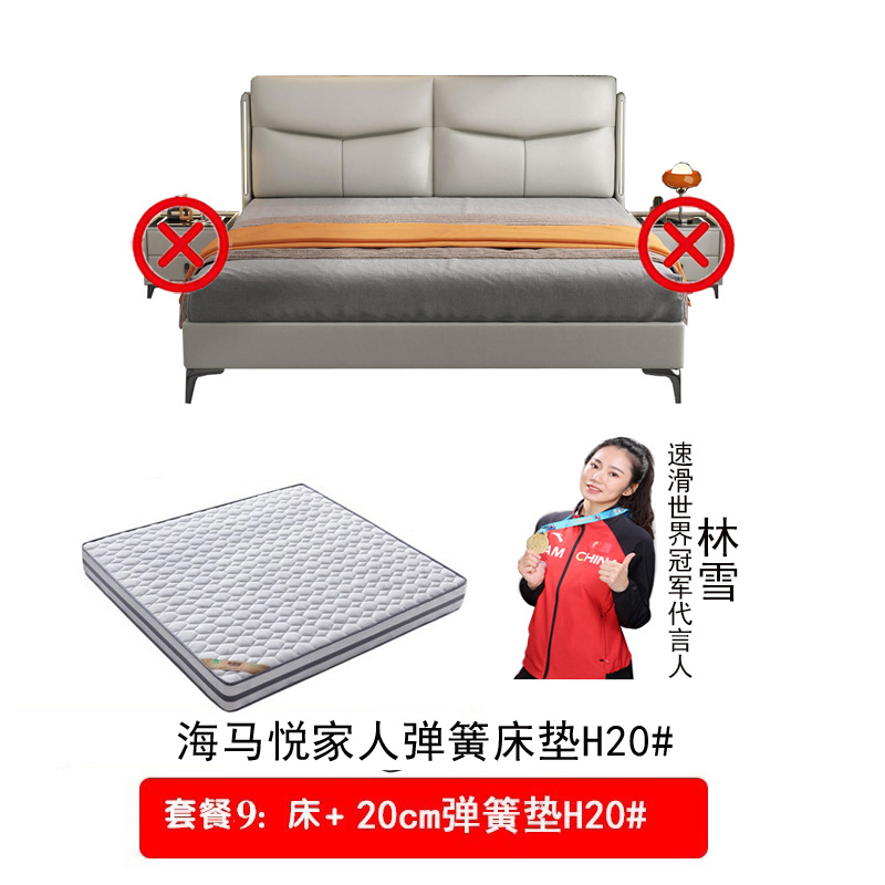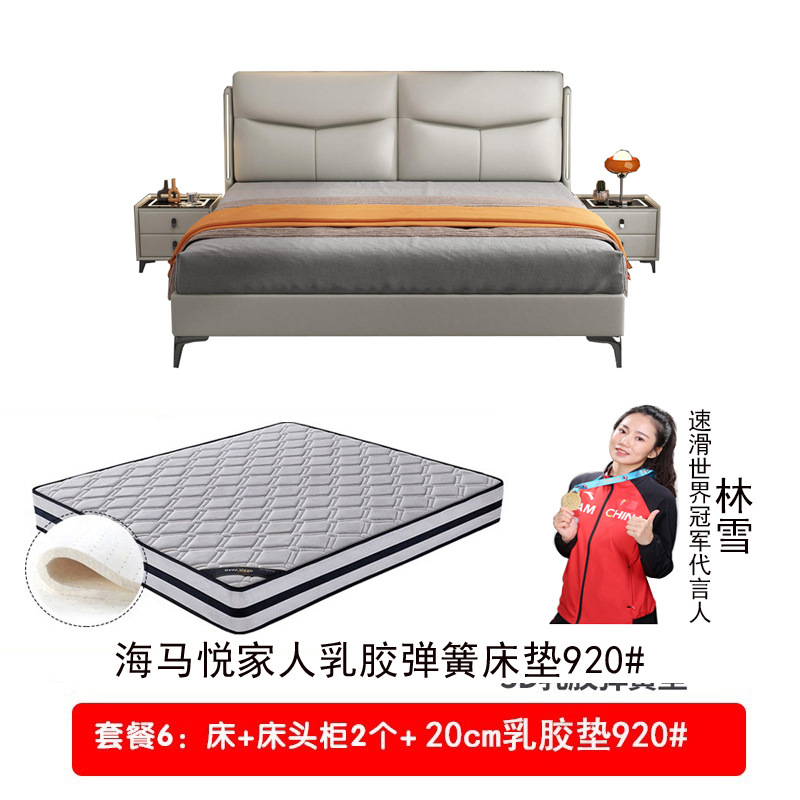 Кожаная двуспальная кровать первый слой коровьей кожи бренд легкий, минималистский минималистский, минималистский, мягкая кровать Современное минималистичное программное обеспечение для спальни