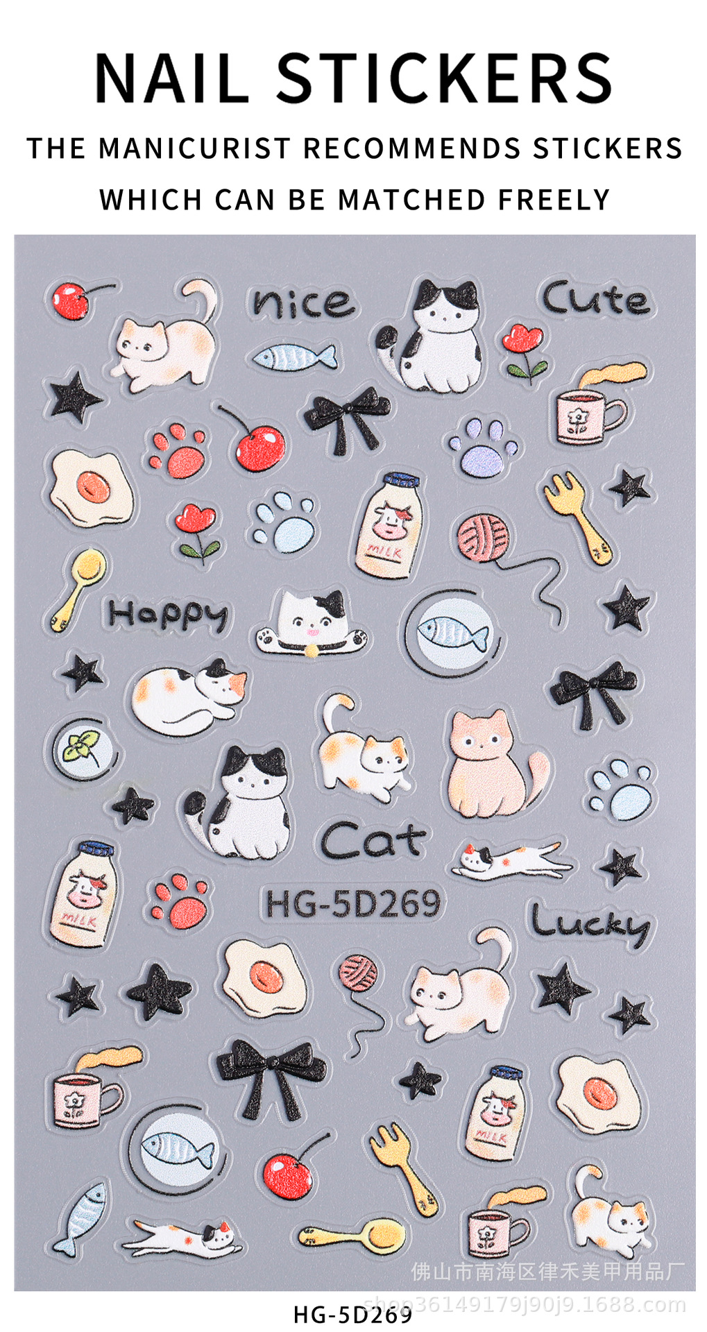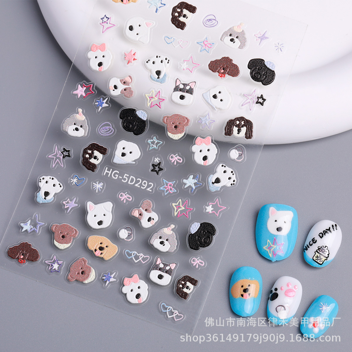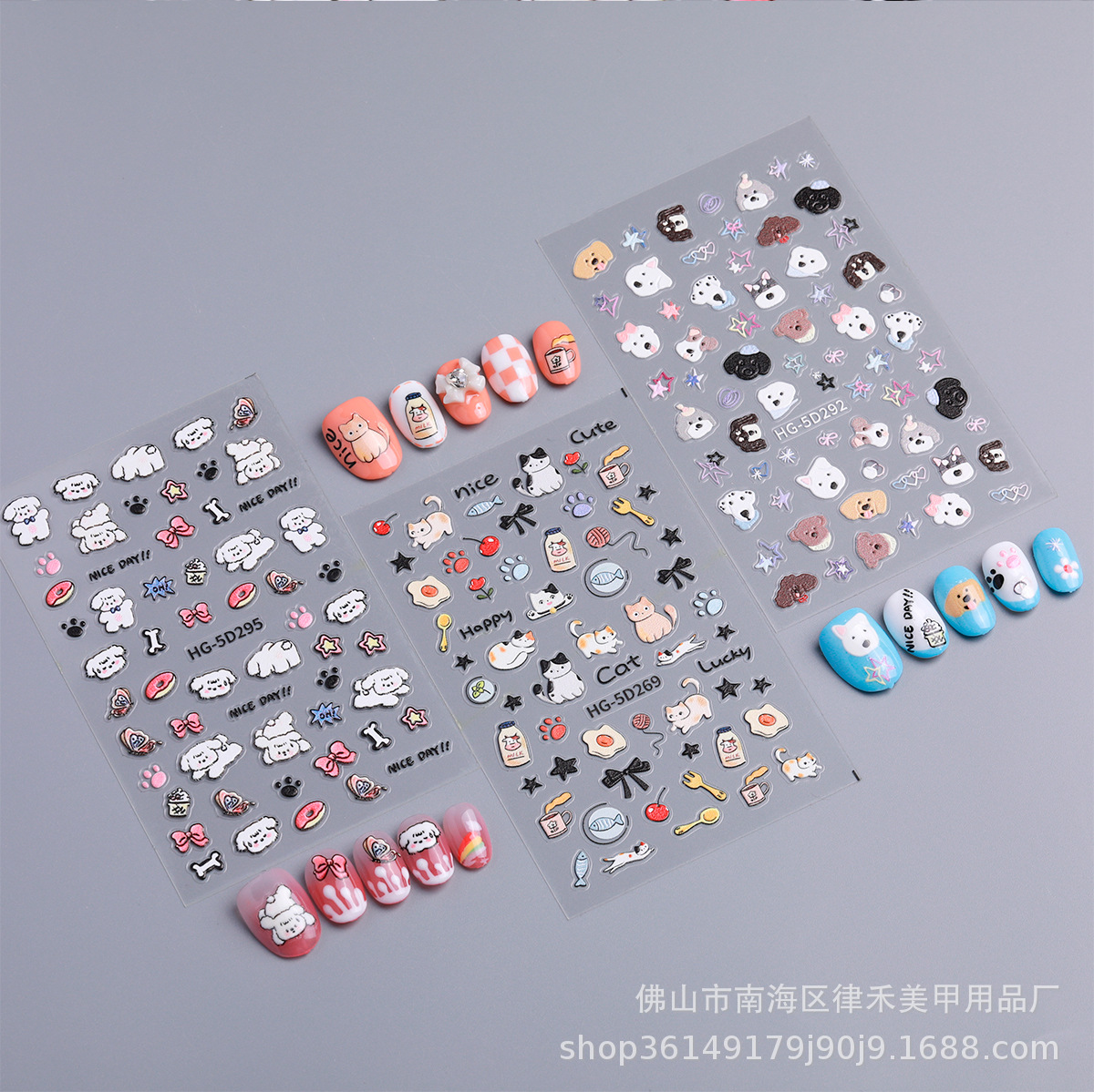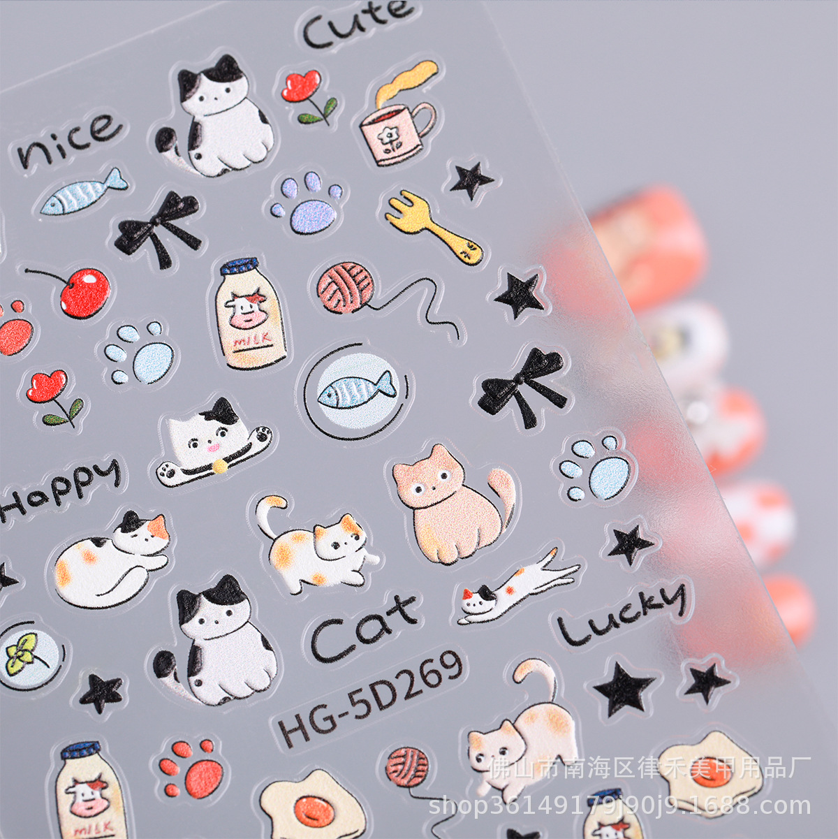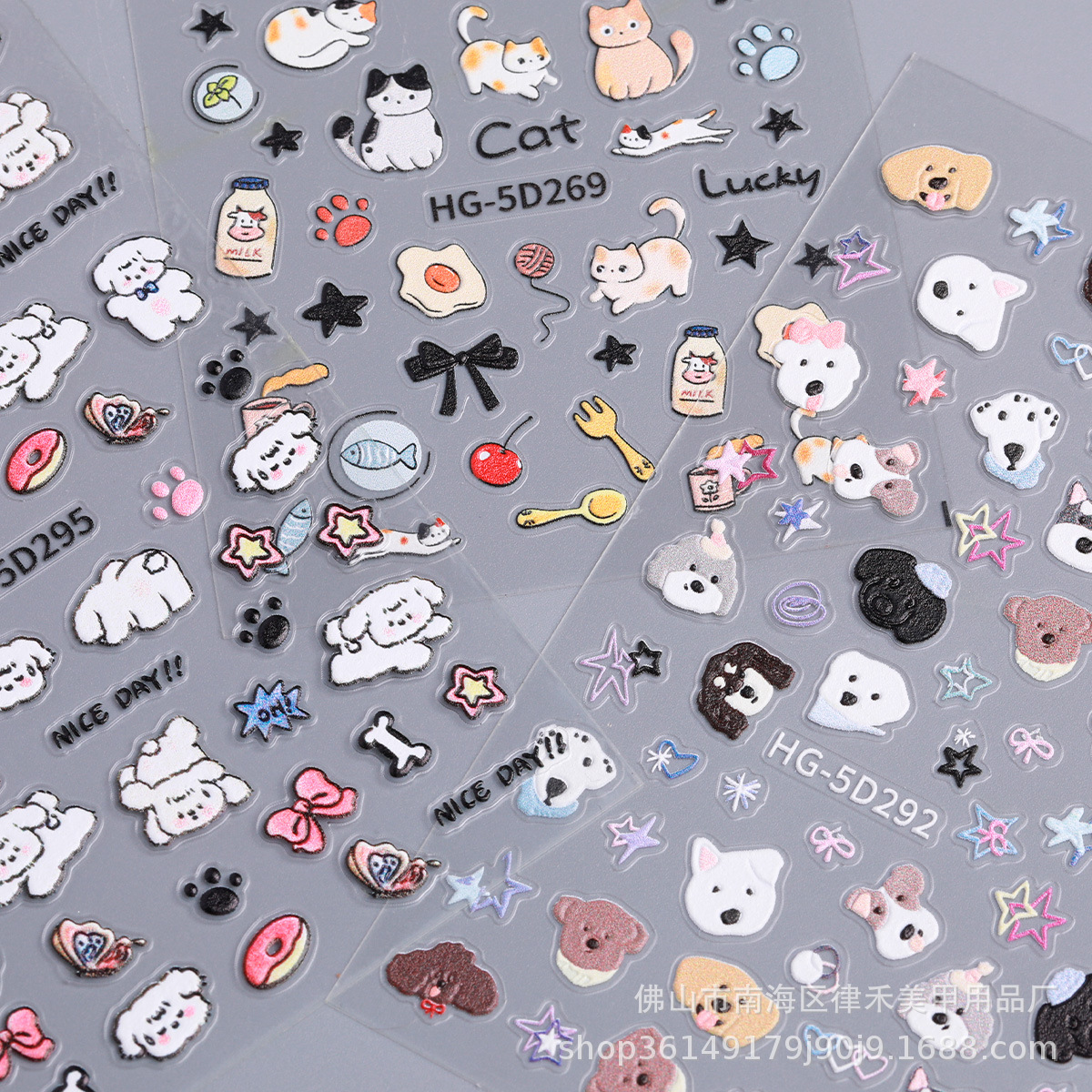 5d тисненый трехмерный мяу черный кот милый щенок звезда бант наклейка на маникюр рельефная наклейка для ногтей