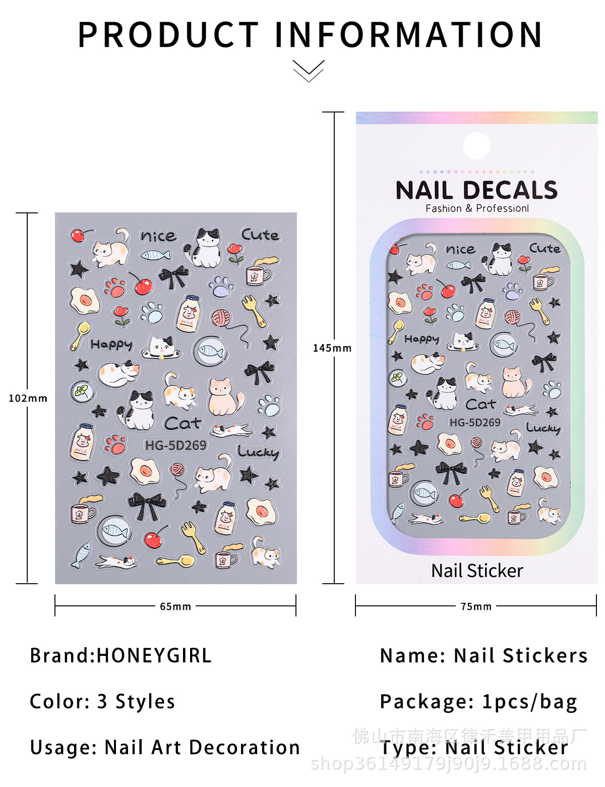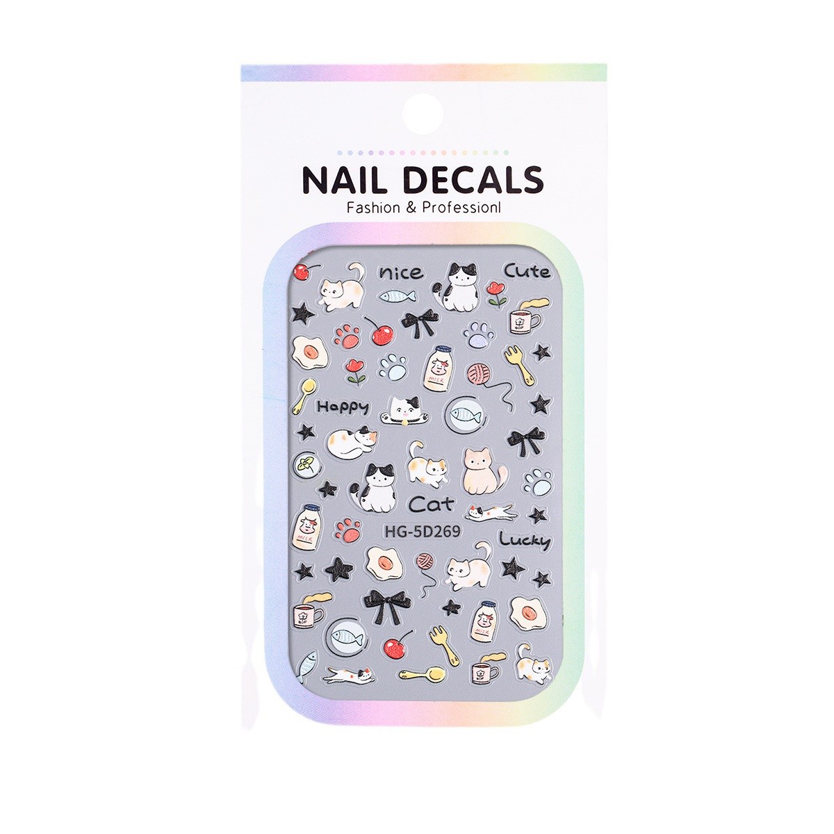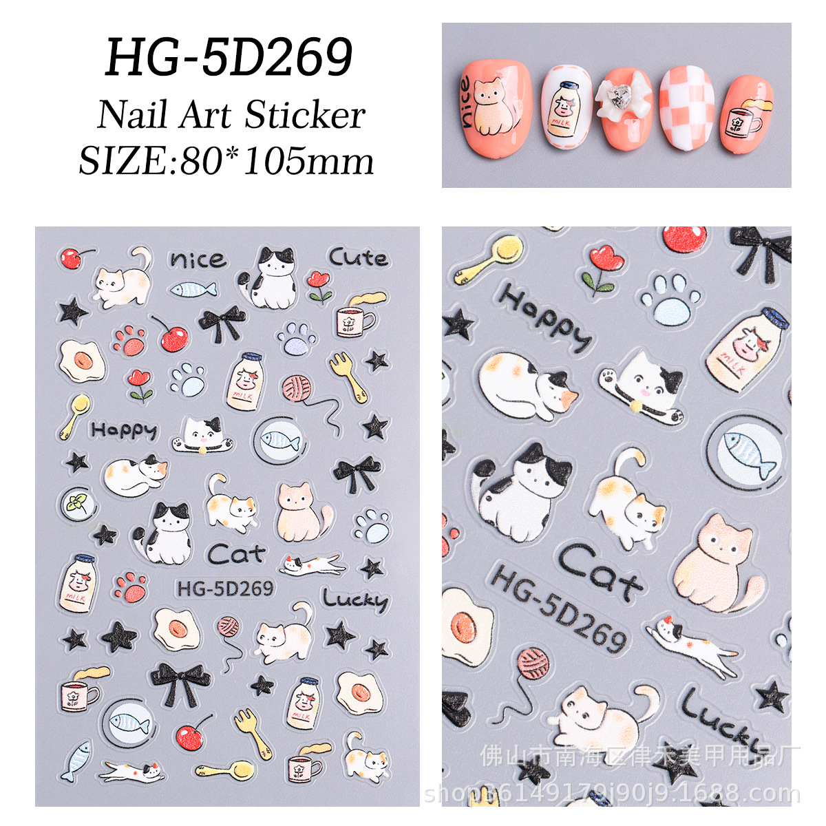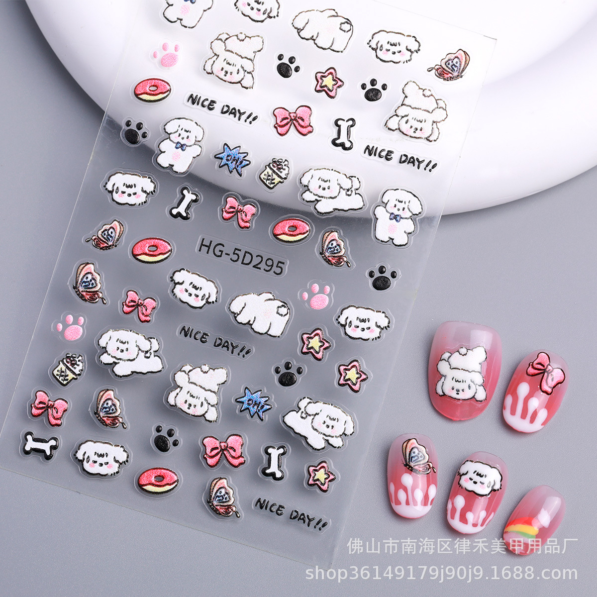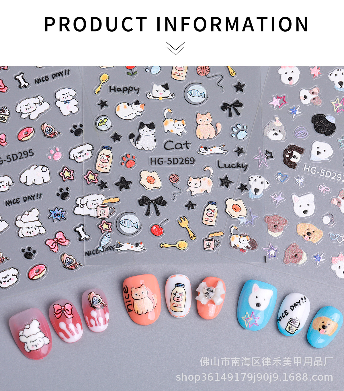 5d тисненый трехмерный мяу черный кот милый щенок звезда бант наклейка на маникюр рельефная наклейка для ногтей