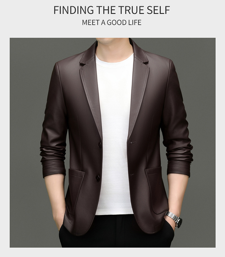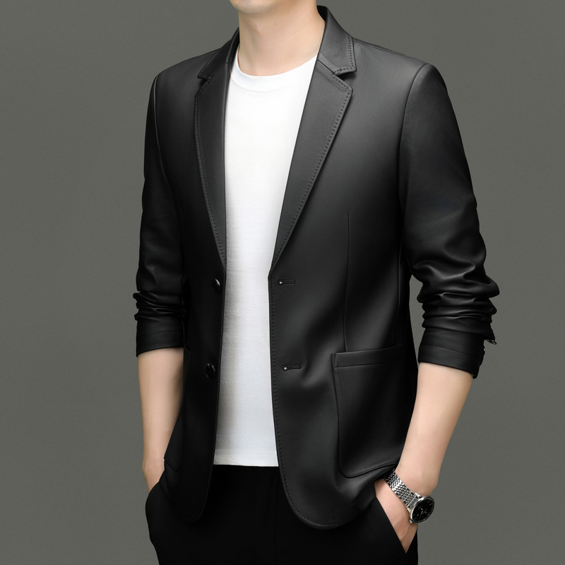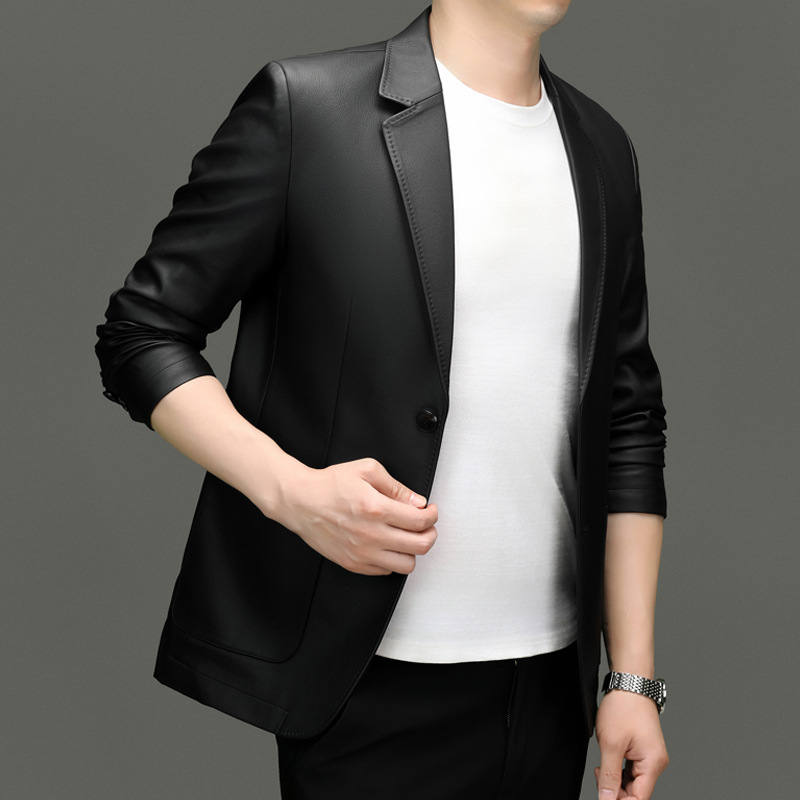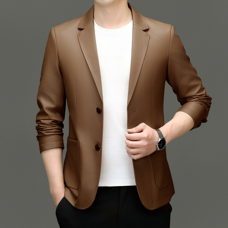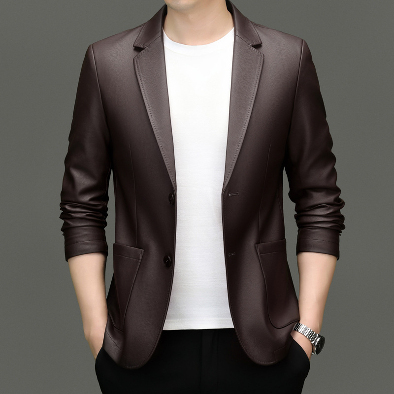 2024 средних лет мужское весеннее и осеннее кожаное пальто кожаное пальто новый кожаный костюм повседневная кожаная куртка куртка прилив