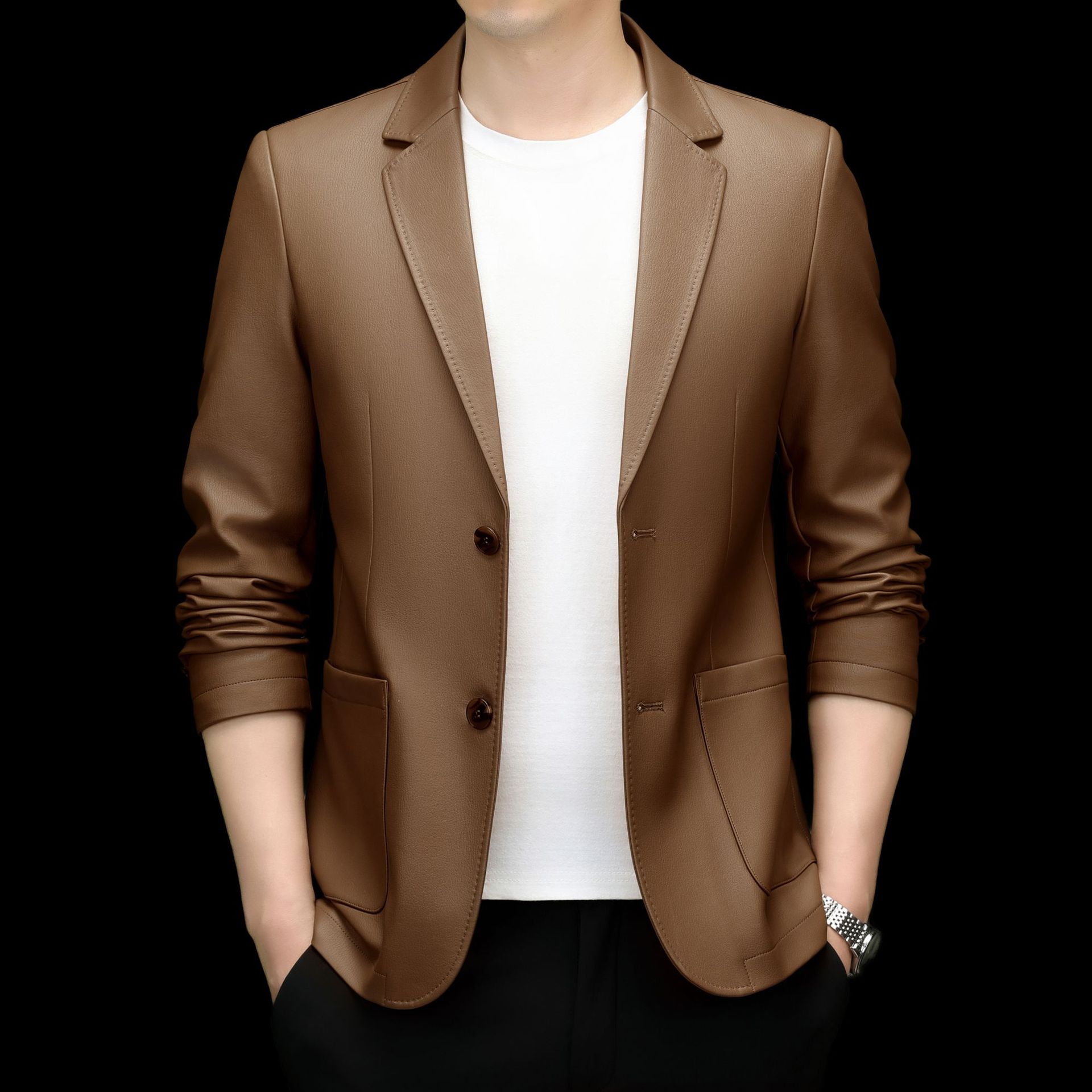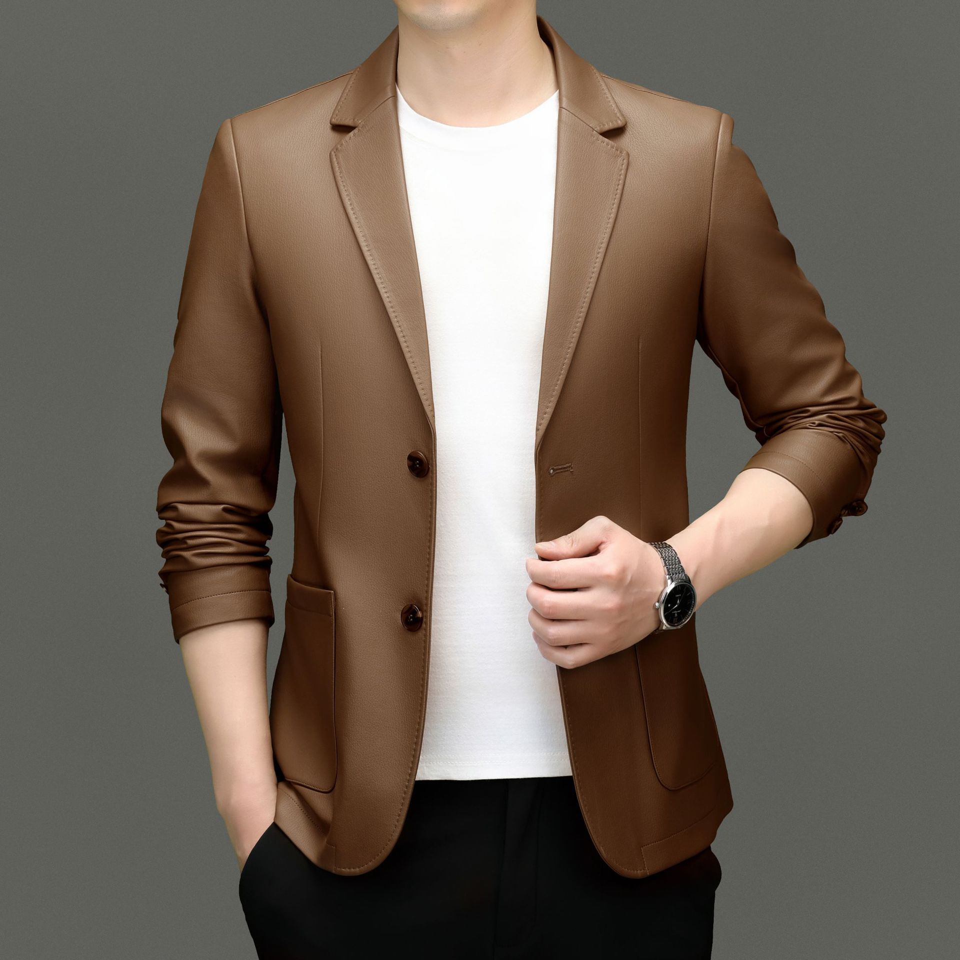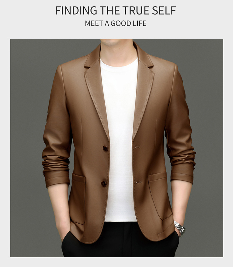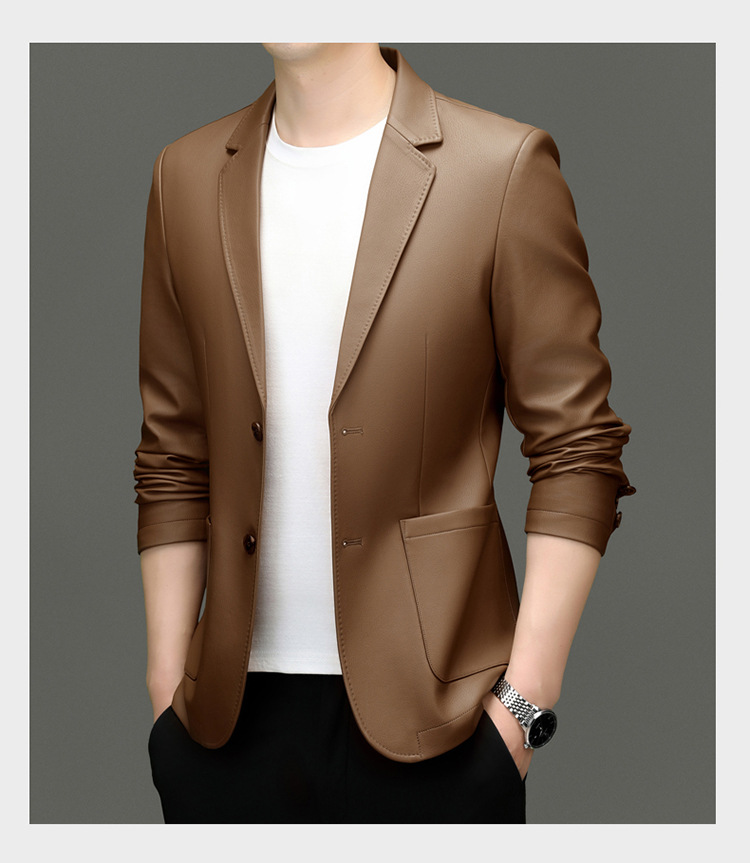 2024 средних лет мужское весеннее и осеннее кожаное пальто кожаное пальто новый кожаный костюм повседневная кожаная куртка куртка прилив