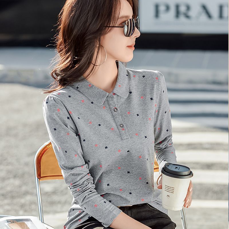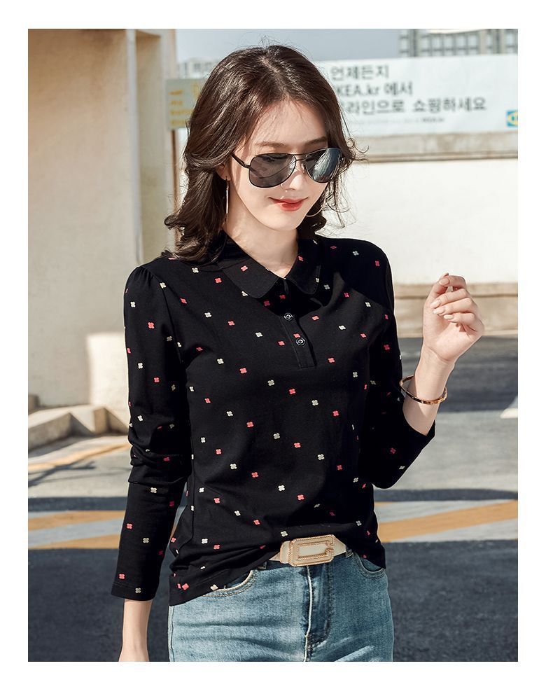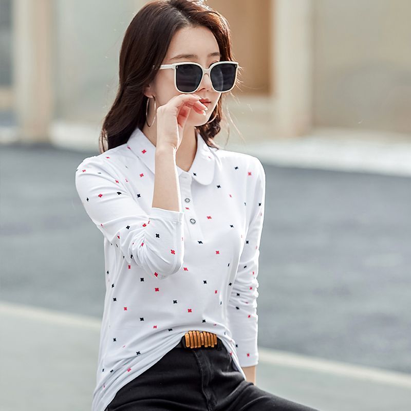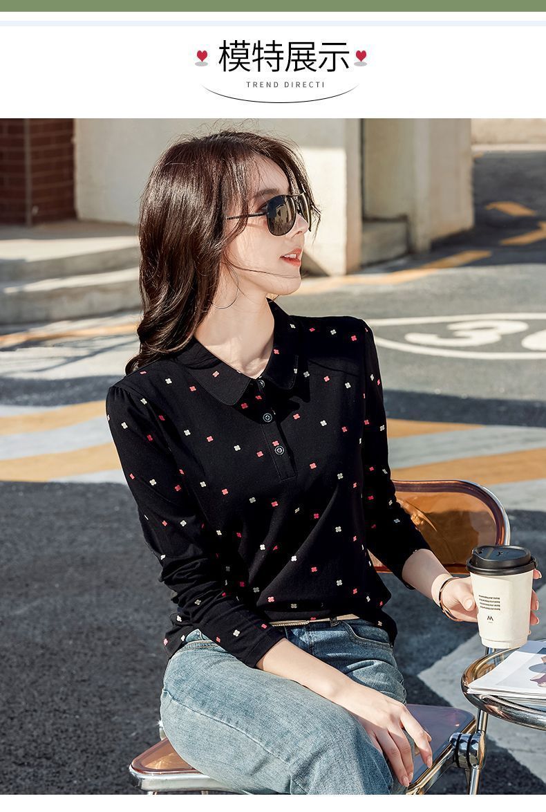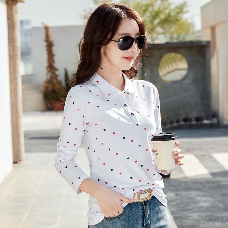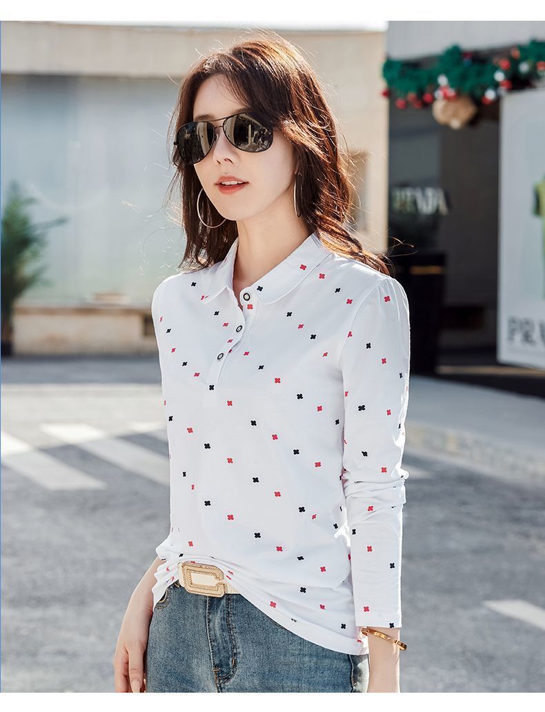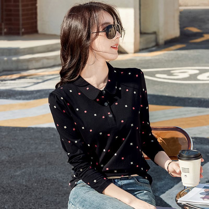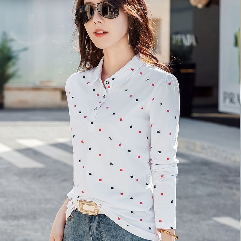 2024 весенняя новая женская футболка с длинными рукавами и отворотом рубашка поло корейская версия тонко удобная и темпераментная рубашка