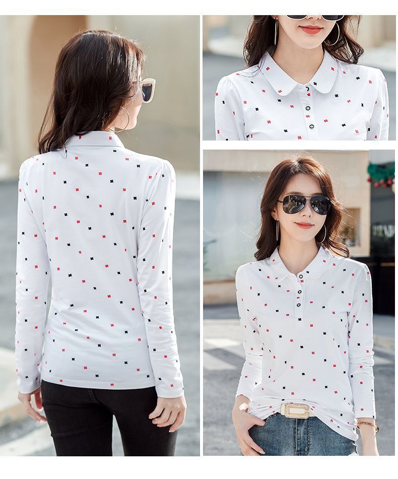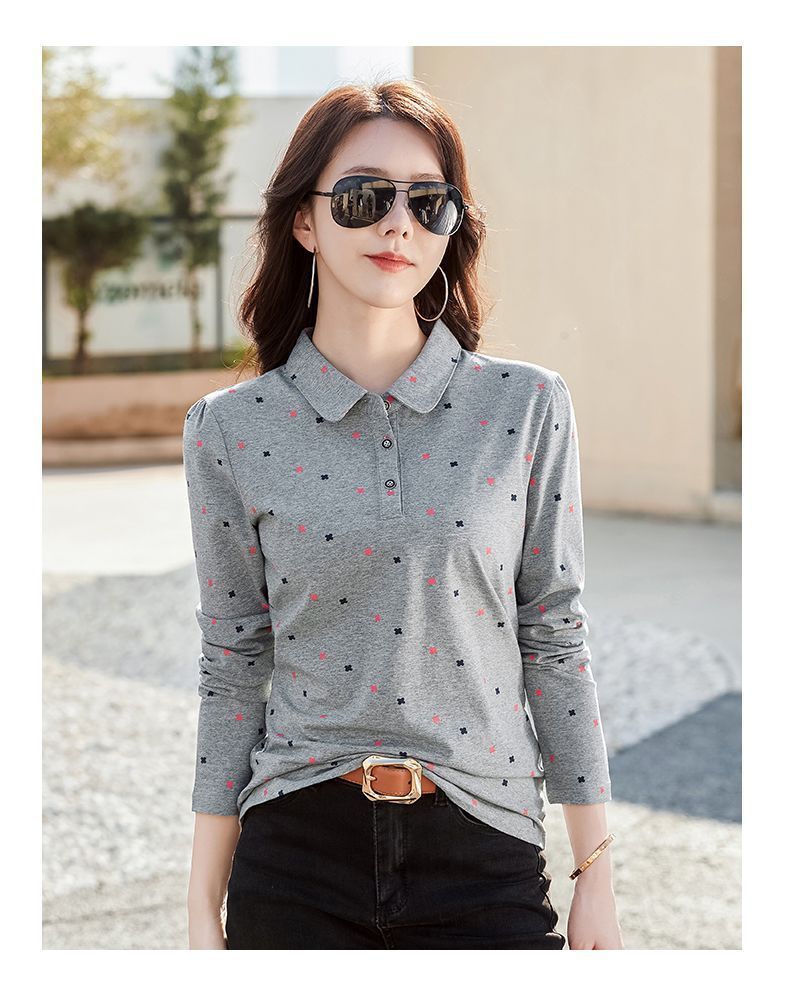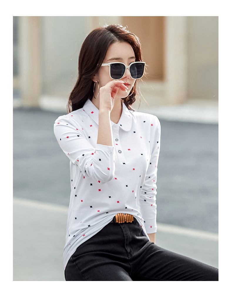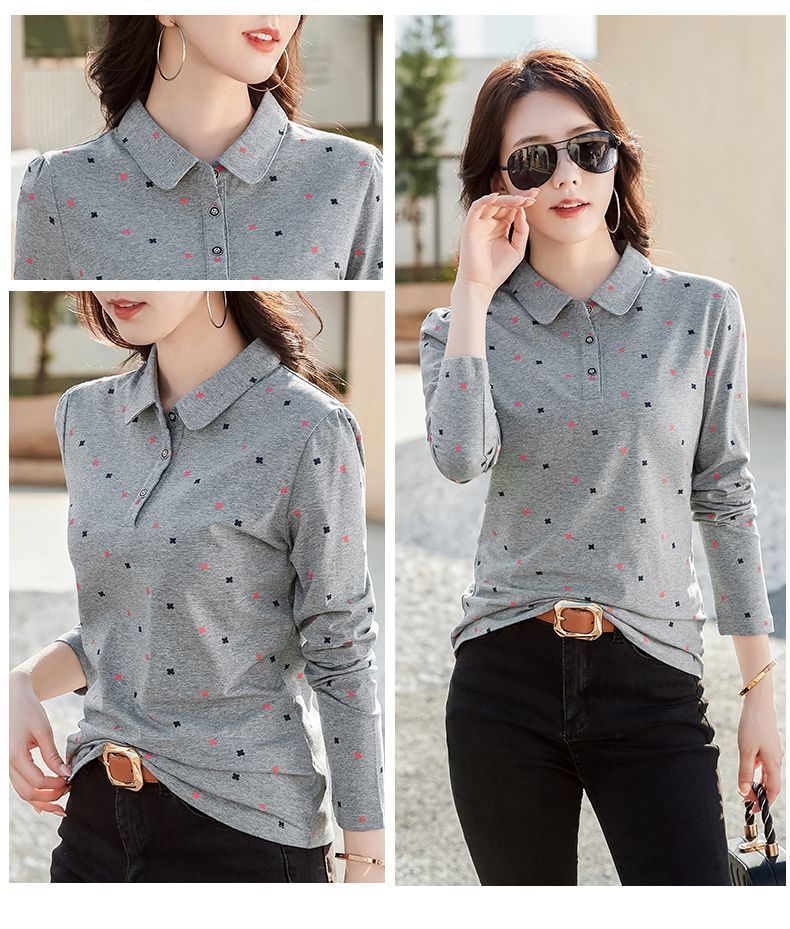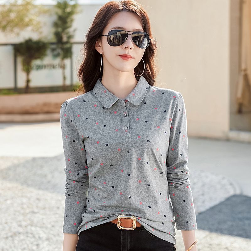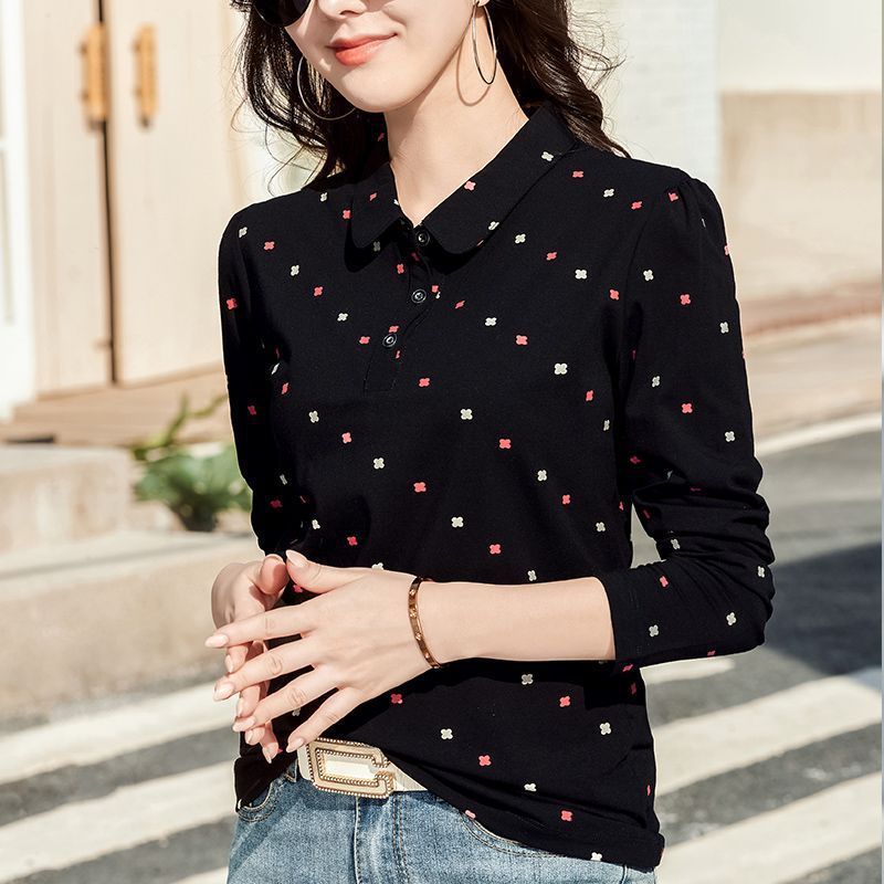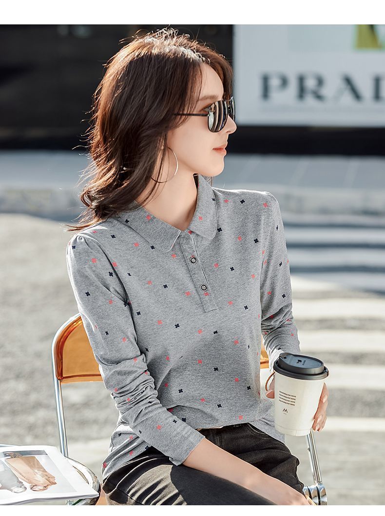 2024 весенняя новая женская футболка с длинными рукавами и отворотом рубашка поло корейская версия тонко удобная и темпераментная рубашка
