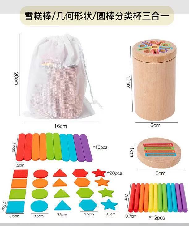 Сортировочная трубка с круглыми палочками (каучуковое дерево); Круглый диск + круглая палочка, классификационная трубка «два в одном» (каучуковое дерево); Трехмерная трубка для сортировки стержней (каучуковое дерево); Цилиндр для сортировки деталей формы (белая коробка из каучукового дерева); Трубка для сортировки палочек мороженого; Палочка для мороженого + круглая палочка для сортировки «два в одном»; Чашка для классификации цветов (круглый стержень) b; Квадратная коробка для классификации цветов «два в одном» (круглый стержень + фигурная деталь); Прозрачный сортировочный стакан с двойной крышкой (18 круглых палочек + 14 палочек для мороженого); Домик для монет с роликовым шариком 2-в-1, 0,5 кг; Тройной набор: круглые ломтики + круглые палочки + палочки для мороженого; Многофункциональная классификация (базовая модель) 0,52 кг; Многофункциональная классификационная коробка (версия в твердом переплете) 0,62; Форма + палочка для мороженого + круглая палочка типа B; Форма + круглая деталь + круглая палочка + палочка для мороженого, трубка «четыре в одном»
