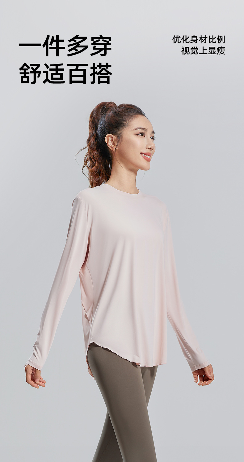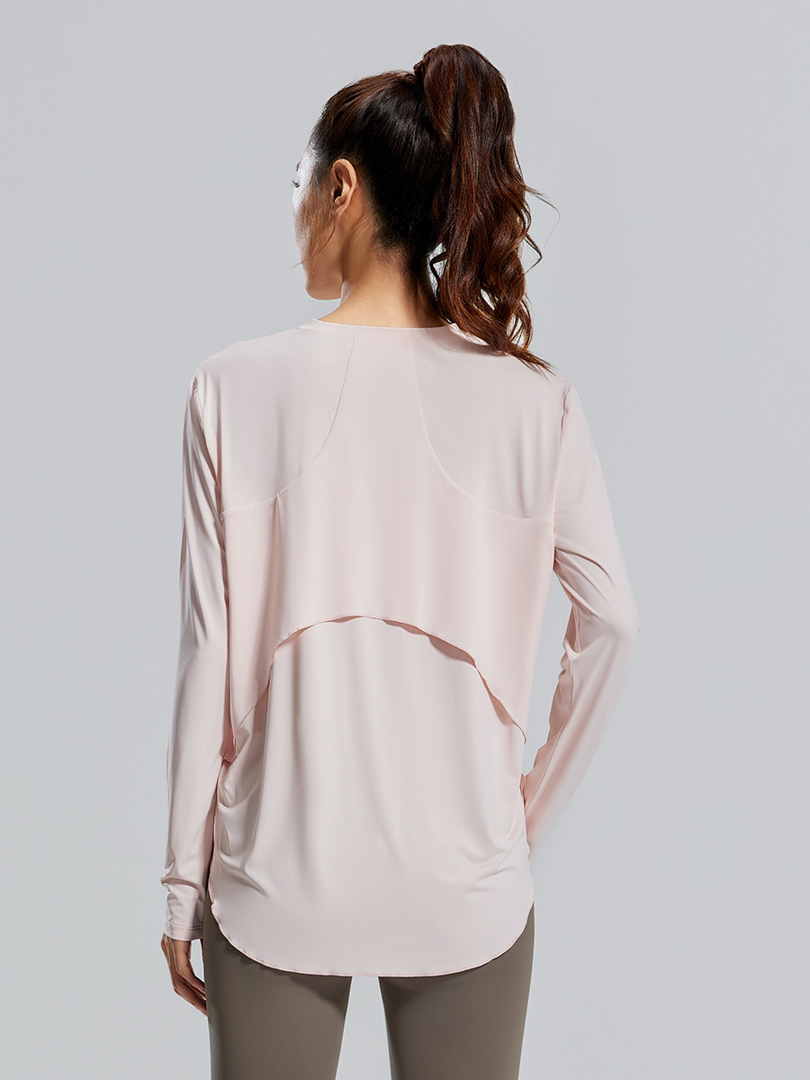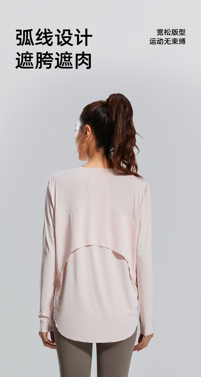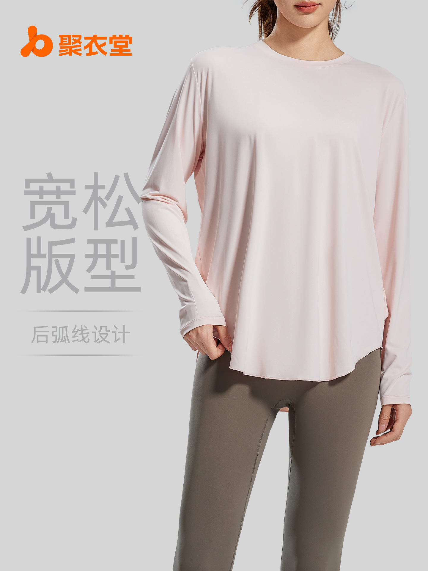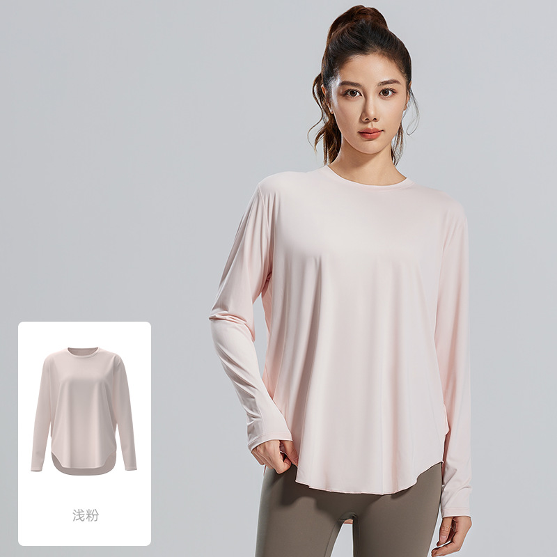 JuYitang новый ледяной шелк йога блузка с круглым вырезом свободная и дышащая спортивная футболка с длинными рукавами