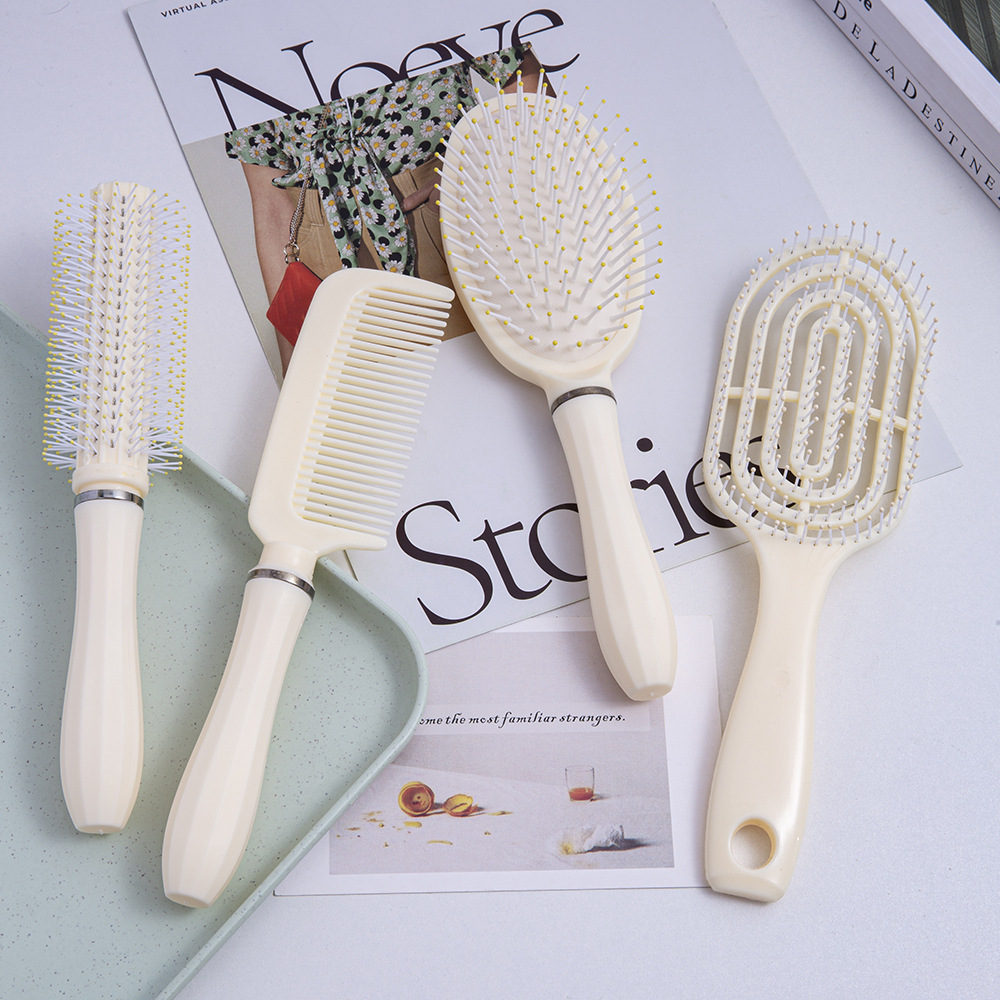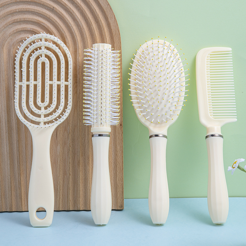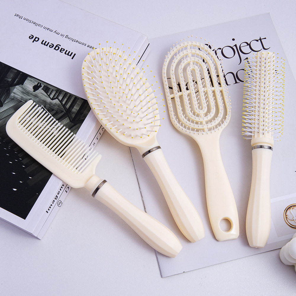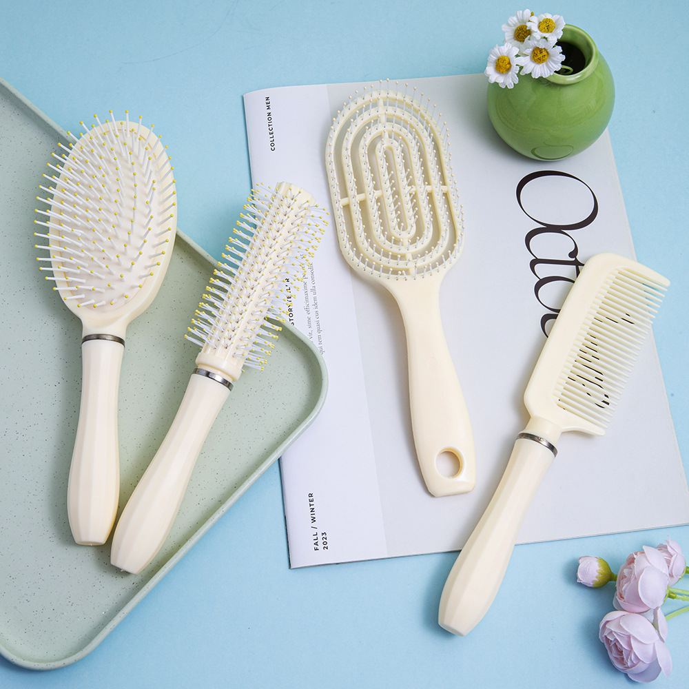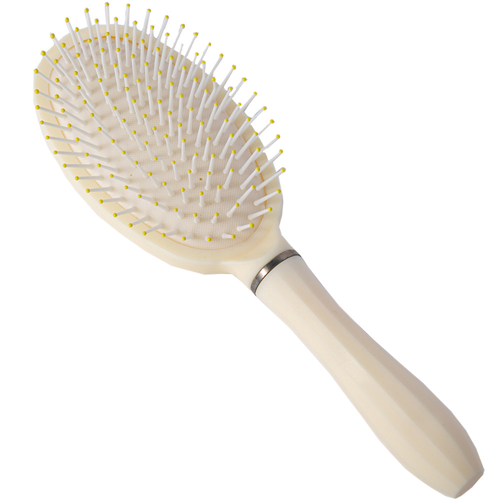 Кремово-желтая расческа для завивки.; Расческа на воздушной подушке; Кремово-желтая овальная расческа; Кремово-желтая плоская расческа