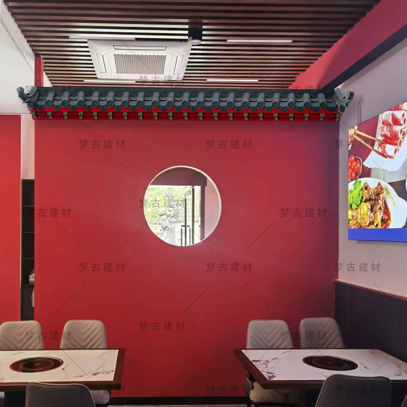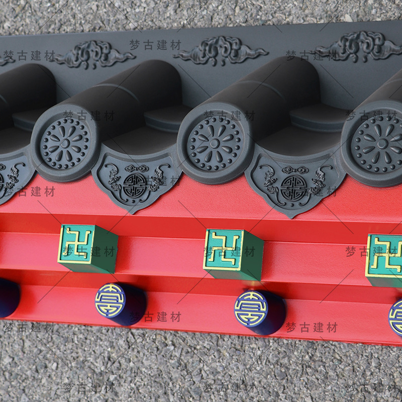 Маленькая толстая плитка без рамки в античном стиле с синей смолой, имитирующей интегрированный серый декоративный карниз в китайском стиле.