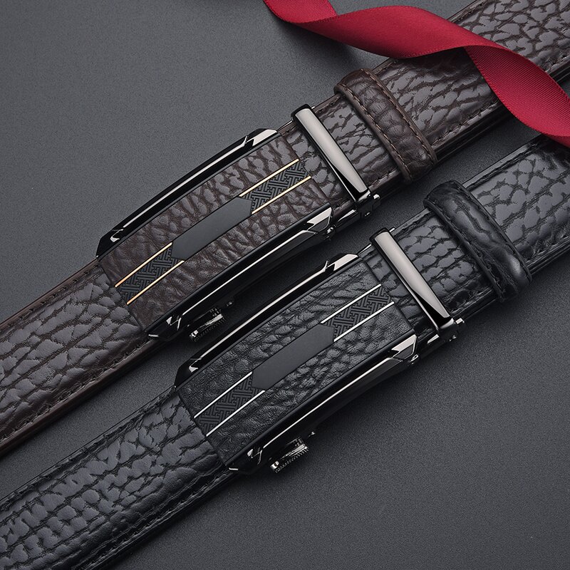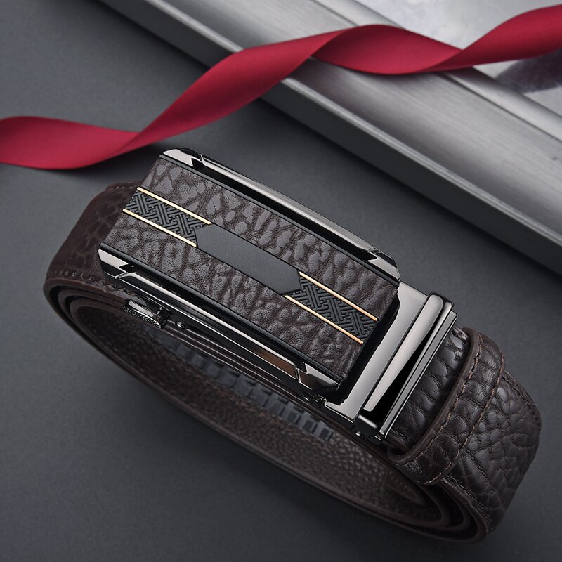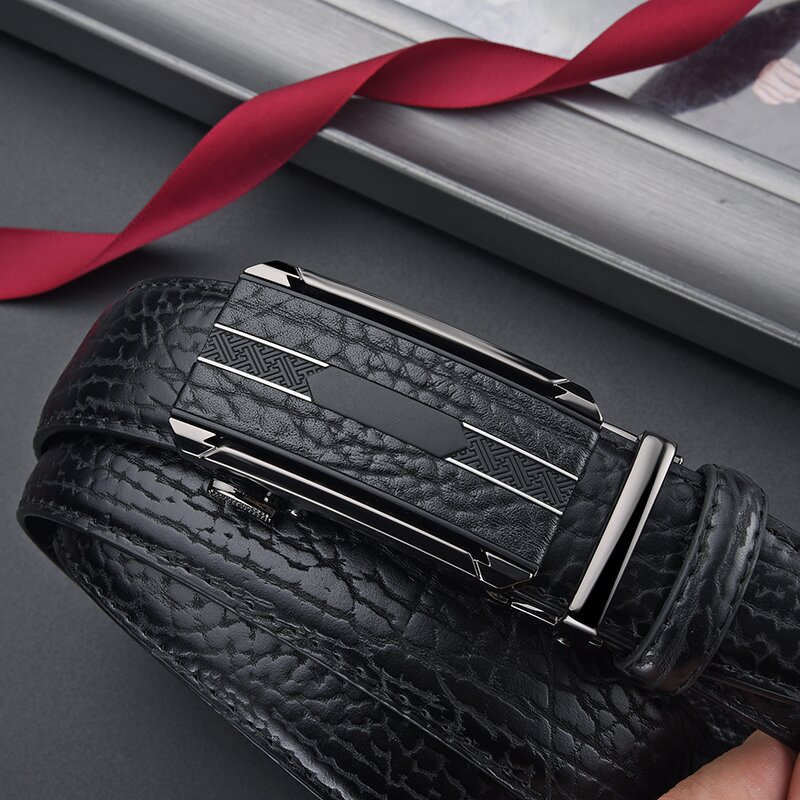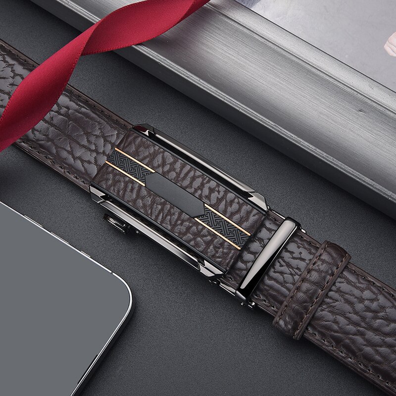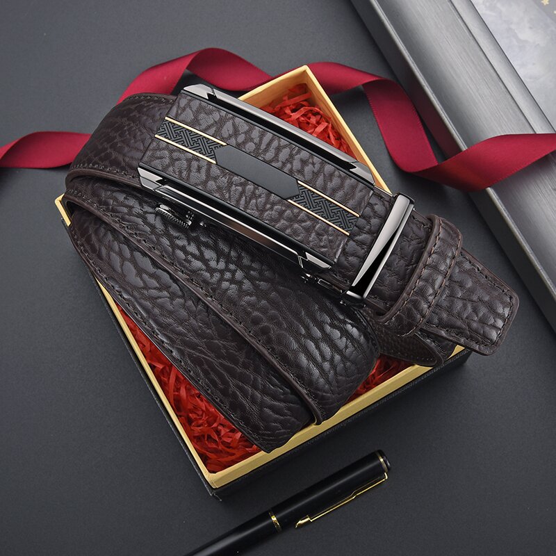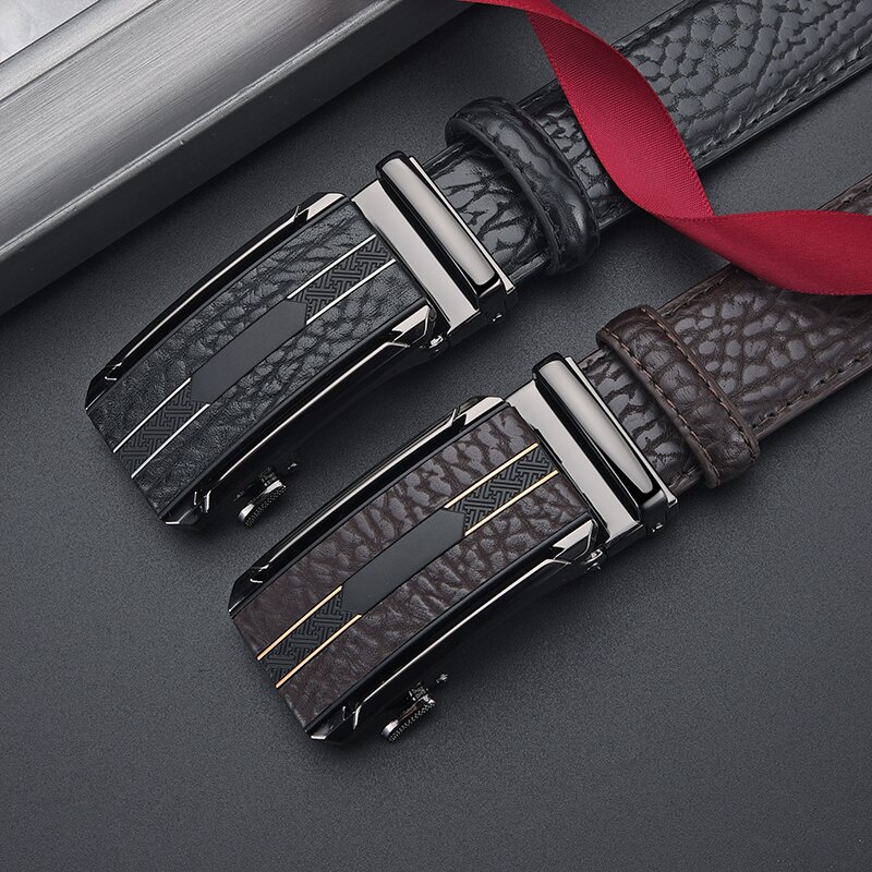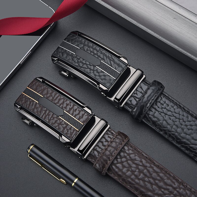 Мужской ремень из сплава кожи с автоматической пряжкой, ремень из воловьей кожи с рисунком бобра, универсальный повседневный простой брючный ремень, готовый к продаже