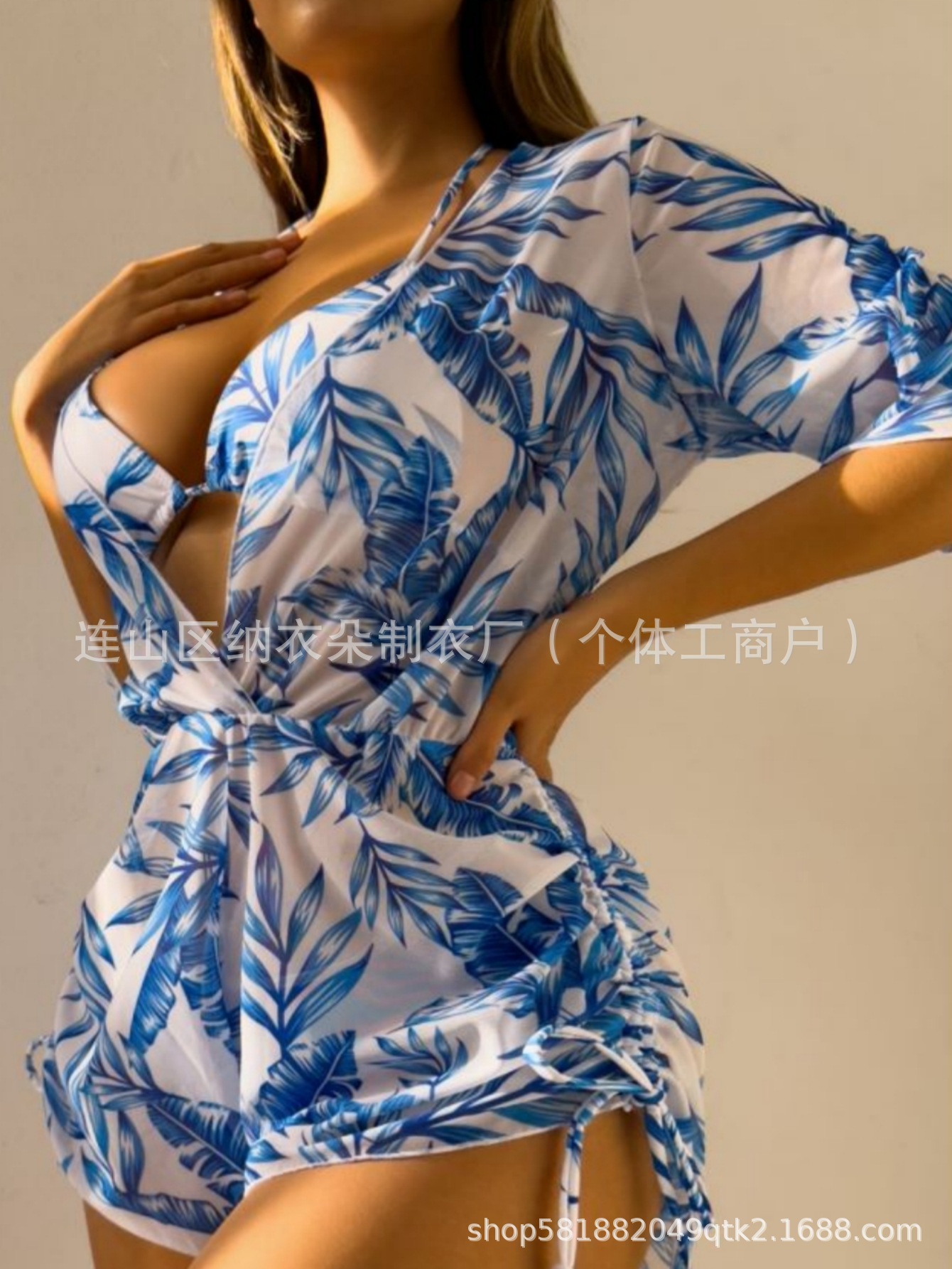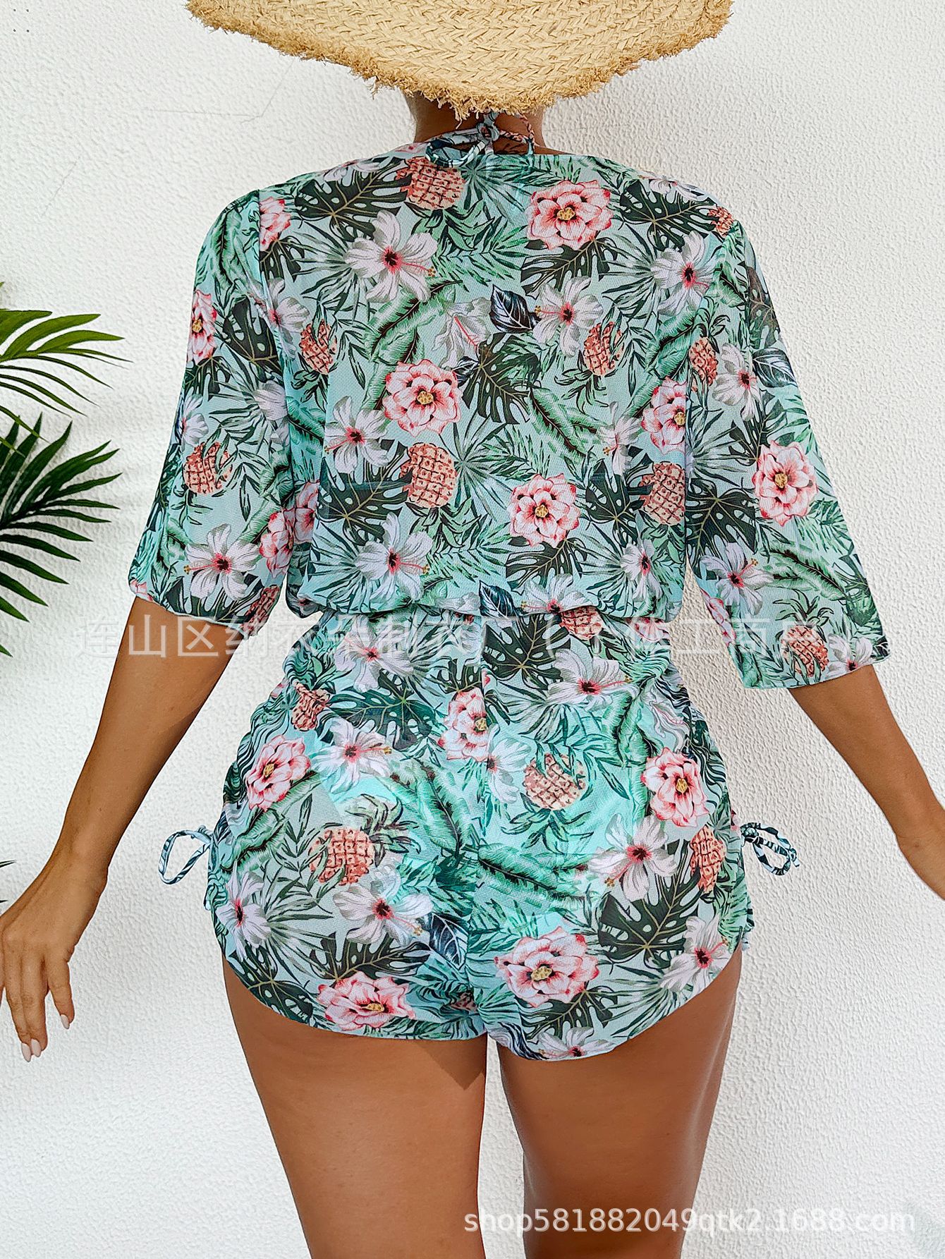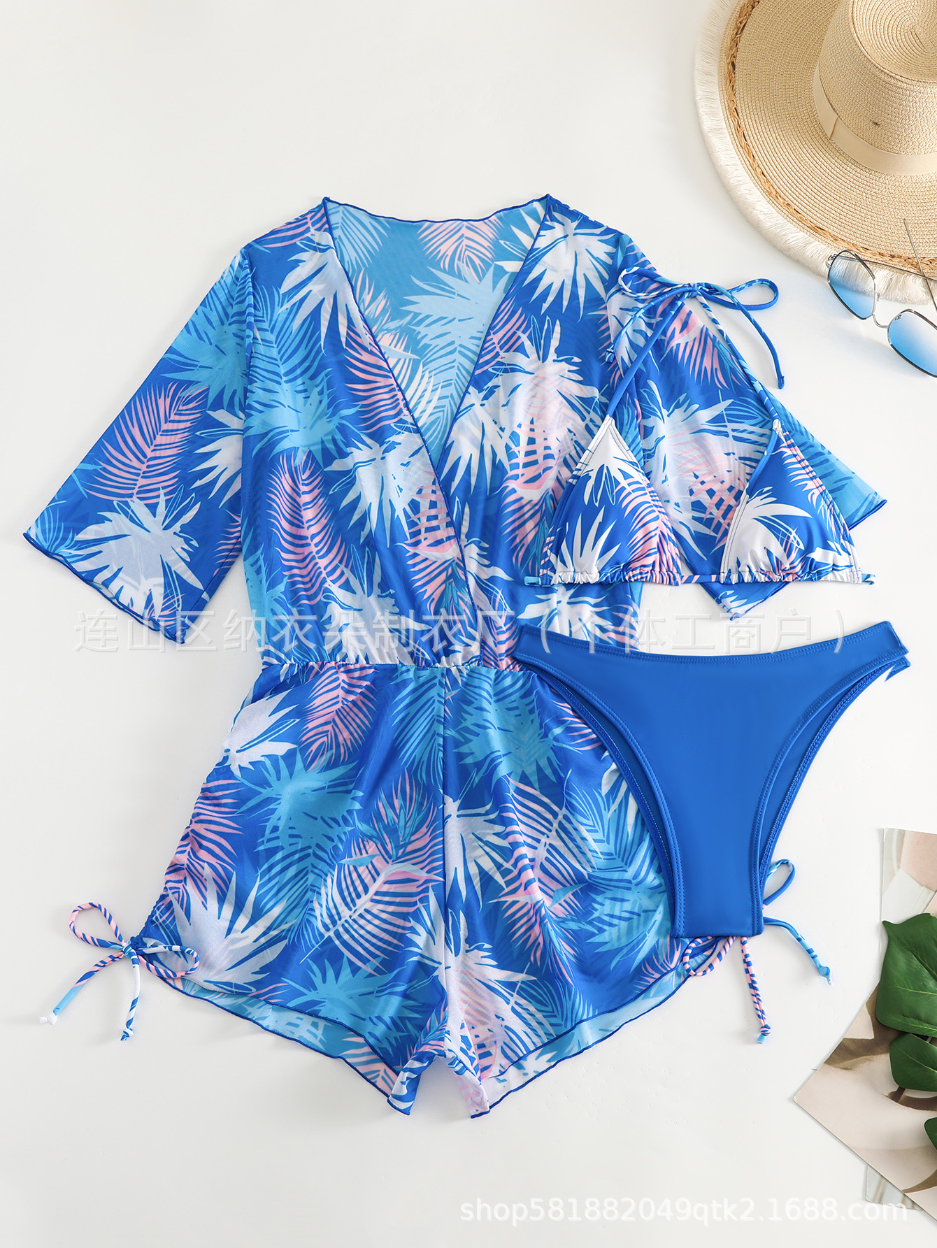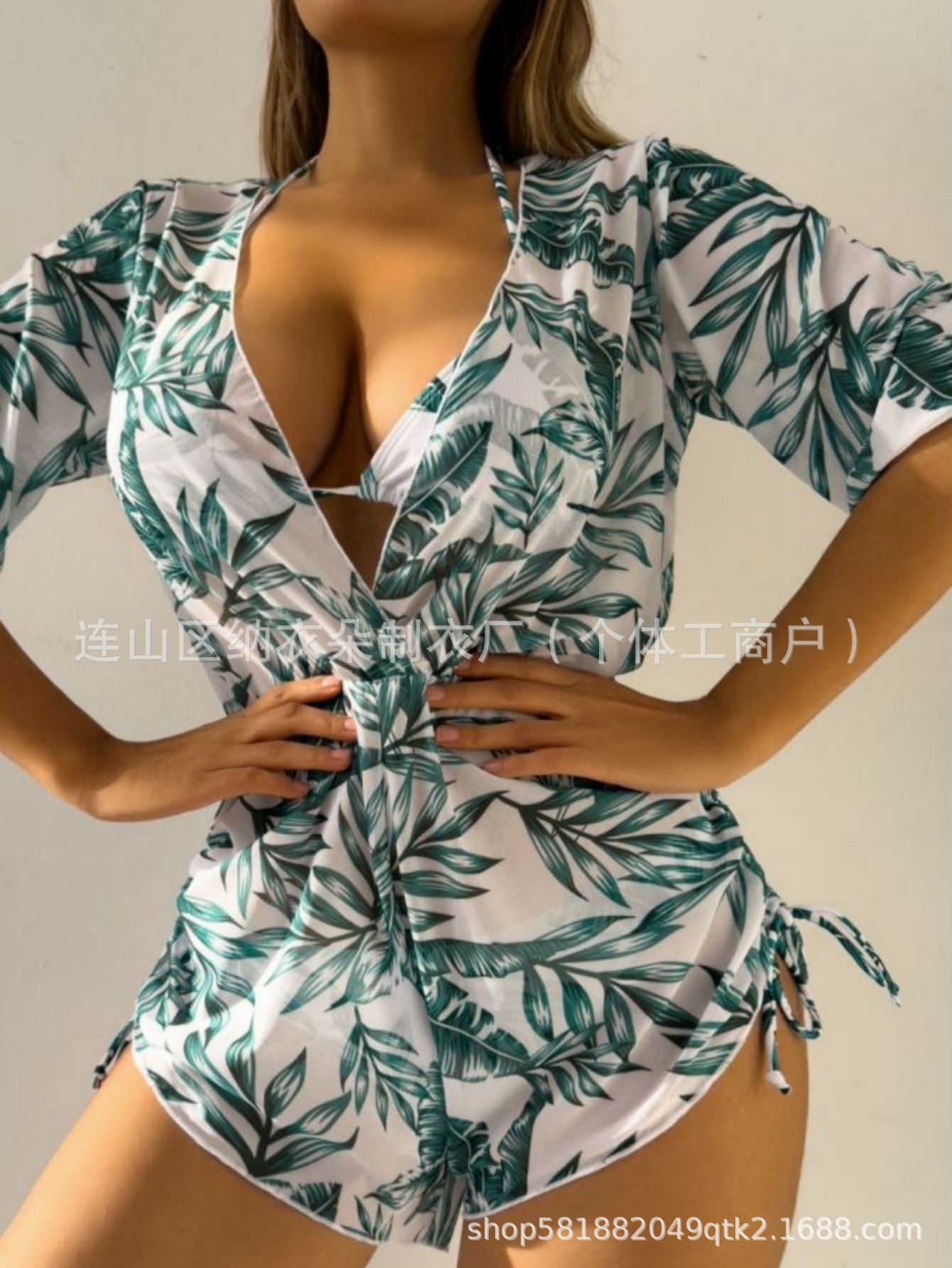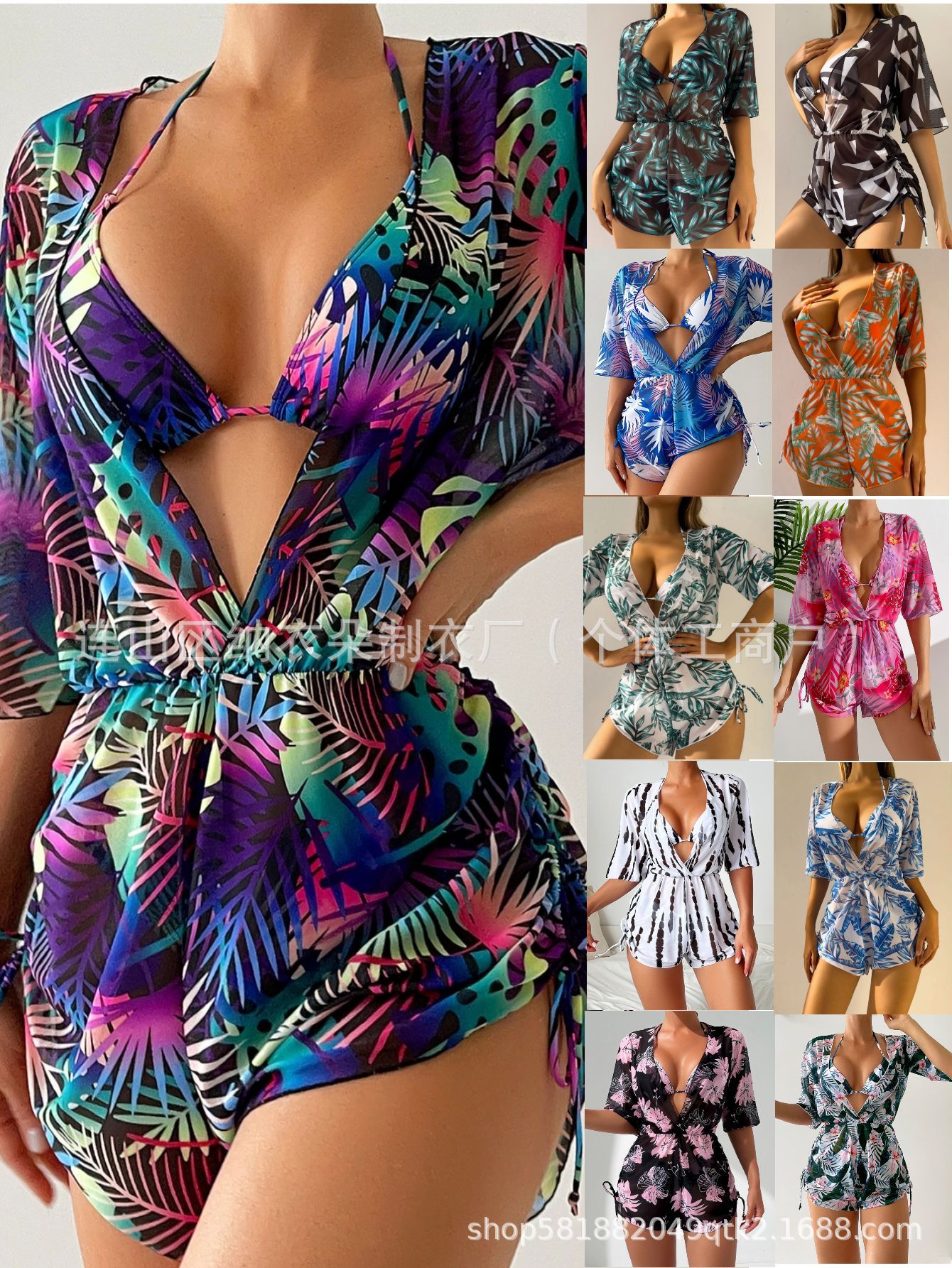 Купальник Пляжный солнцезащитный крем Тропический растительный принт блузка купальник женский европейский и американский трансграничный набор бикини из трех частей