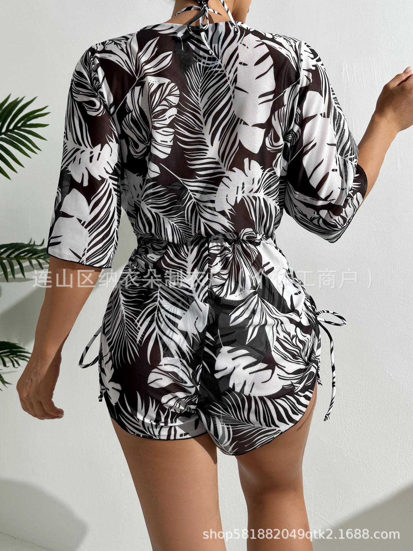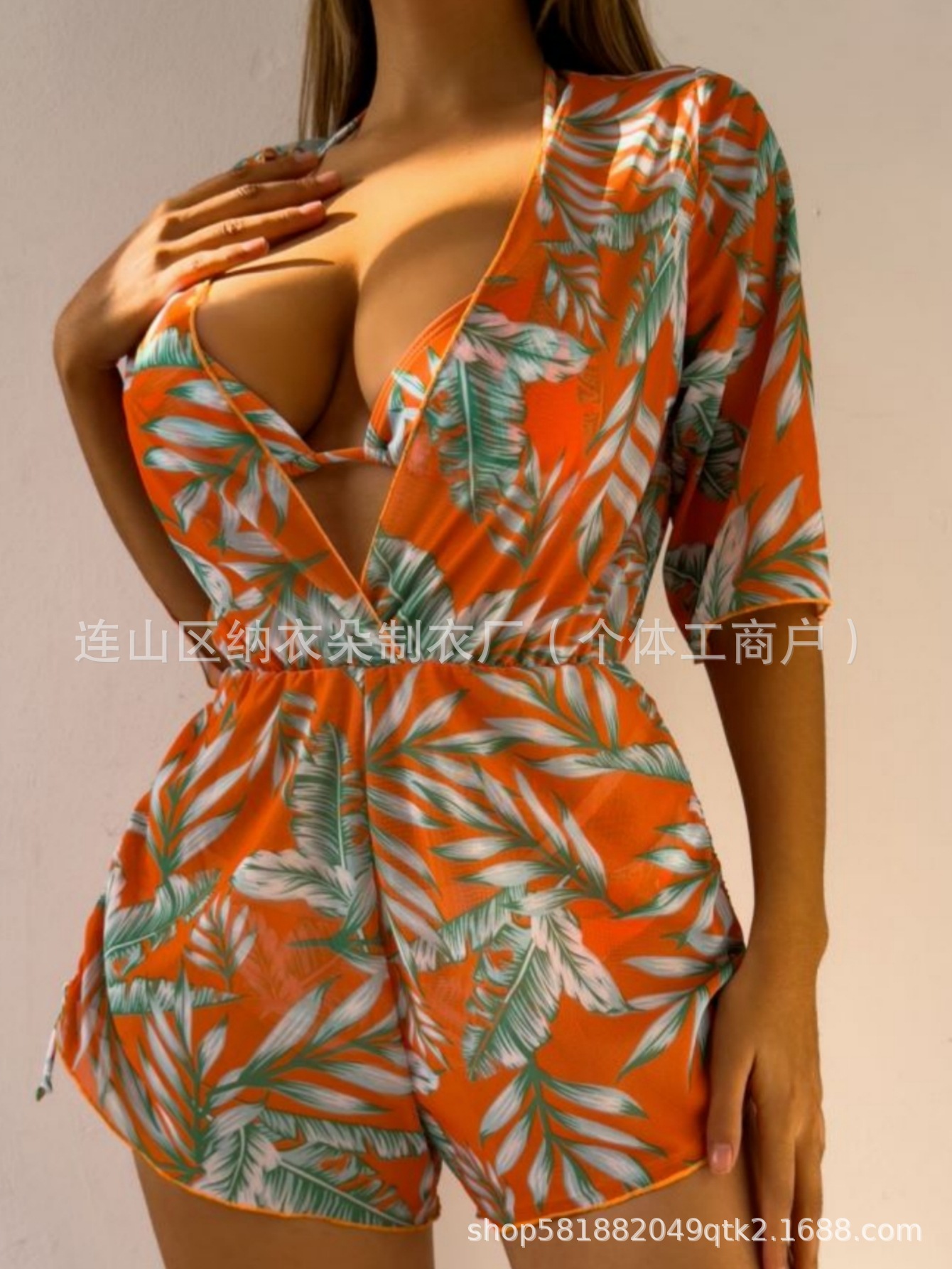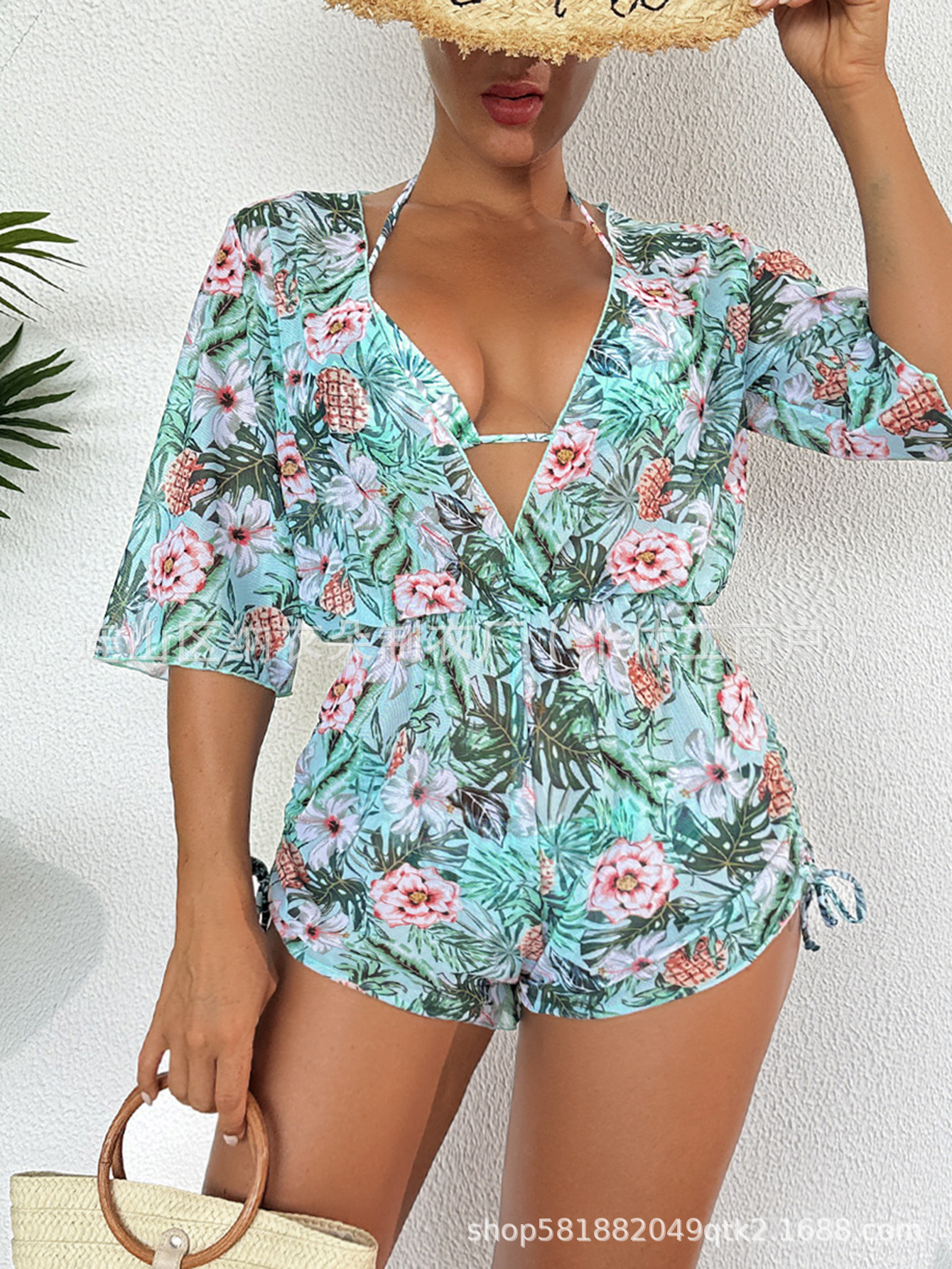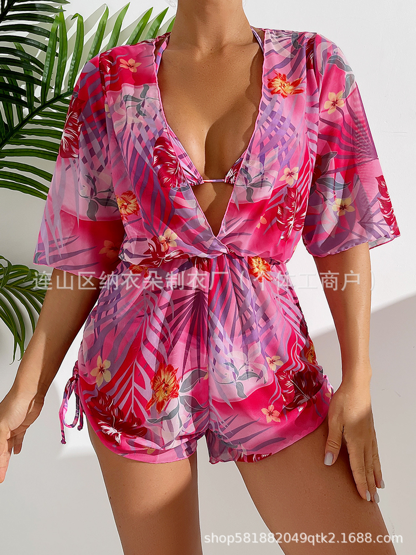 Купальник Пляжный солнцезащитный крем Тропический растительный принт блузка купальник женский европейский и американский трансграничный набор бикини из трех частей