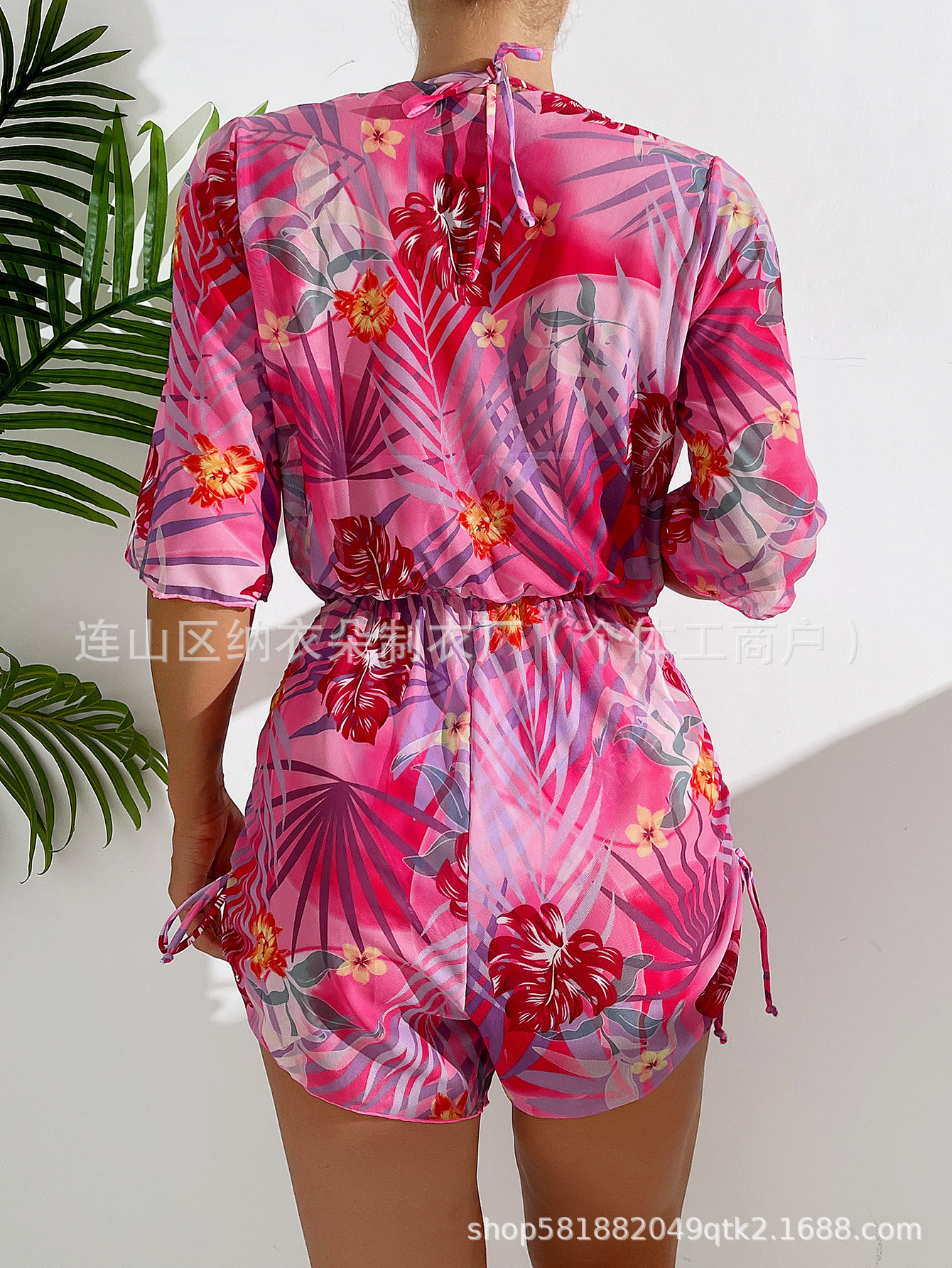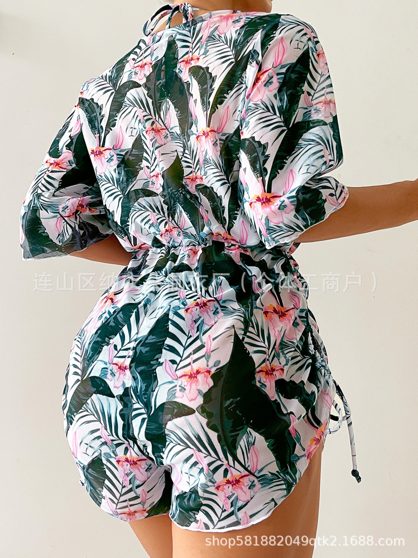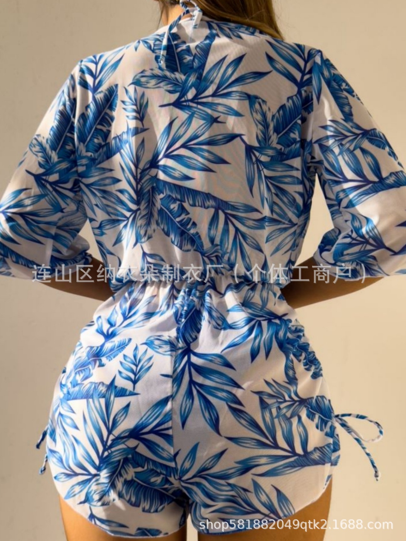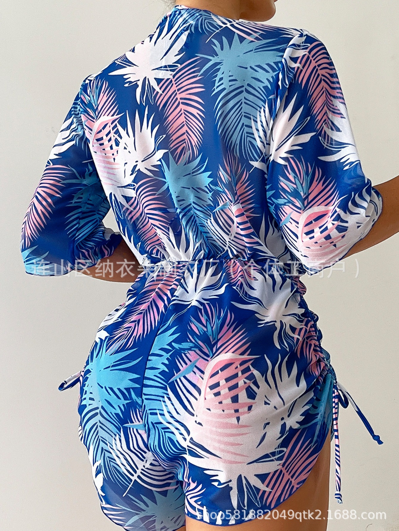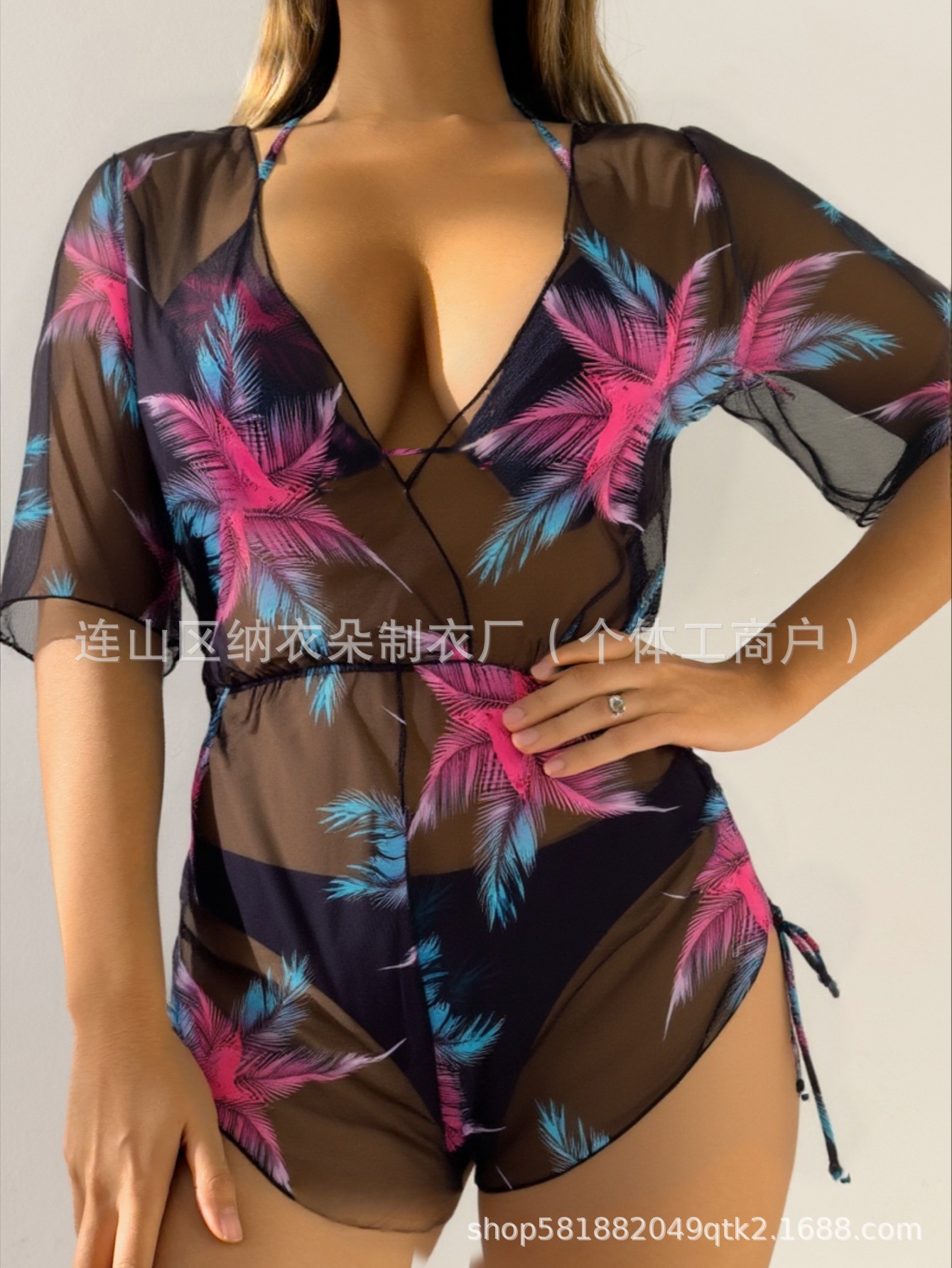 Купальник Пляжный солнцезащитный крем Тропический растительный принт блузка купальник женский европейский и американский трансграничный набор бикини из трех частей