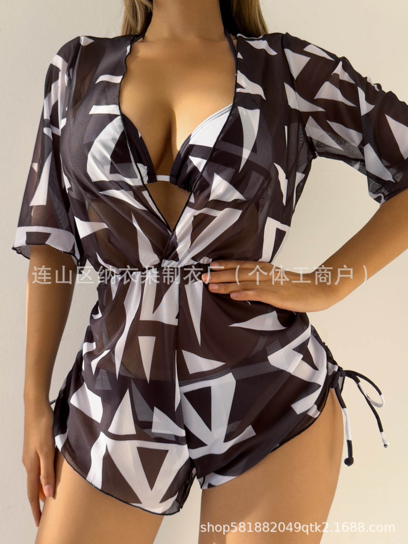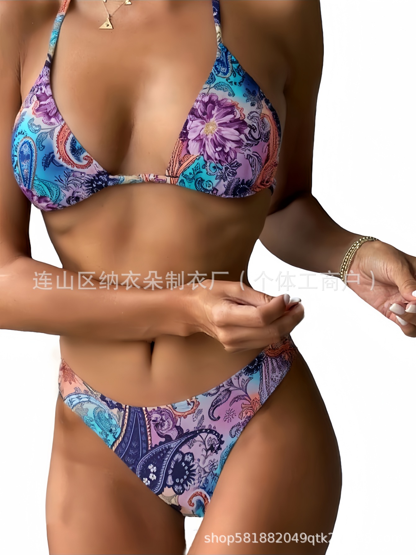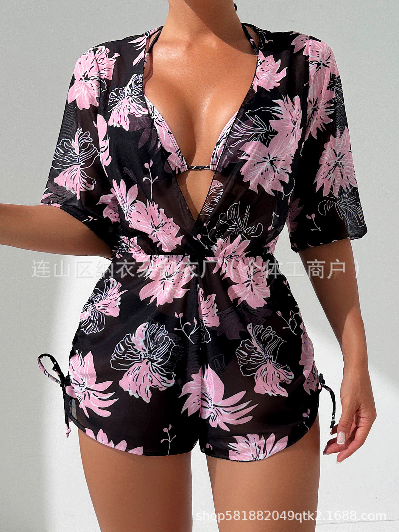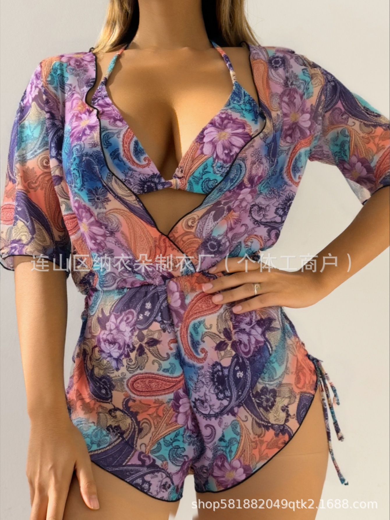 Купальник Пляжный солнцезащитный крем Тропический растительный принт блузка купальник женский европейский и американский трансграничный набор бикини из трех частей