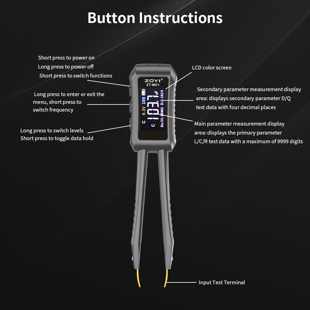 Zhongyi цифровой мост пинцет ZT-MD1 резистивный индуктивный конденсатор патч тестер мультиметр