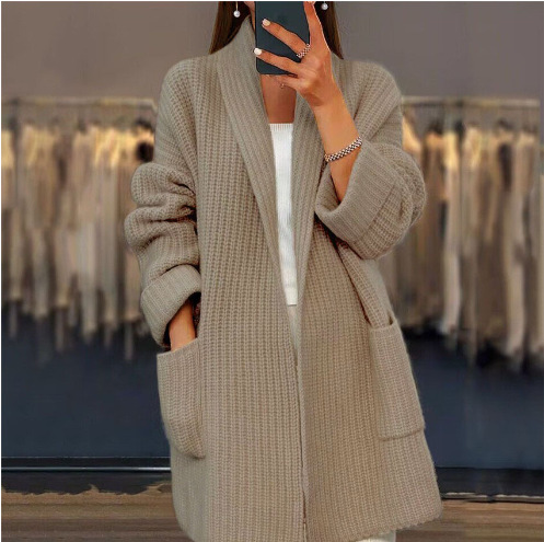 Внешняя торговля женская одежда 2024, осень и зима, новый женский утолщенный однотонный вязаный кардиган с v-образным вырезом, свободные брюки с карманами и клапаном, свитер, куртка