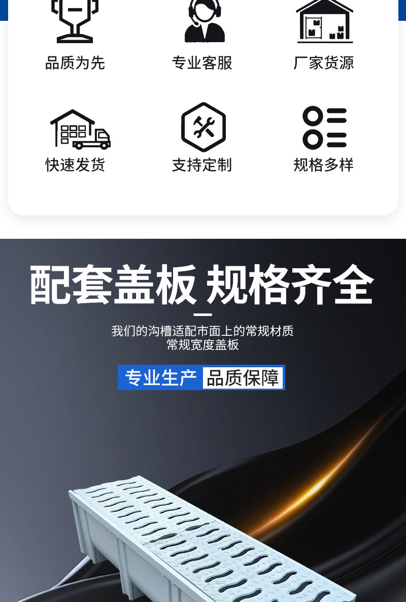 本店为源头厂家,可以生产定制各种规格排水沟、盖板等