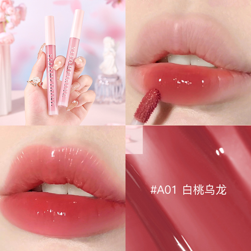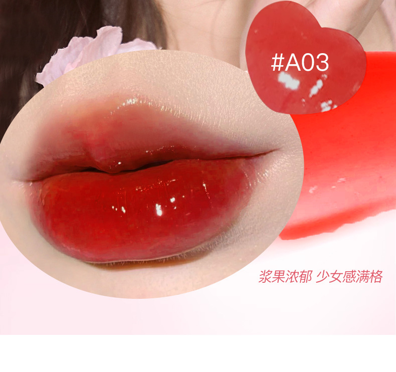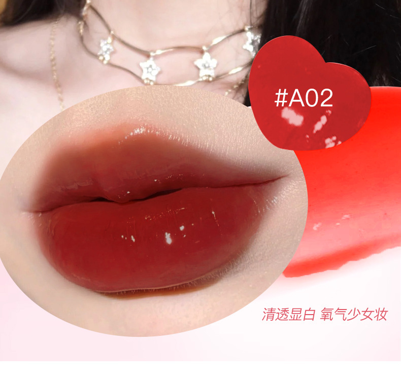 Симпатичная девушка сердце чай замороженный водяной свет зеркальный стеклянный глазурь губная помада студенческая вечеринка