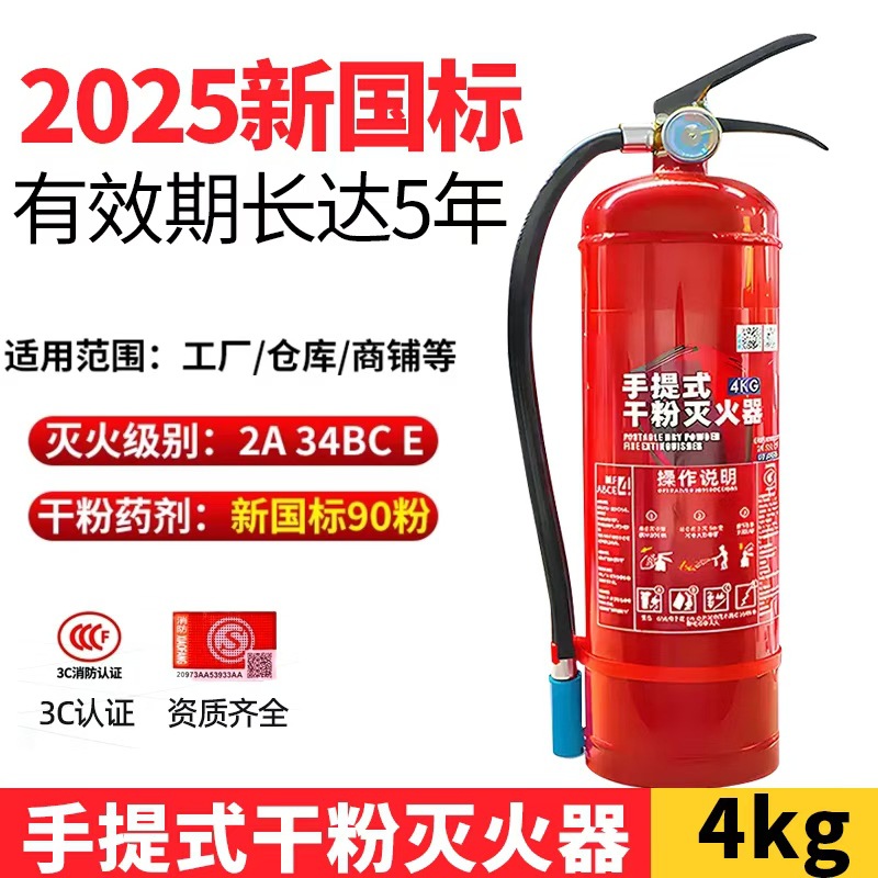 Новинка 2025 года, национальный стандарт, сухой порошковый огнетушитель, 4 кг, портативный огнетушитель, автомобильное бытовое коммерческое противопожарное оборудование