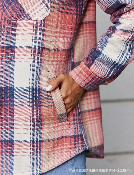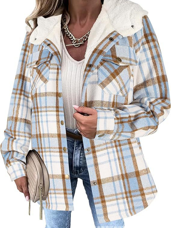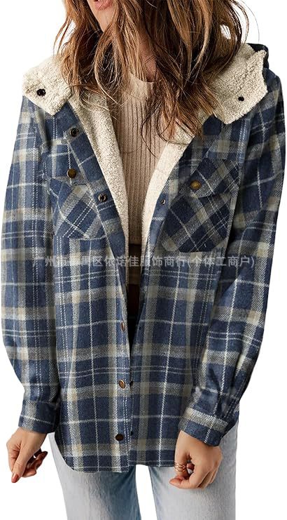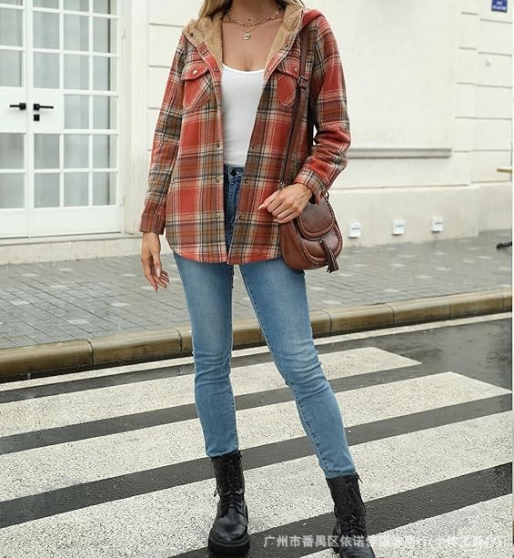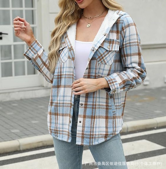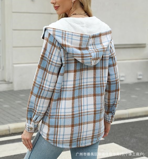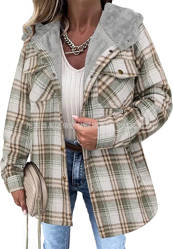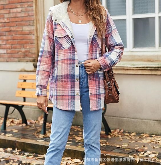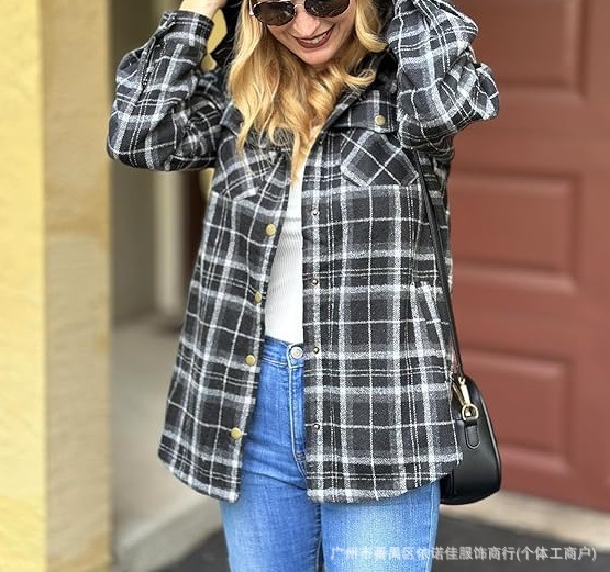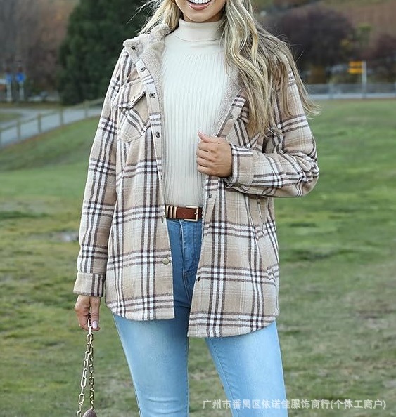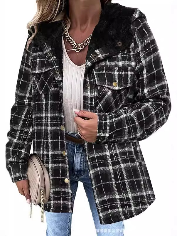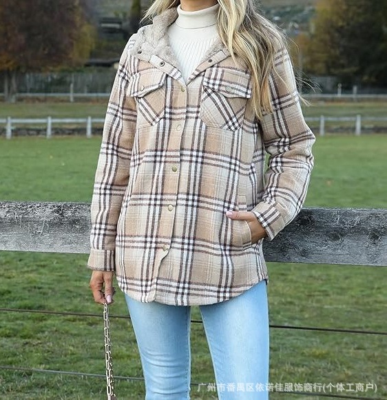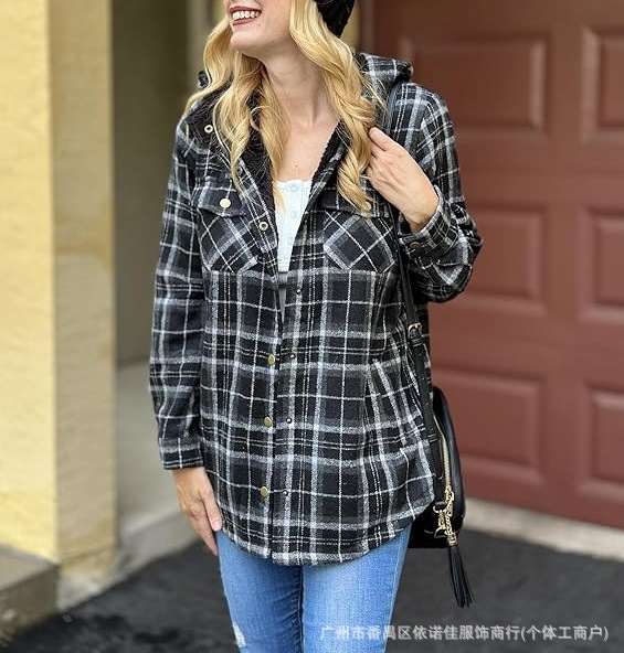 Популярная в Европе и Америке женская клетчатая куртка с длинными рукавами Amazon, шерстяная куртка с капюшоном на пуговицах, теплая куртка