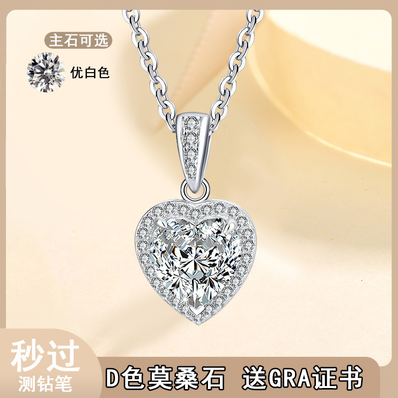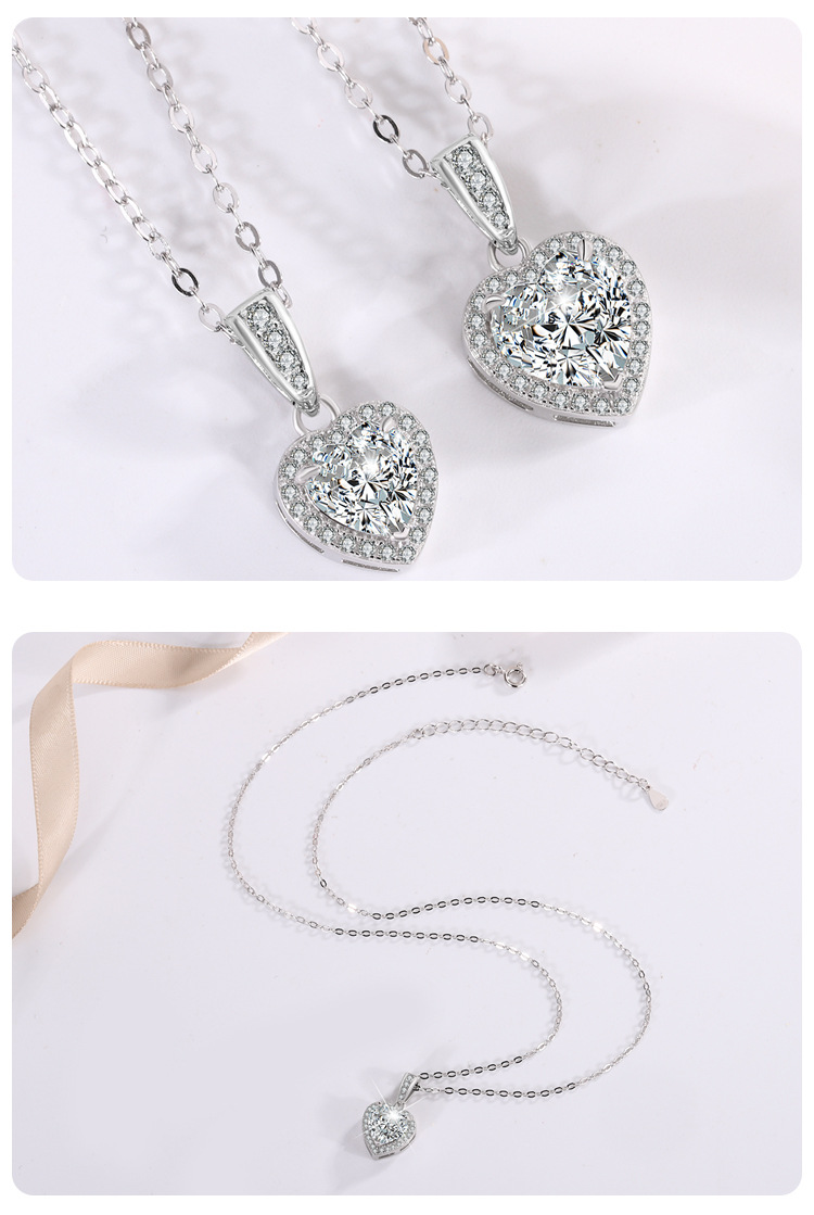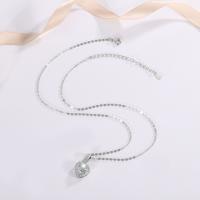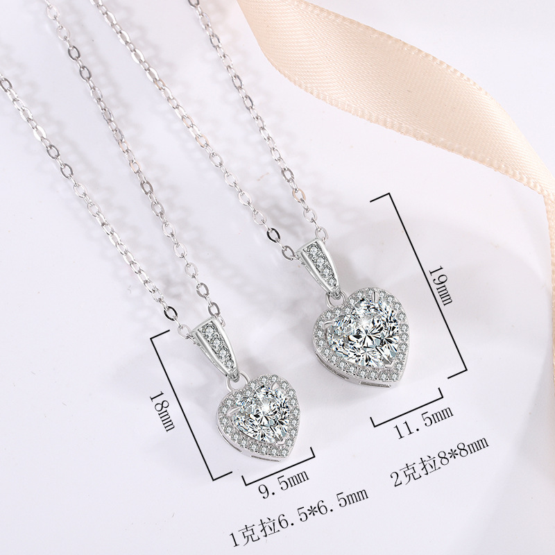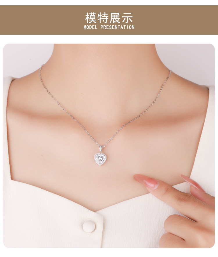 Трансграничное Специально для s925 Серебряный кулон женский инкрустированный сердечный муассанитовый темперамент ожерелье высокого уровня светло-роскошная цепочка ключицы