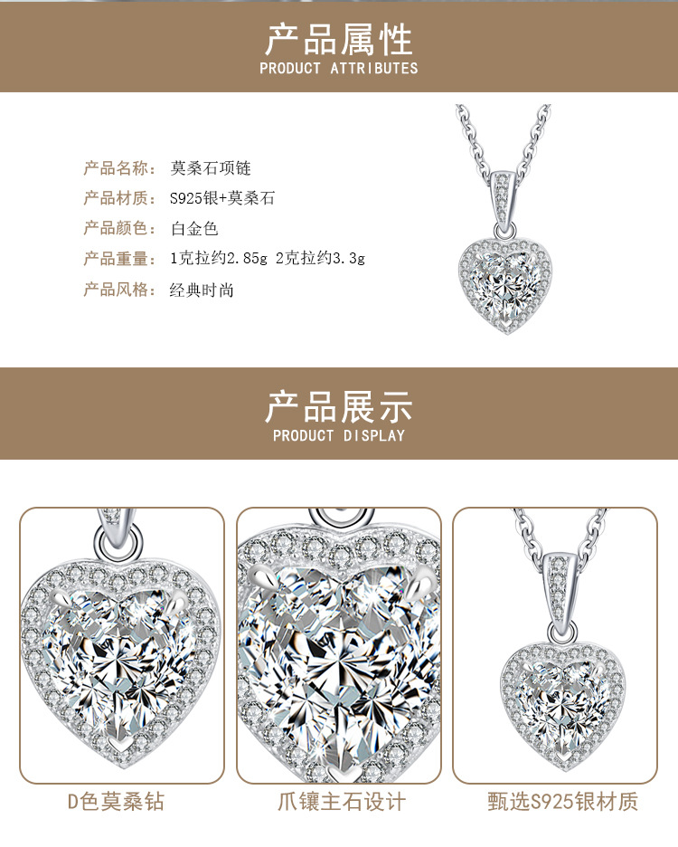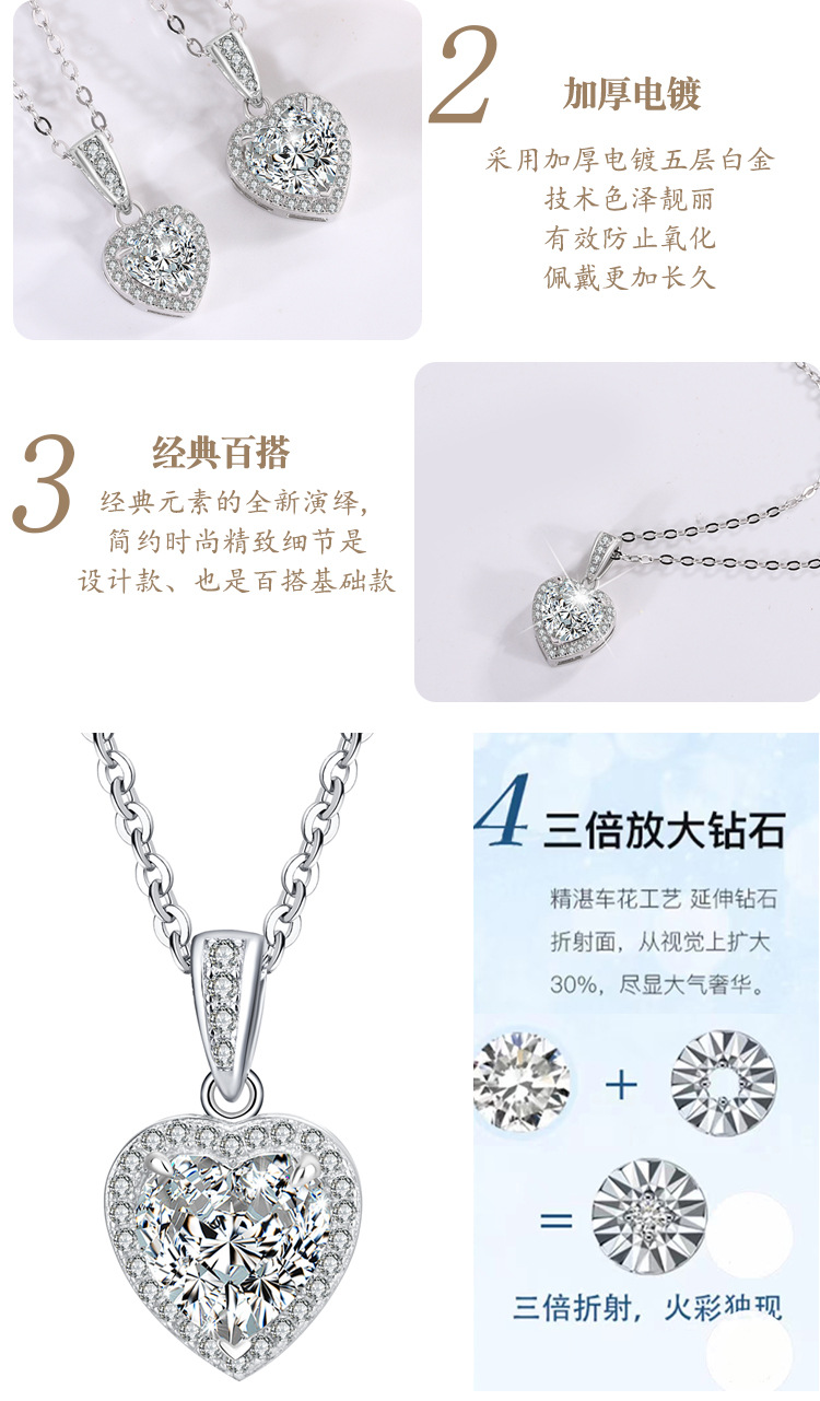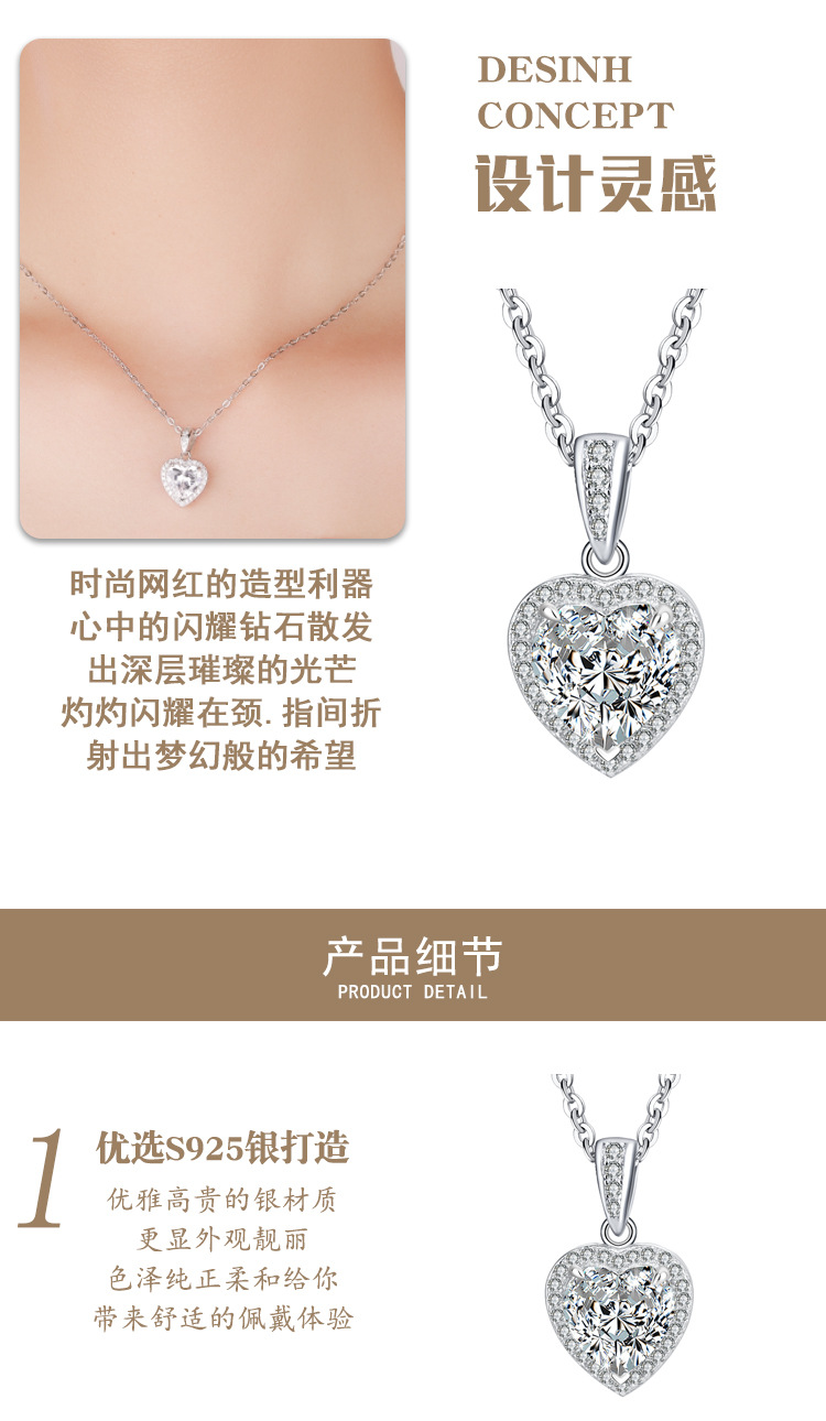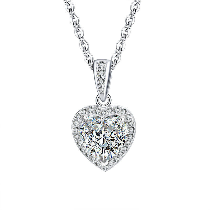 Трансграничное Специально для s925 Серебряный кулон женский инкрустированный сердечный муассанитовый темперамент ожерелье высокого уровня светло-роскошная цепочка ключицы