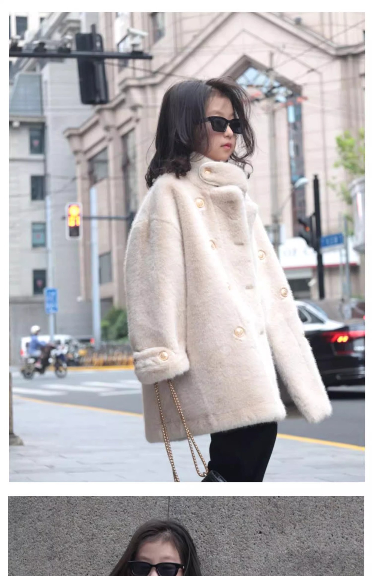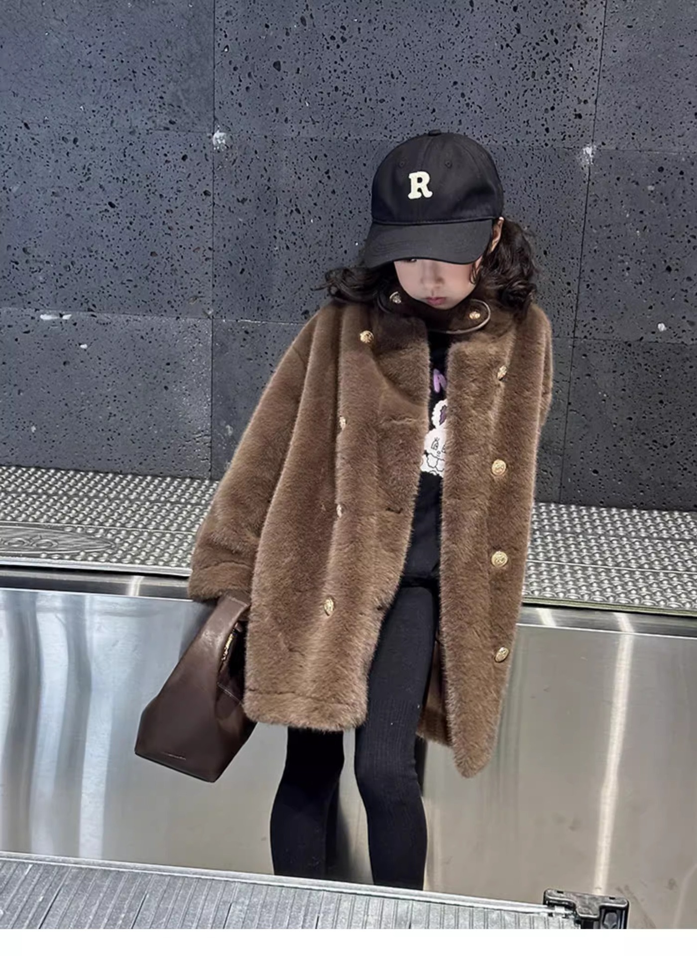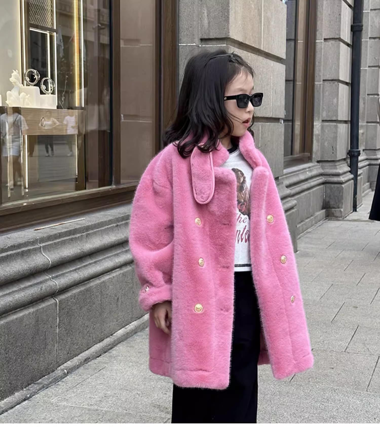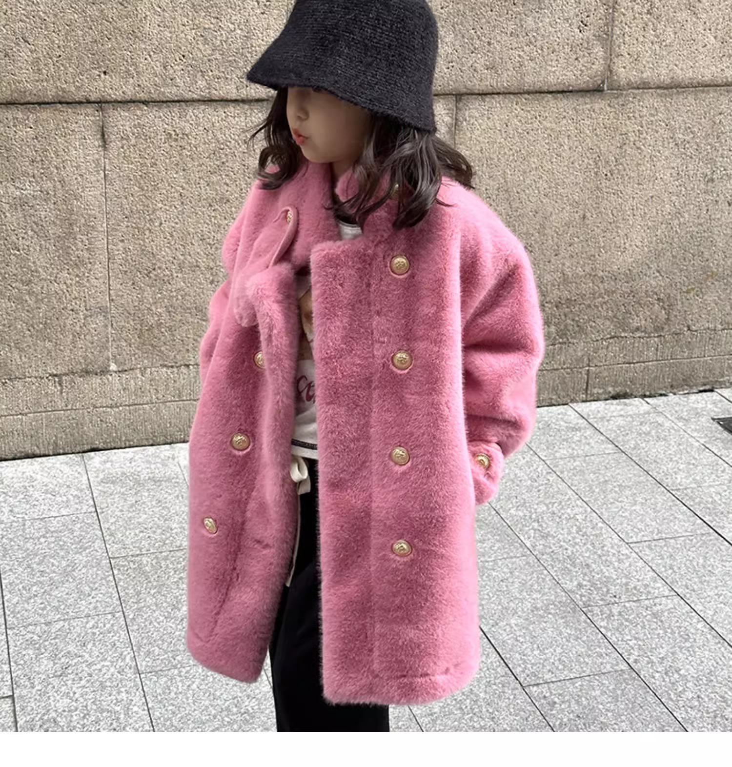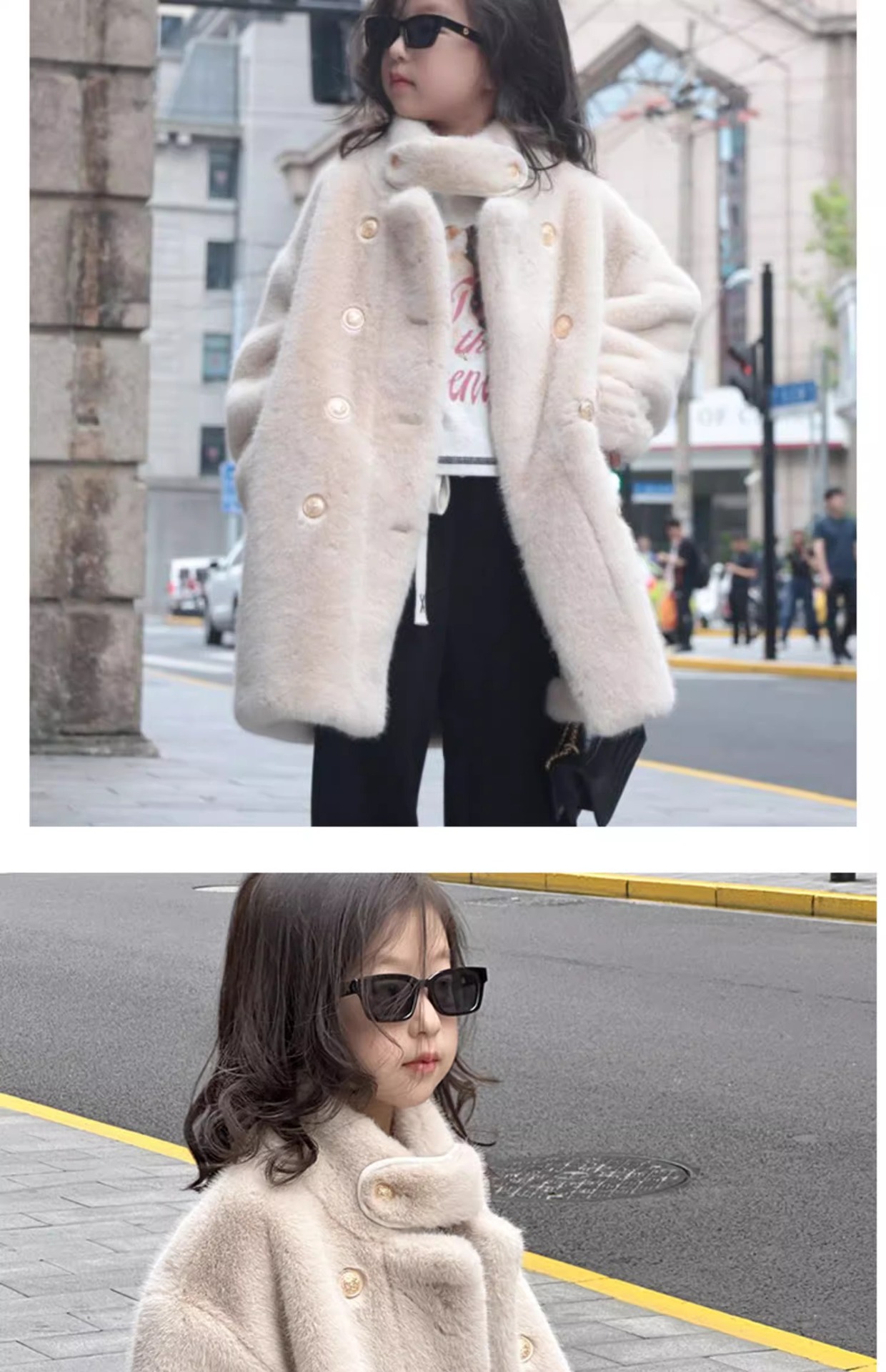 Универсальная верхняя одежда из меха для девочек, зимняя верхняя одежда из искусственного меха, новый стиль, шерсть ягненка средней длины для маленьких девочек, большой размер